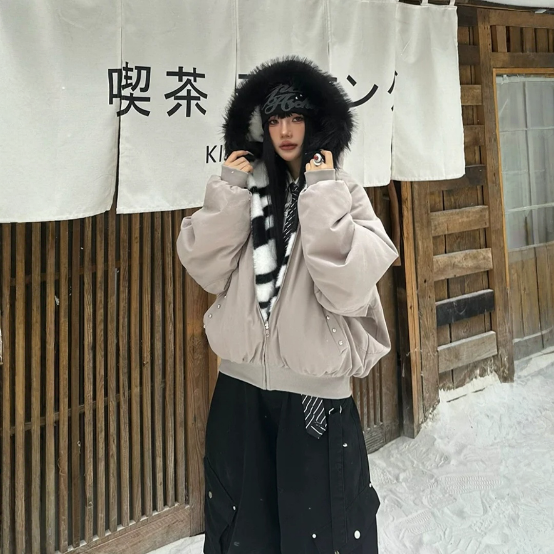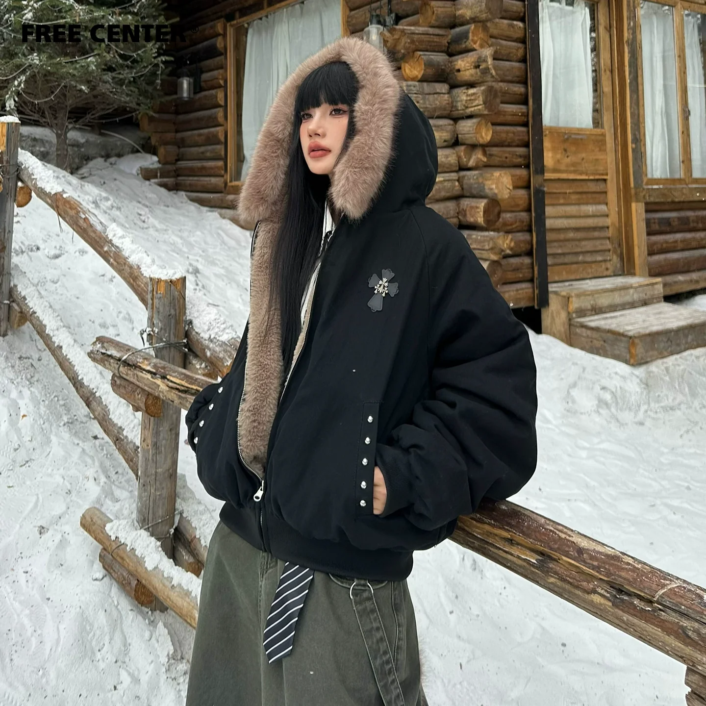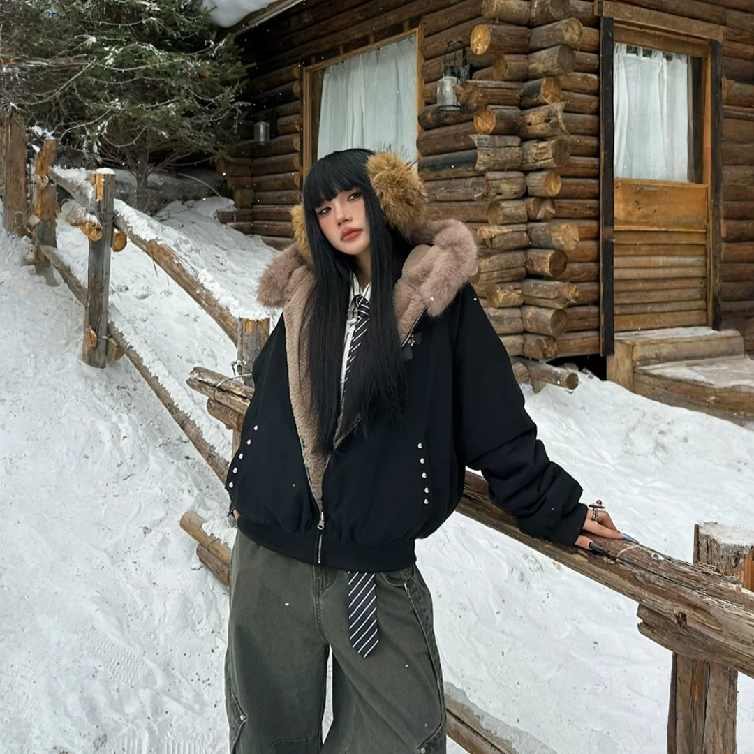 🔥冬の必須アウター🔥【アウター】秋冬 アメリカン カップル服 ルース レトロ 刺繍 フード付き コットン ジャケット【FCシリーズ】