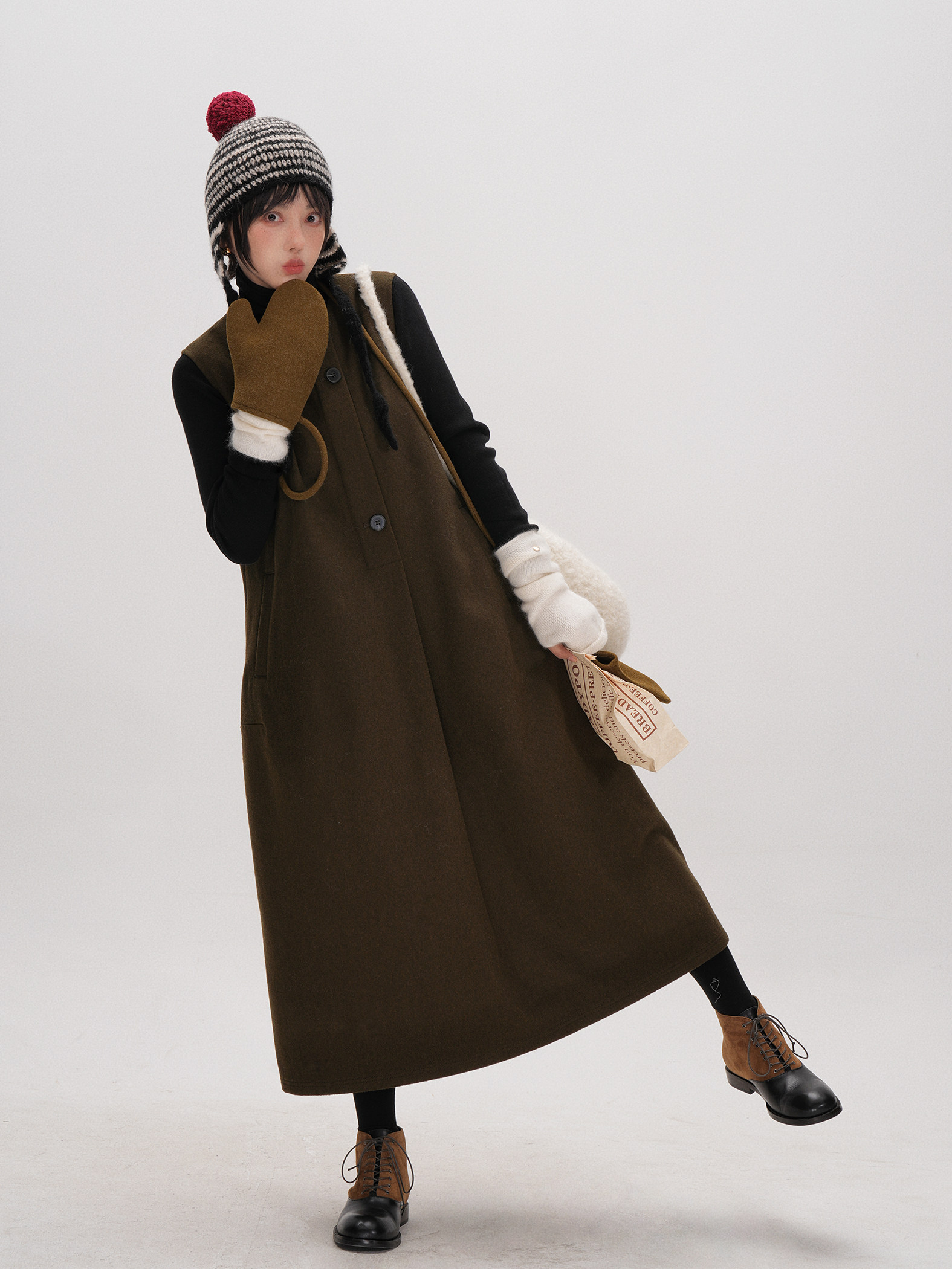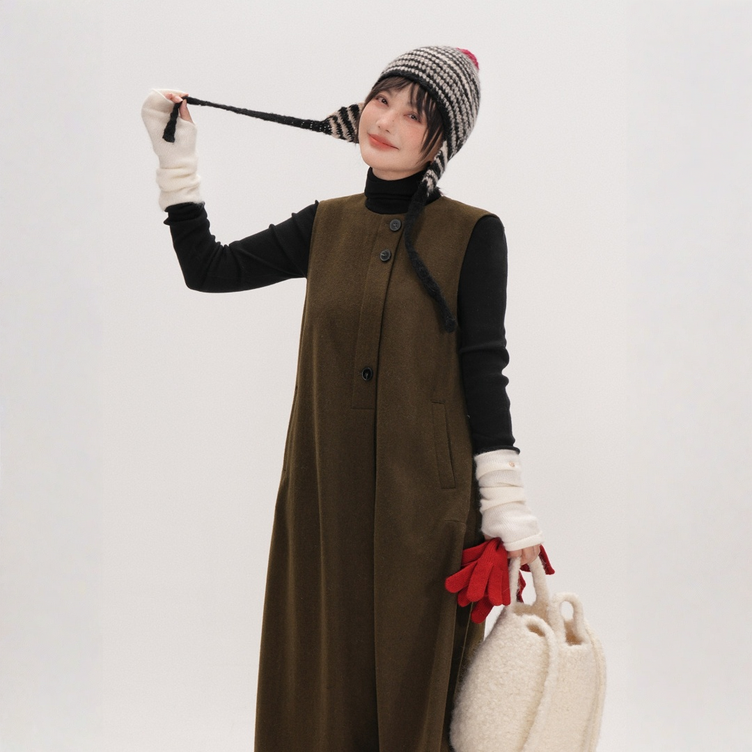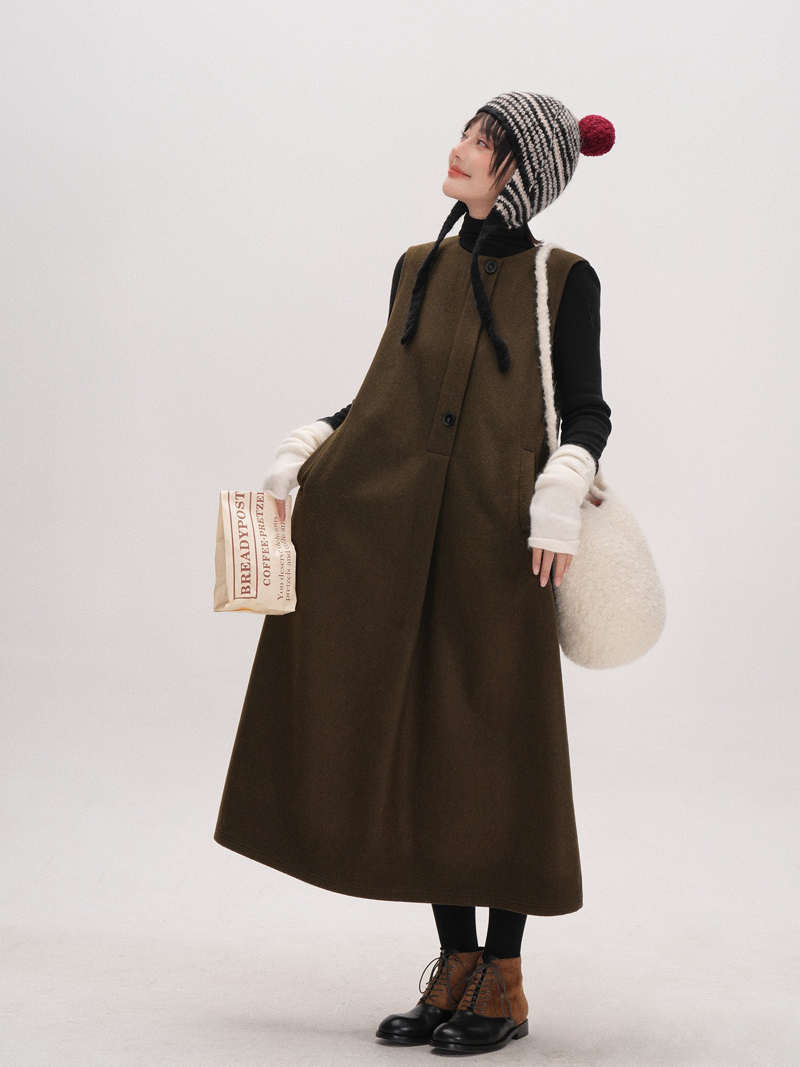 【商品名】【ワンピース】レトロ風 ウール調 春 秋 冬 ベスト ワンピース 【JZシリーズ】