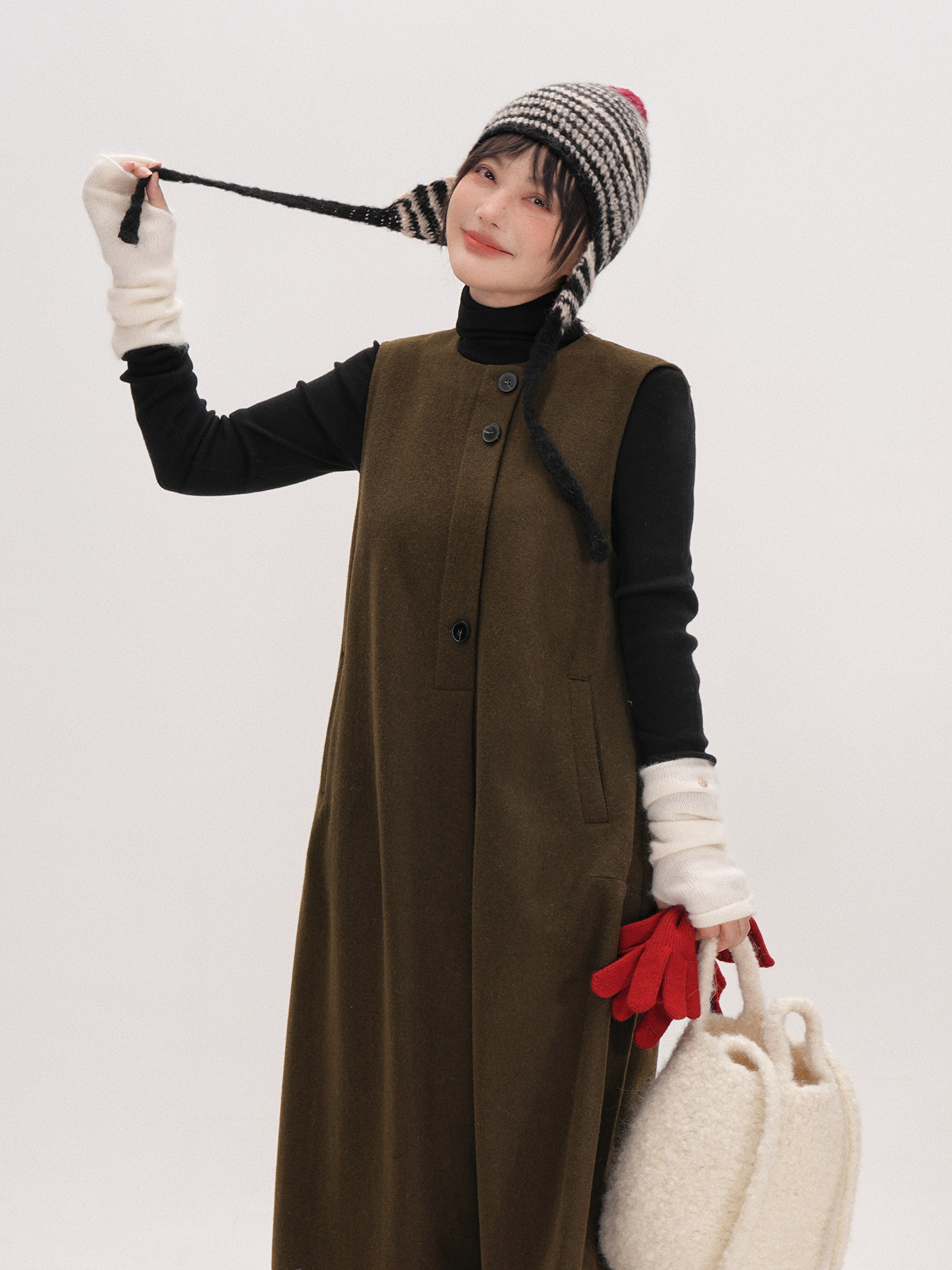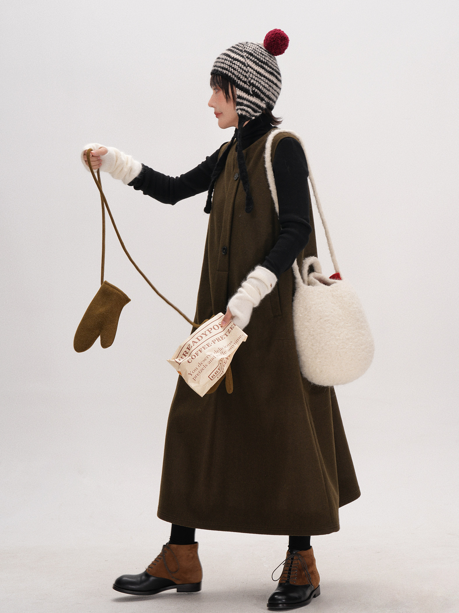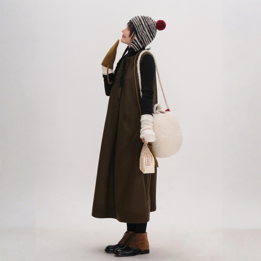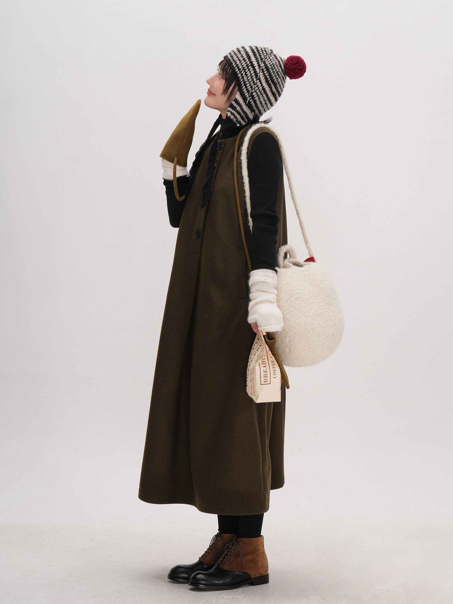 【商品名】【ワンピース】レトロ風 ウール調 春 秋 冬 ベスト ワンピース 【JZシリーズ】