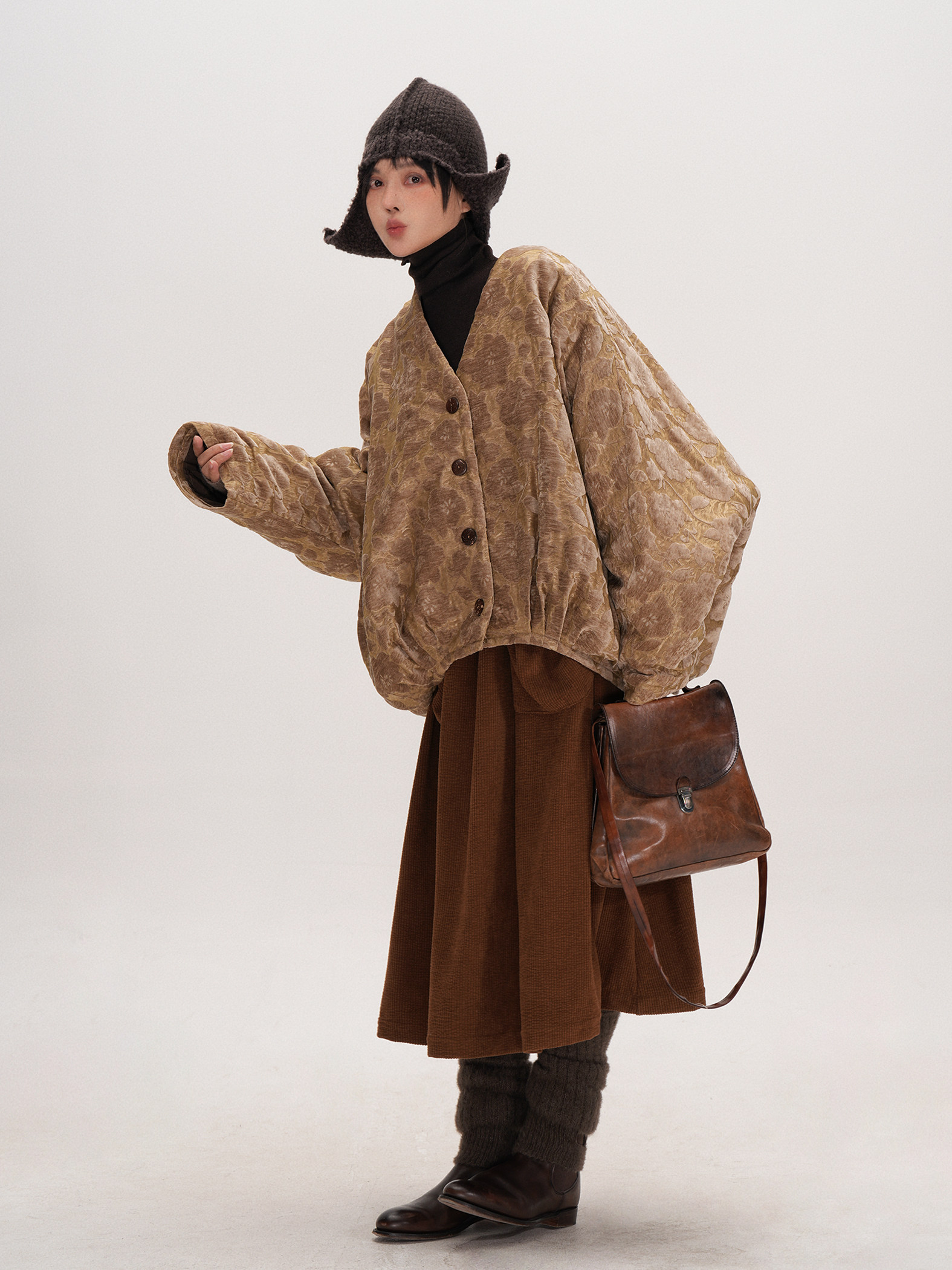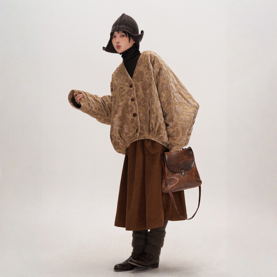 【アウター】秋冬レトロ ヴィンテージ加工 両面着用 厚い保温 綿入れコート【FCシリーズ】