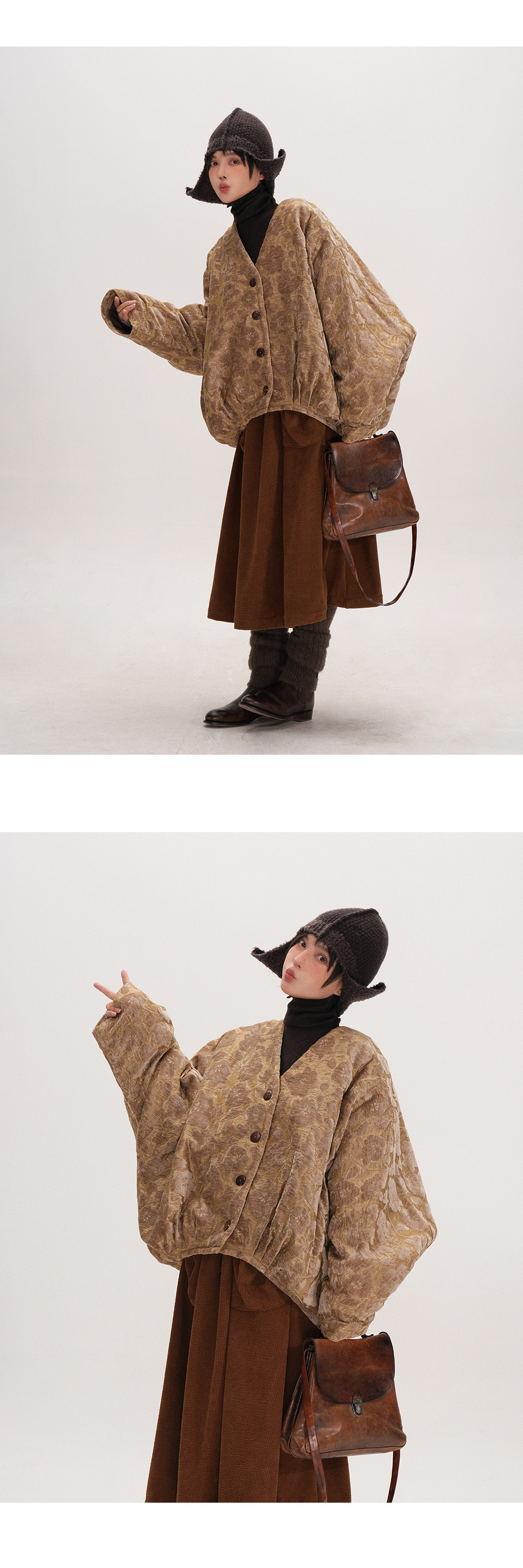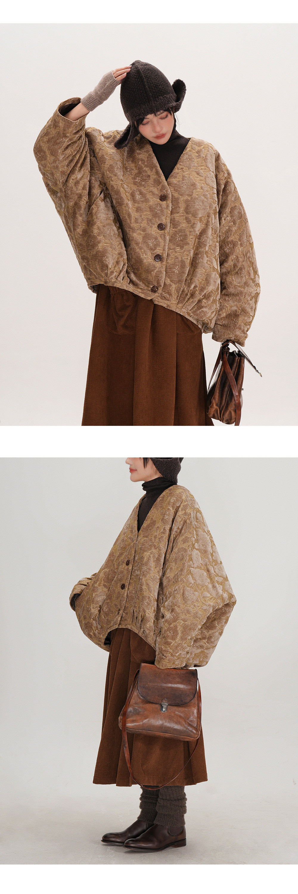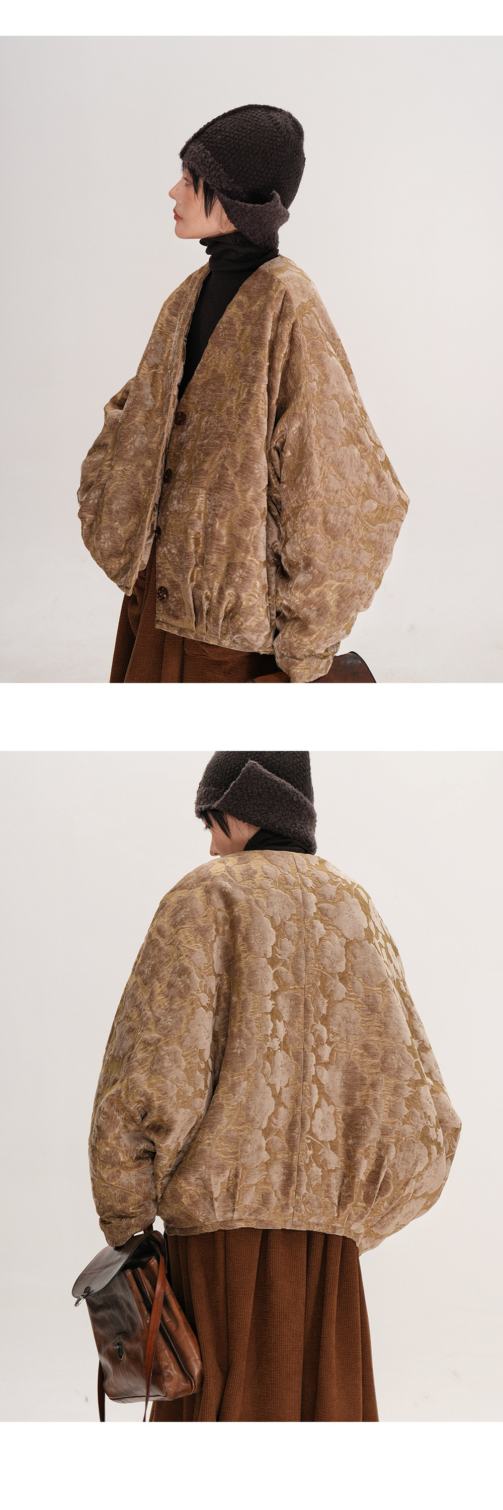 【アウター】オフィスカジュアル風 Vネック 中綿ジャケット 【JZシリーズ】