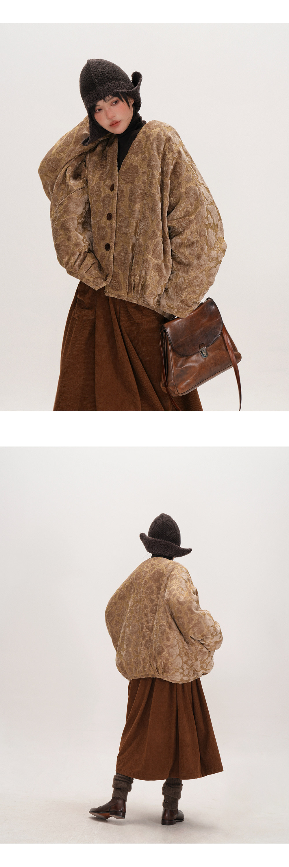 【商品名】【アウター】オフィスカジュアル風 Vネック 中綿ジャケット 【JZシリーズ】