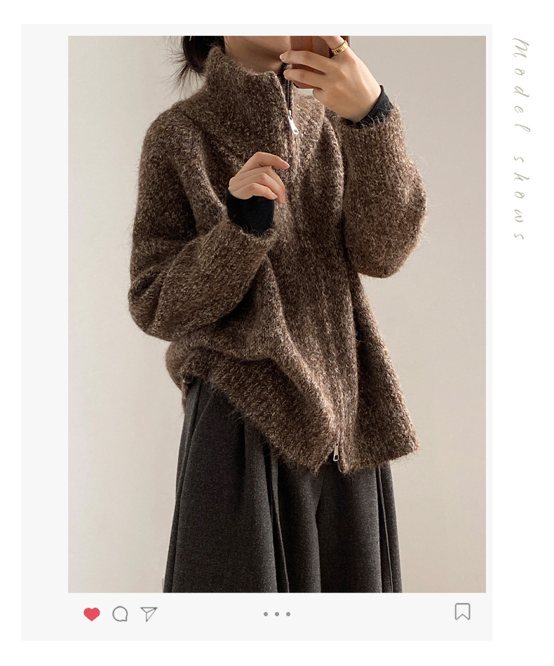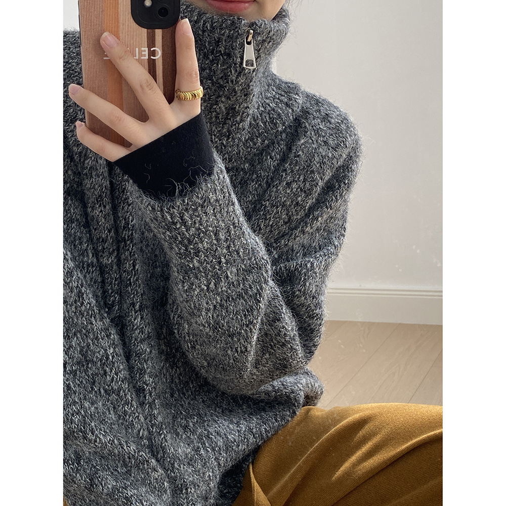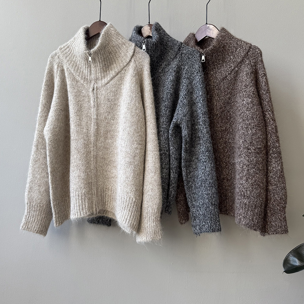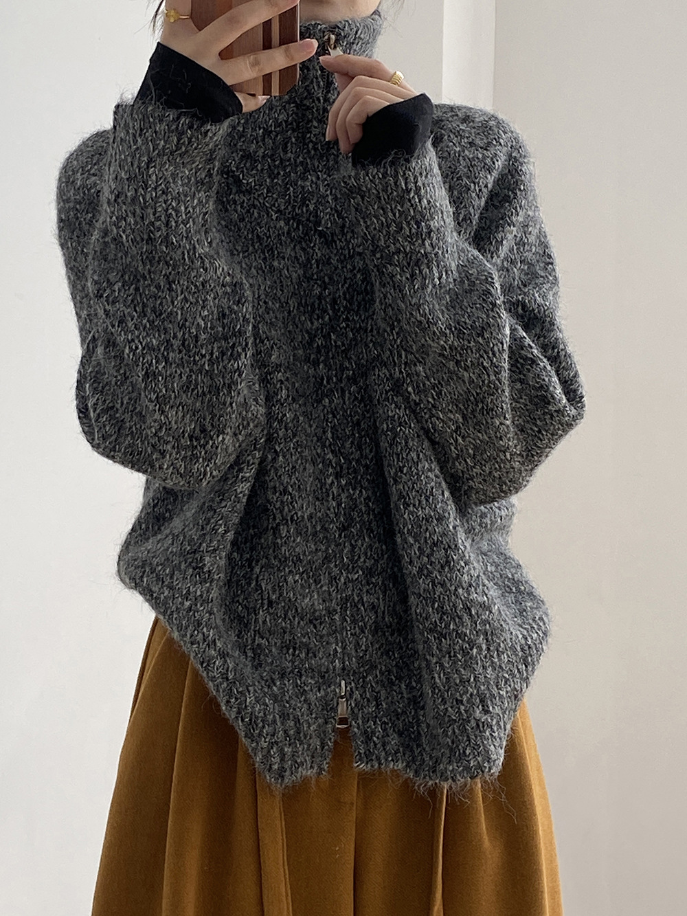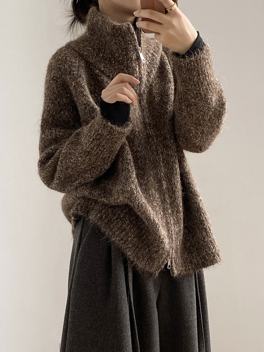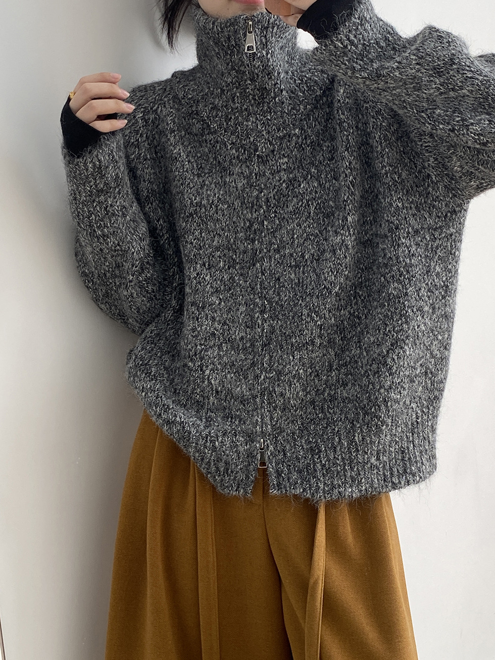 【トップス】ルーズ ファスナー付き 立襟 春 秋 冬 プルオーバー ニット セーター 【FCシリーズ】