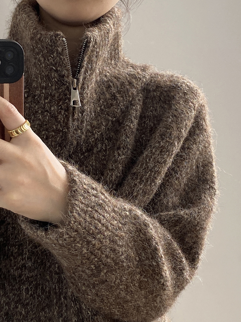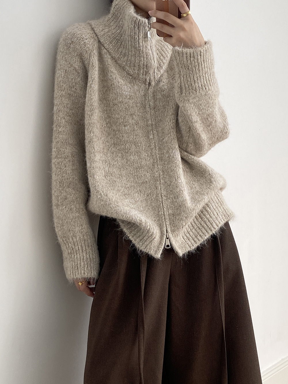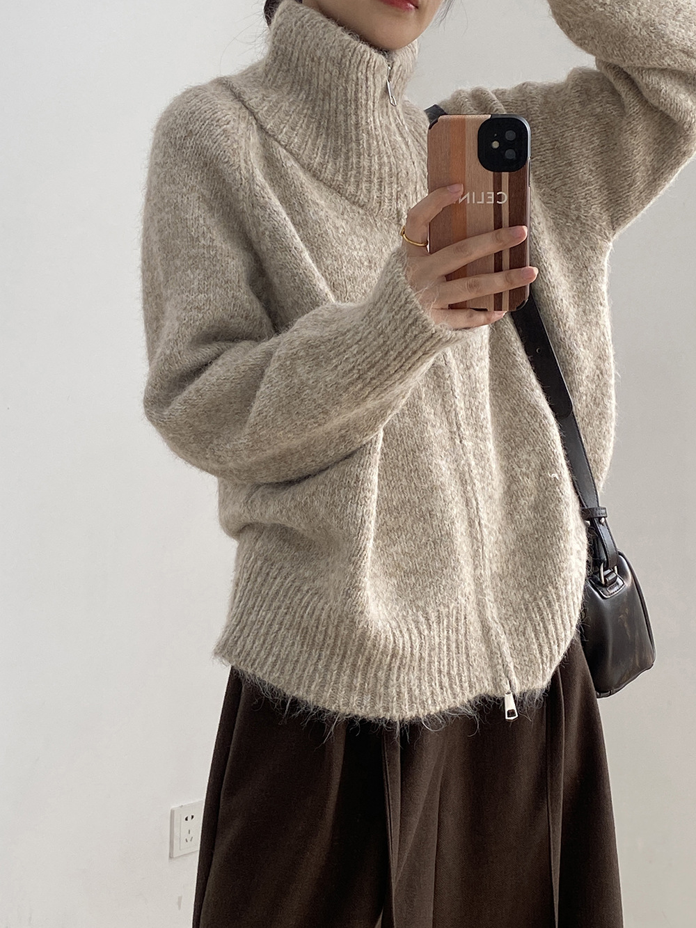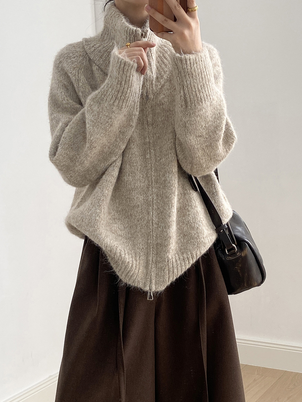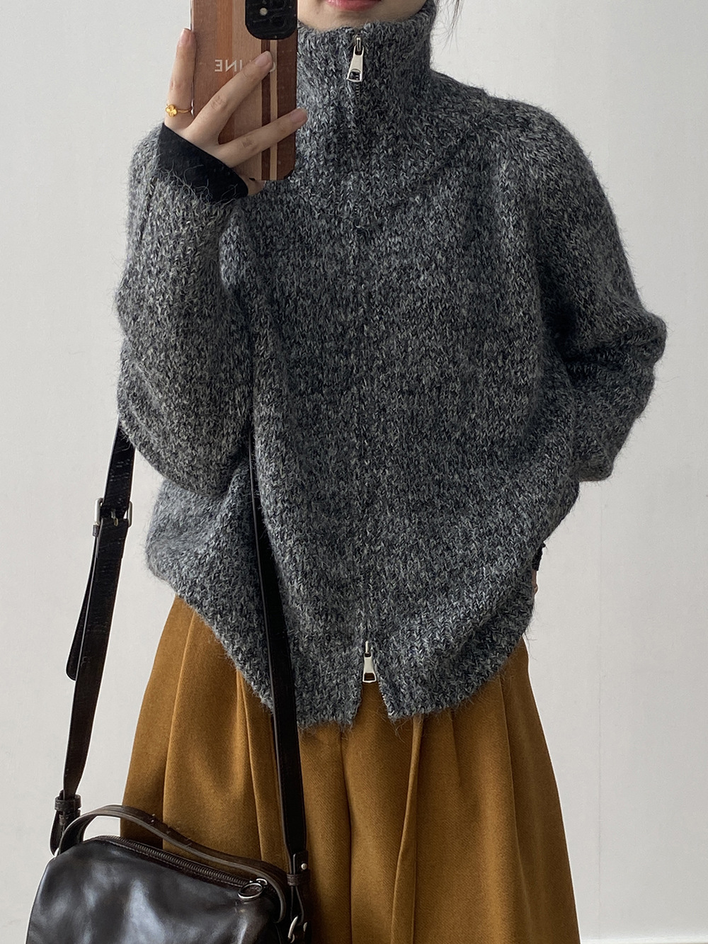 【トップス】ルーズ ファスナー付き 立襟 春 秋 冬 プルオーバー ニット セーター 【FCシリーズ】