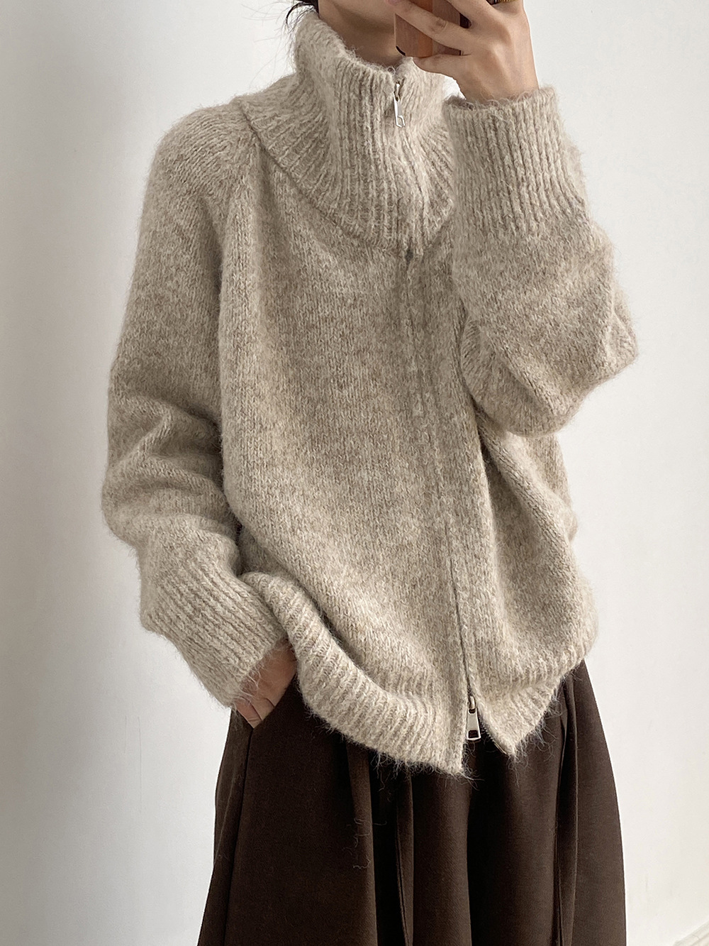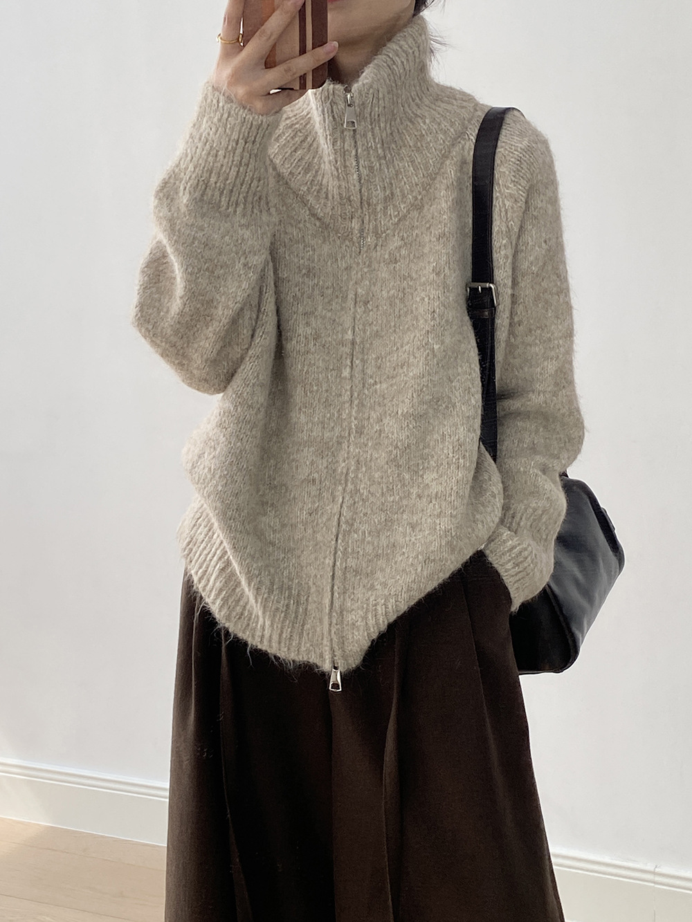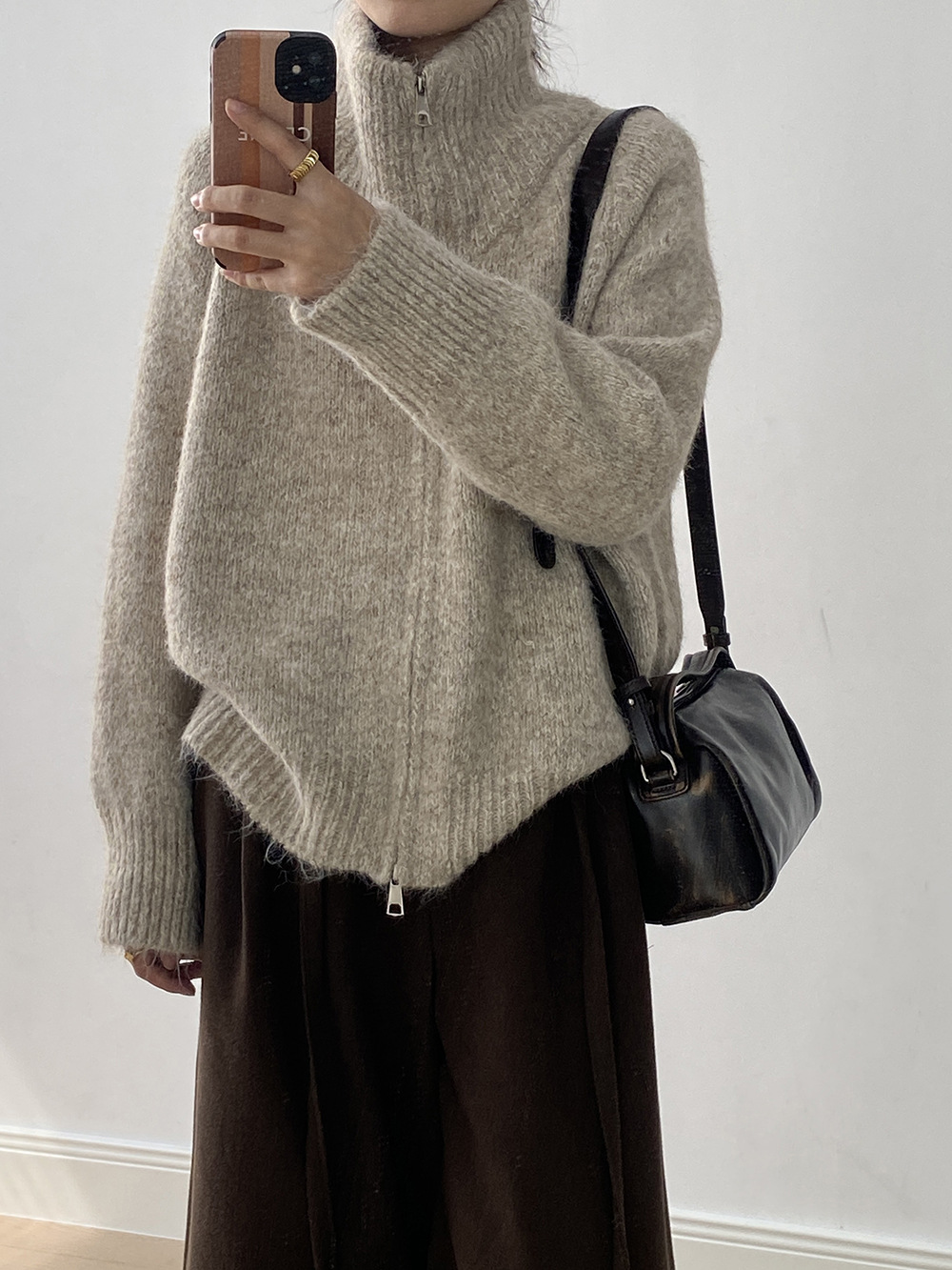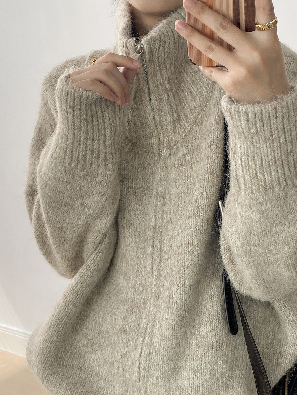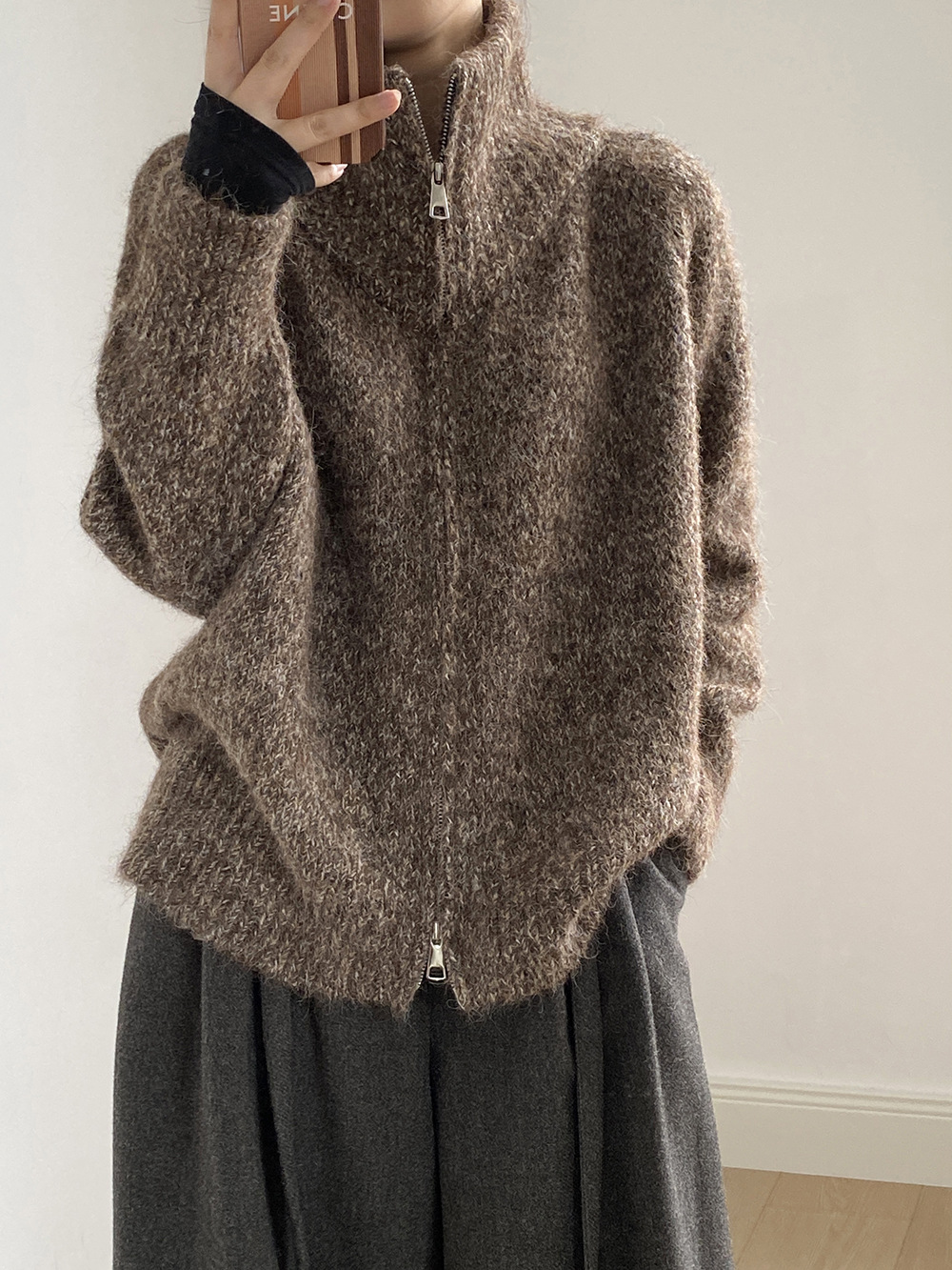 【トップス】ルーズ ファスナー付き 立襟 春 秋 冬 プルオーバー ニット セーター 【FCシリーズ】