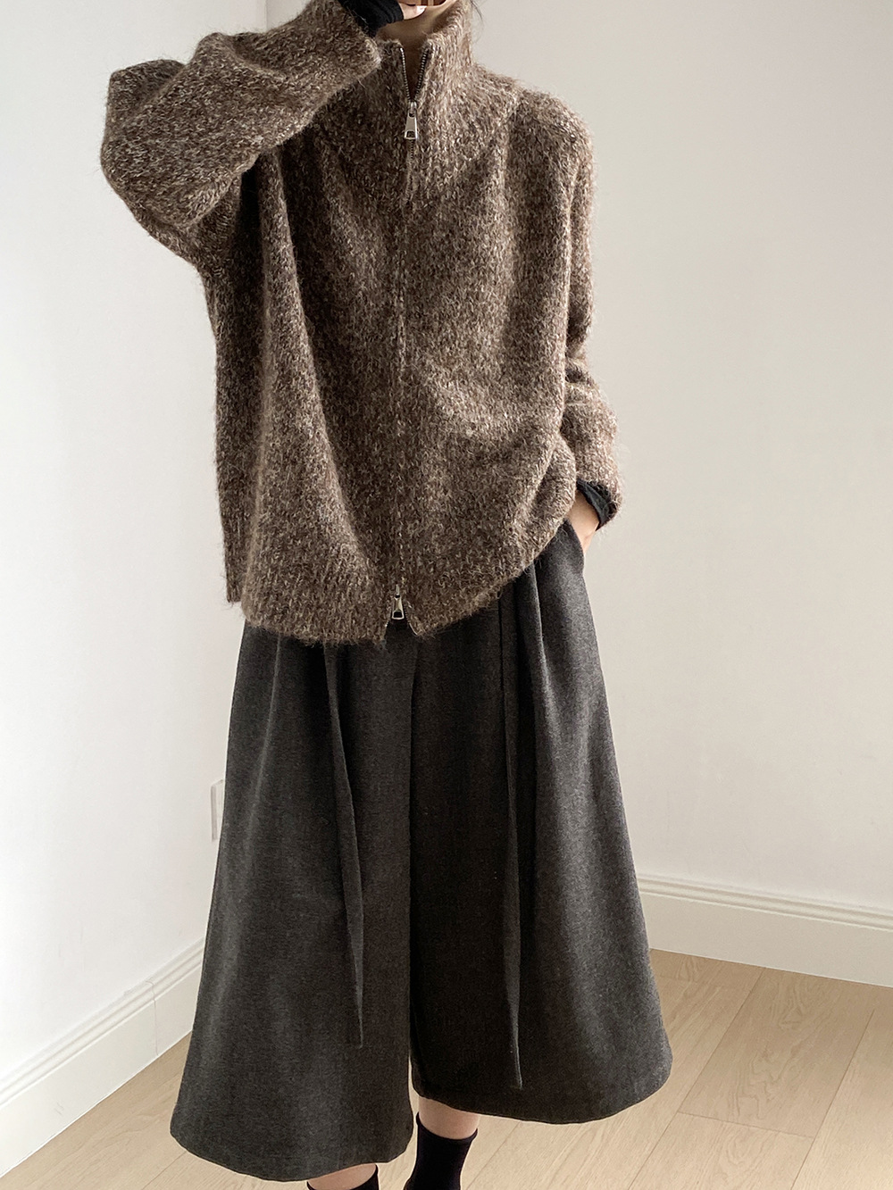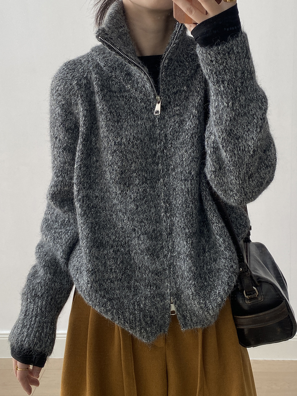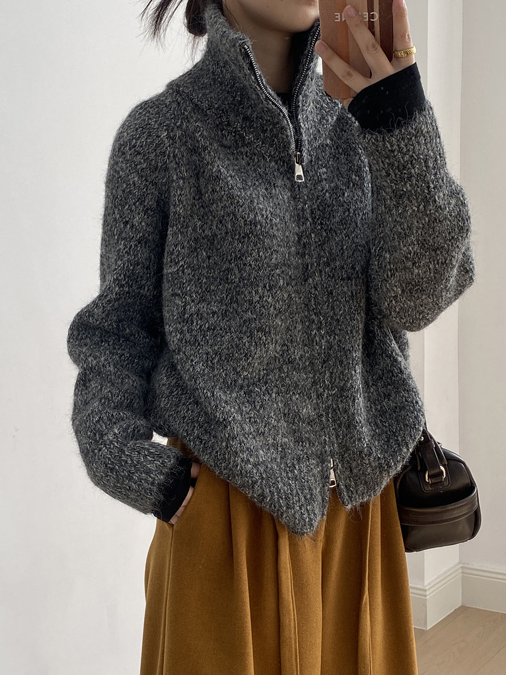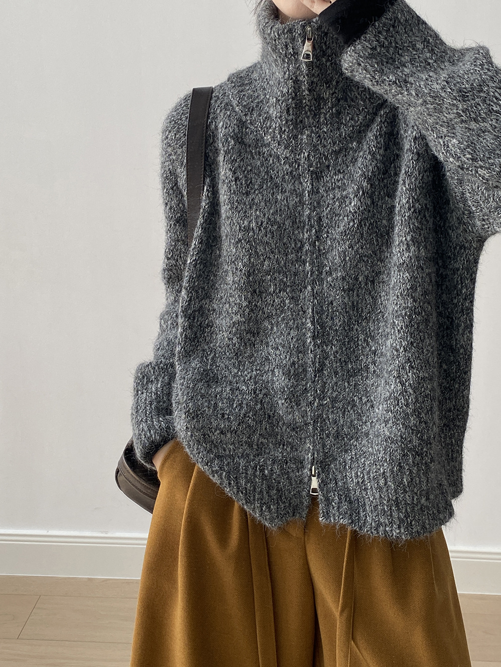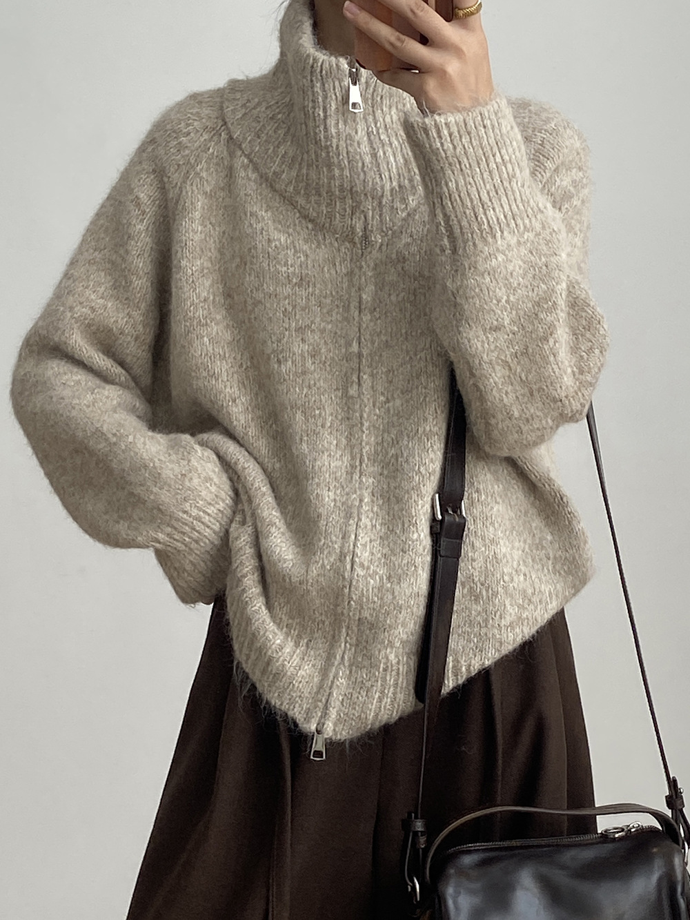 【トップス】ルーズ ファスナー付き 立襟 春 秋 冬 プルオーバー ニット セーター 【FCシリーズ】