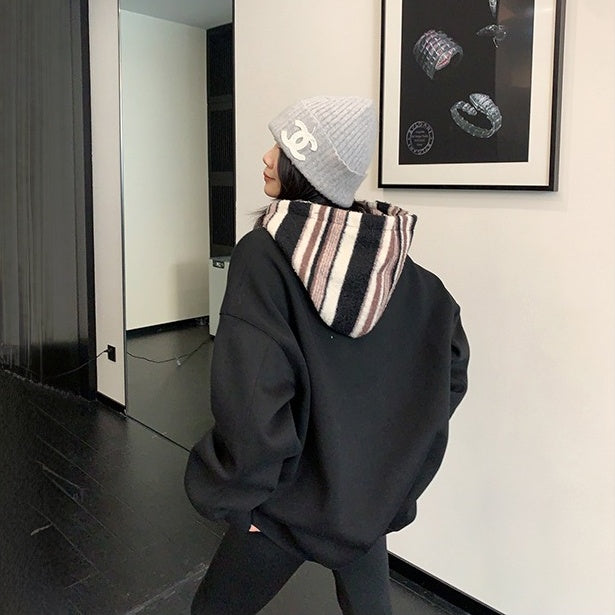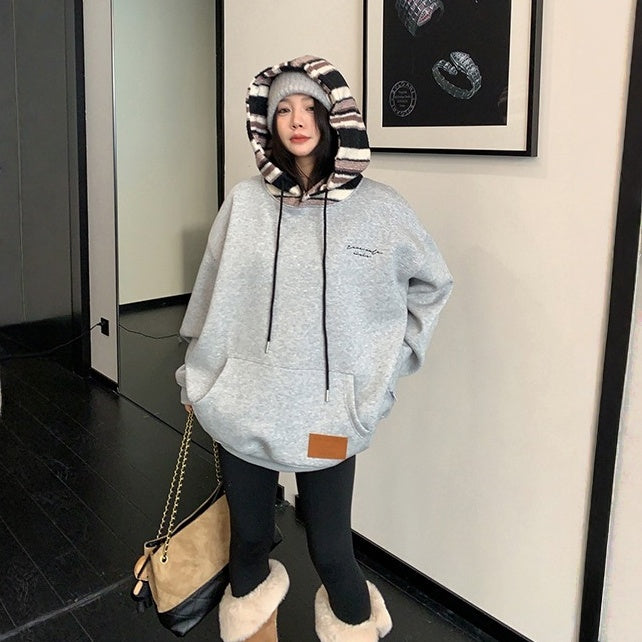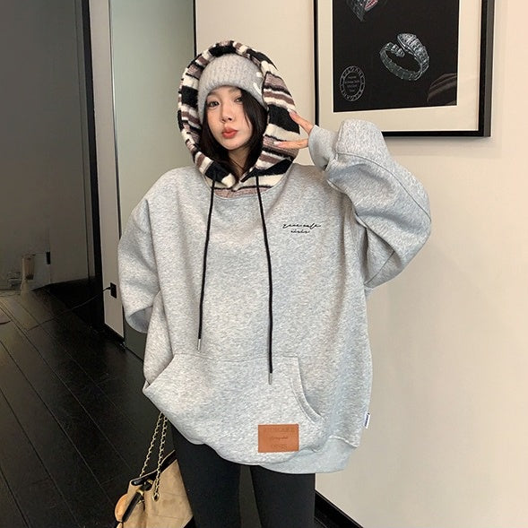 【トップス】裏起毛 春 秋 冬 切り替え ルーズ フード付きパーカー 【FCシリーズ】