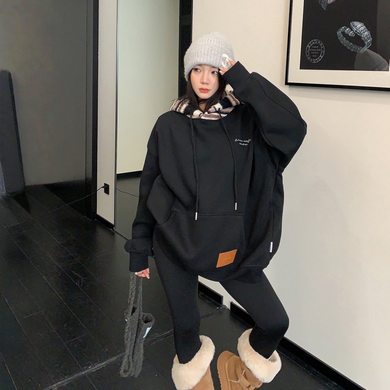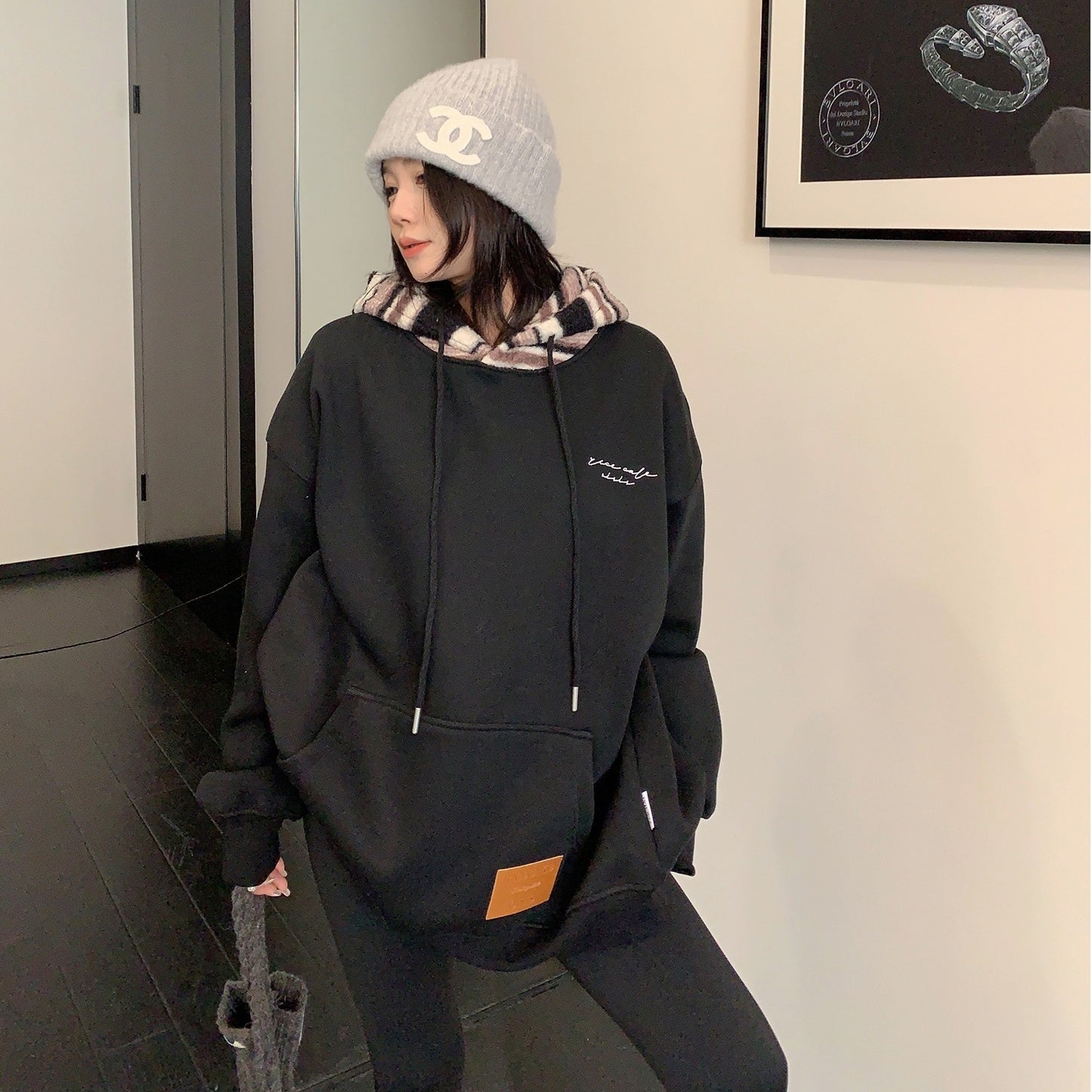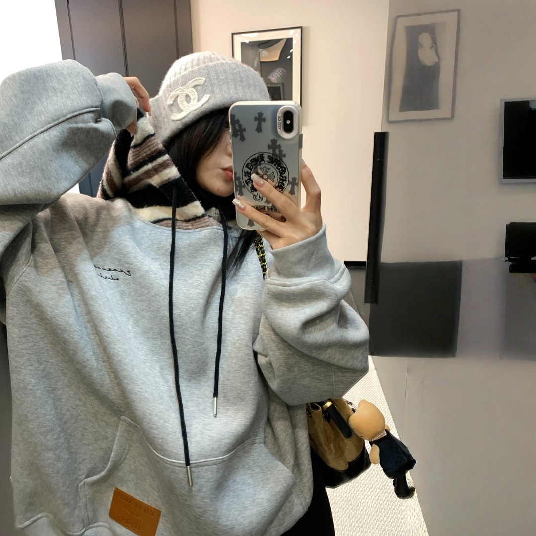 【トップス】💖カップルでも着られる!ワイドフーディ 裏起毛 重工パッチ&刺繍 レディース 冬新作【FCシリーズ】