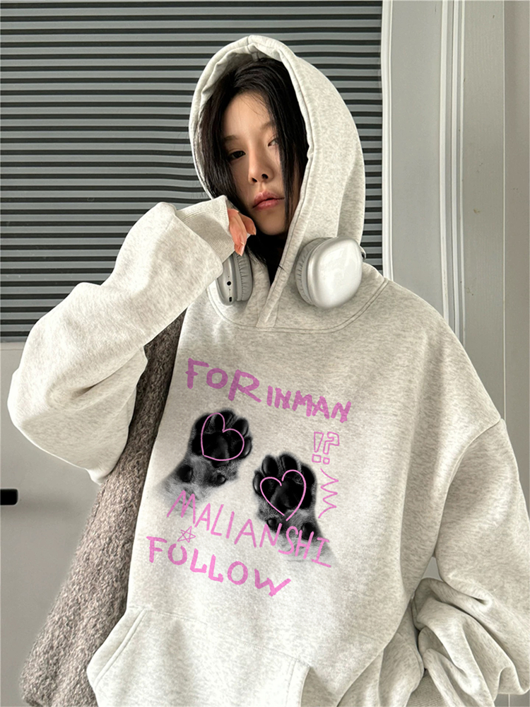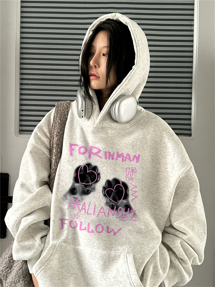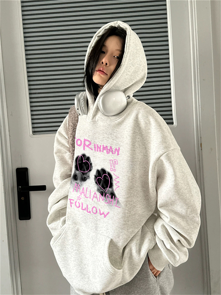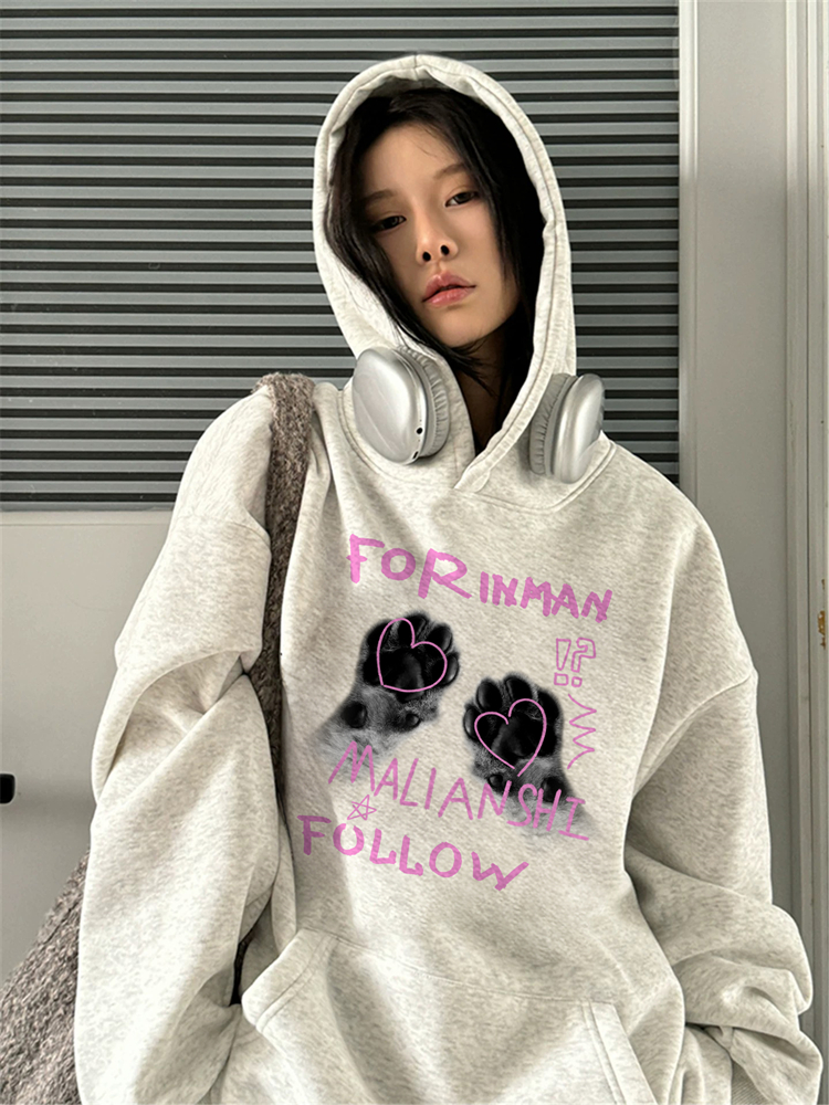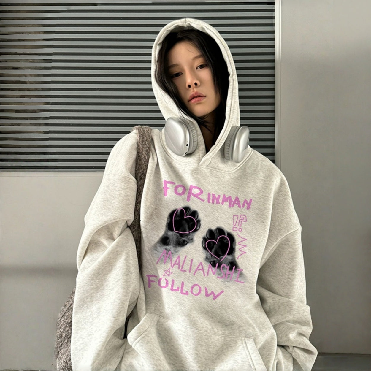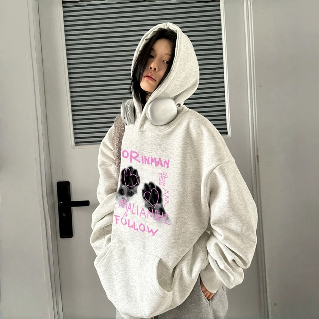 【トップス】レトロ感たっぷり ぼかしシルエットプリント ストリートゆるパーカー【FCシリーズ】