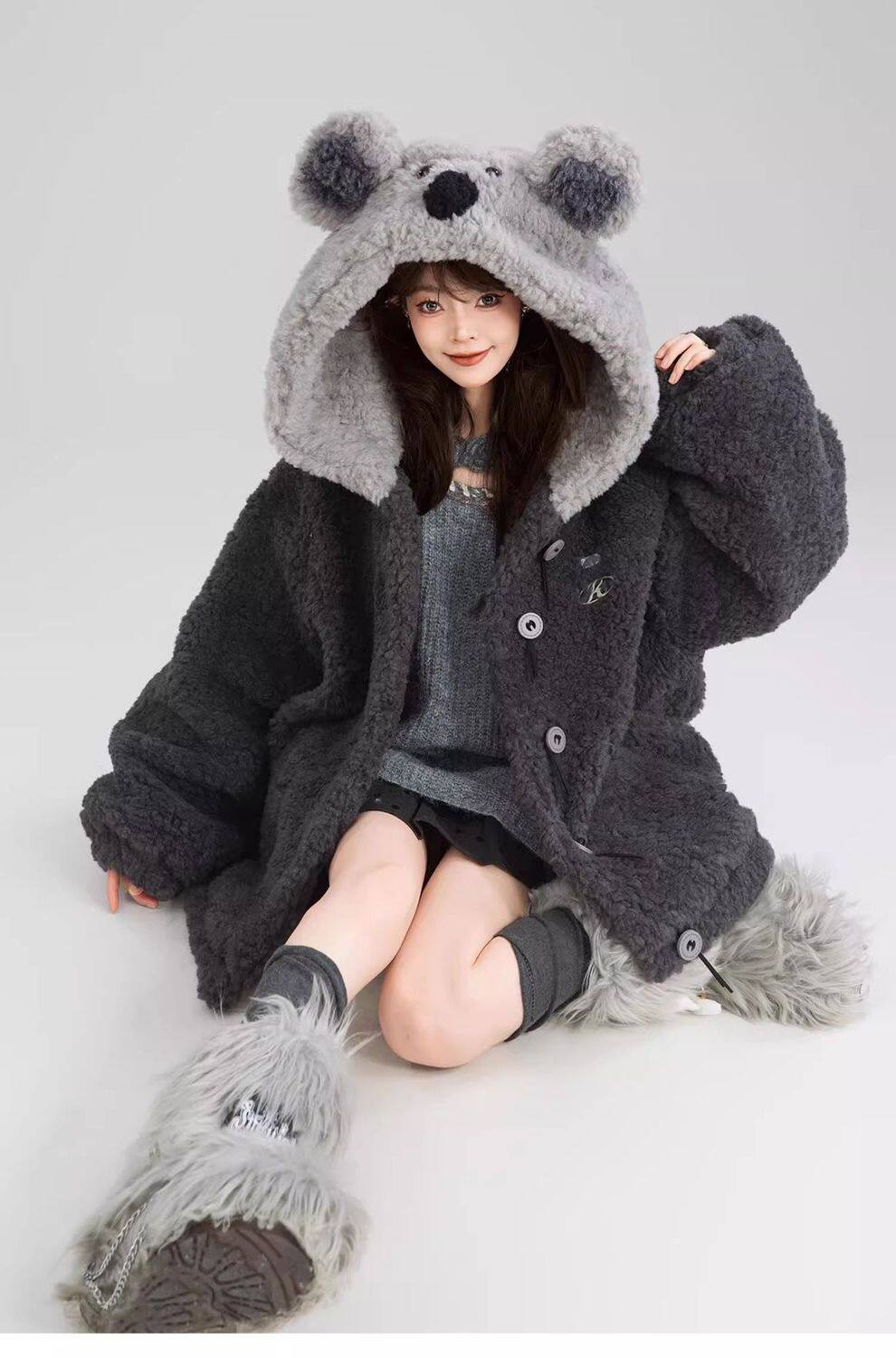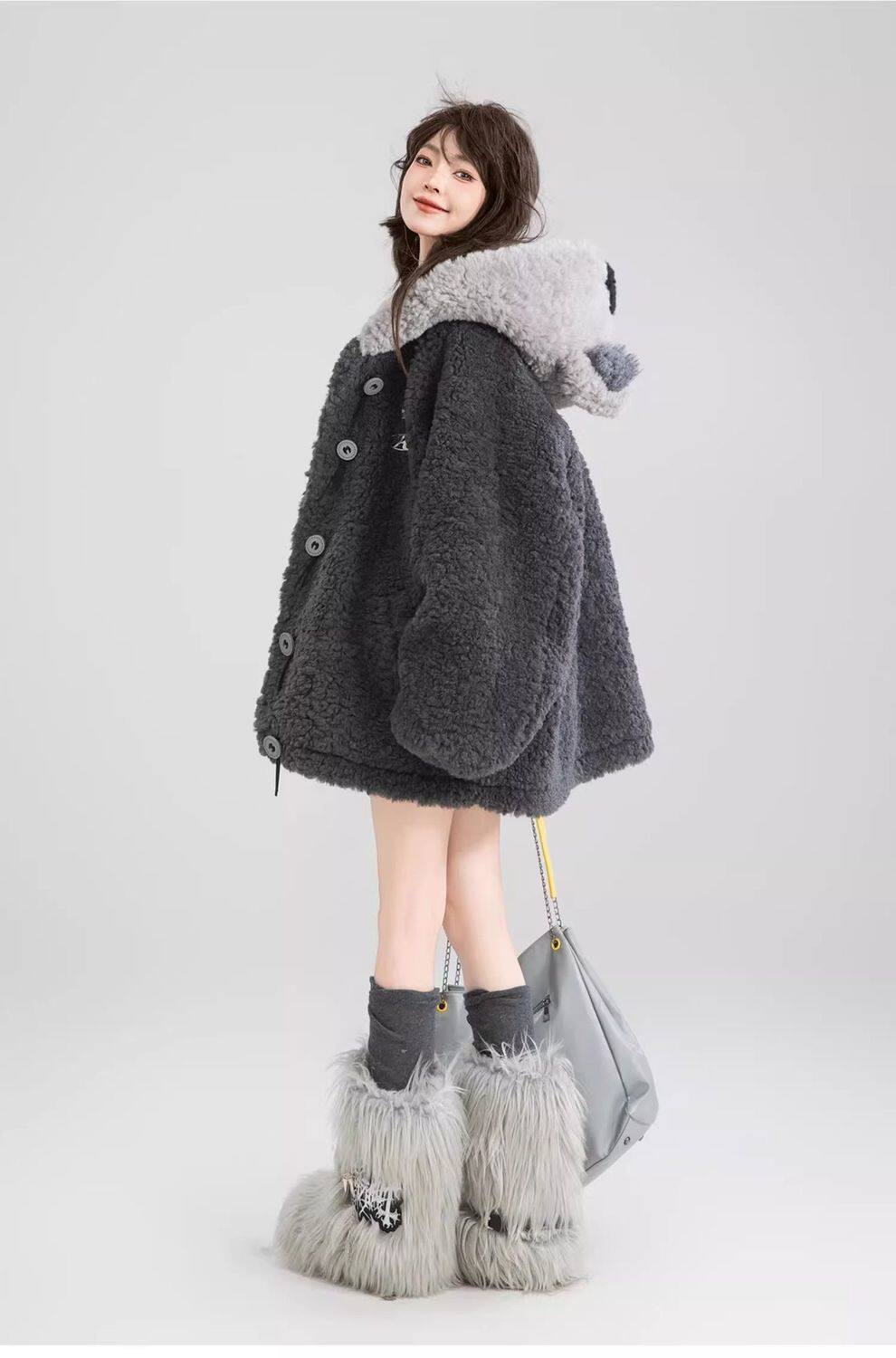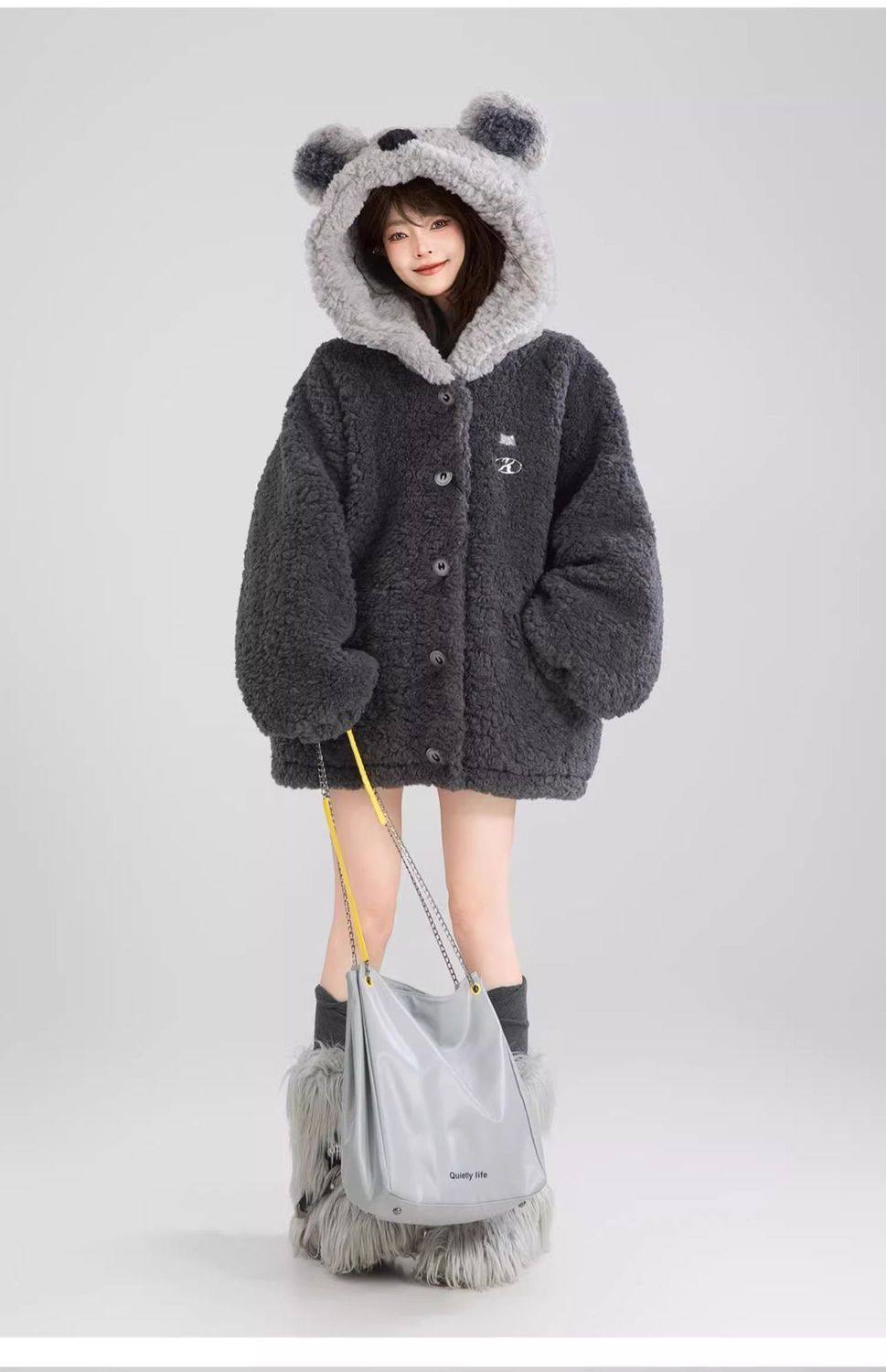 【商品名】L~4XL【アウター】可愛いくま フード付き ボアコート レディース 冬 もこもこ 厚手 大きいサイズ【FCシリーズ】