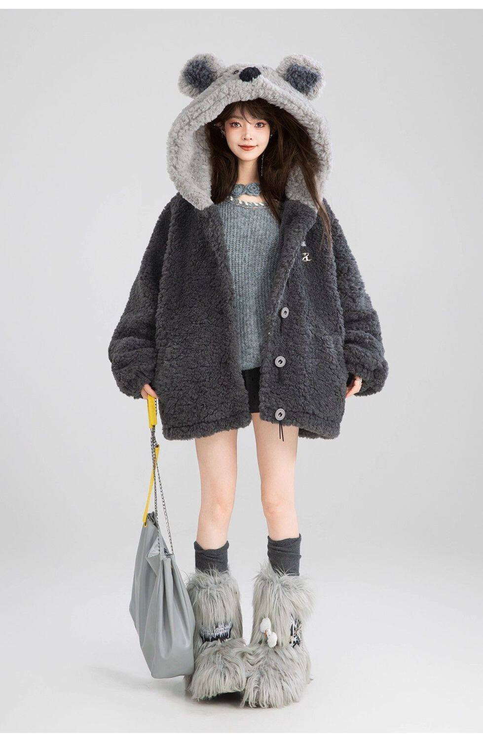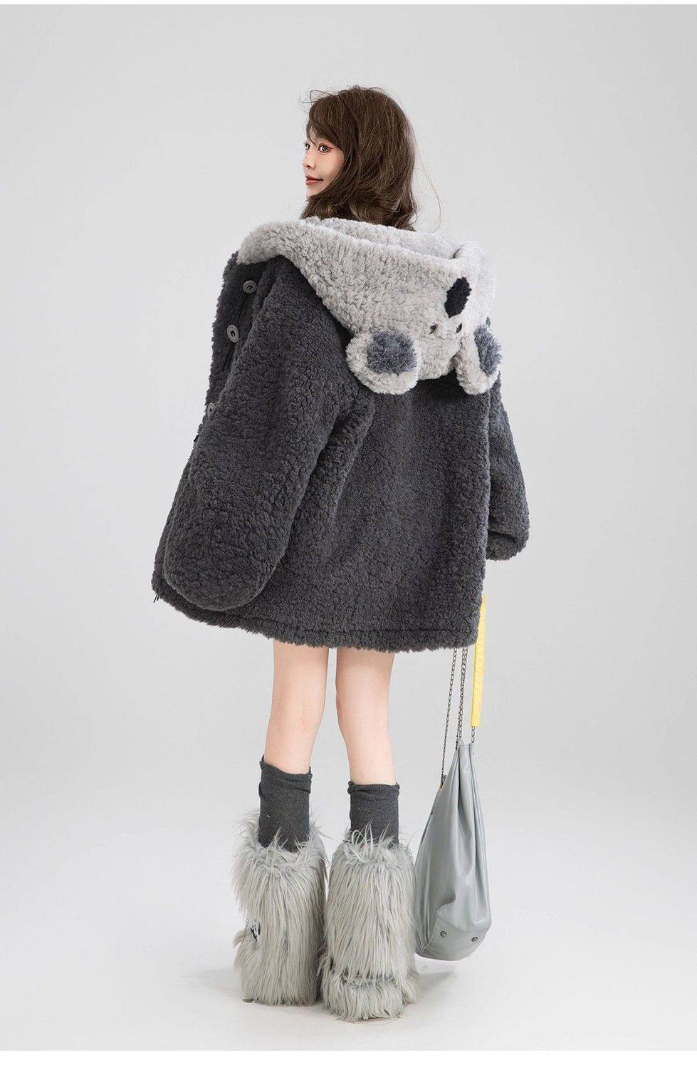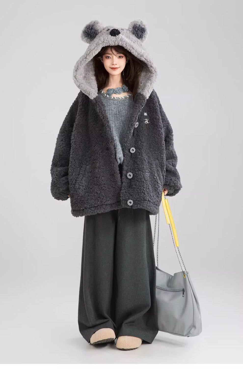 【商品名】L~4XL【アウター】可愛いくま フード付き ボアコート レディース 冬 もこもこ 厚手 大きいサイズ【FCシリーズ】