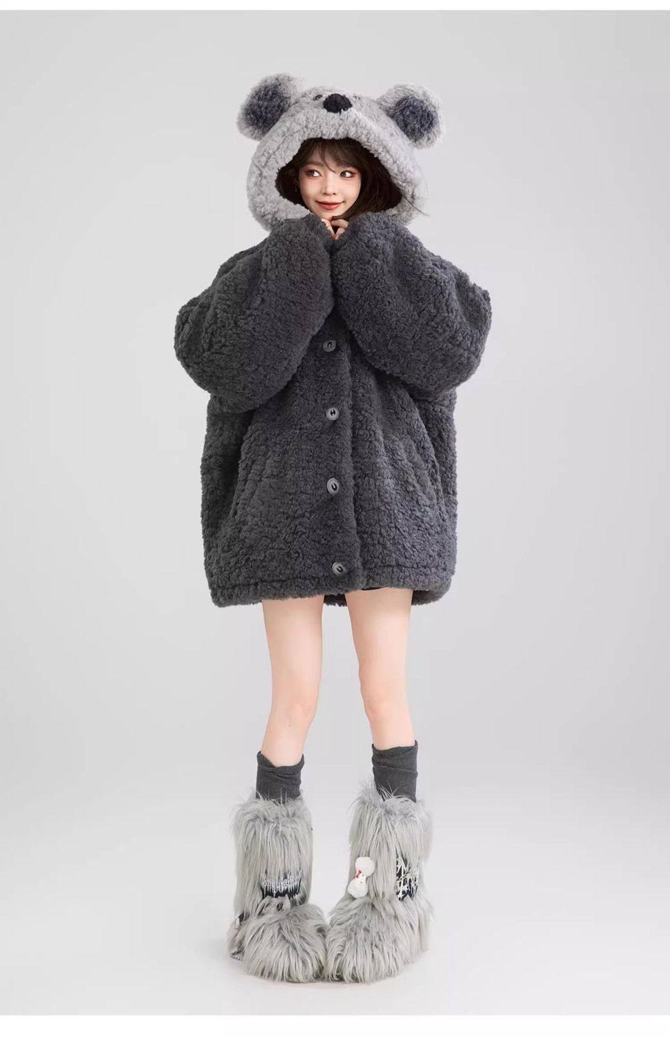 L~4XL【アウター】可愛いくま フード付き ボアコート レディース 冬 もこもこ 厚手 大きいサイズ【FCシリーズ】