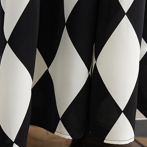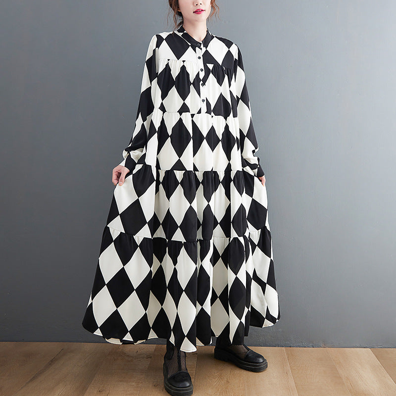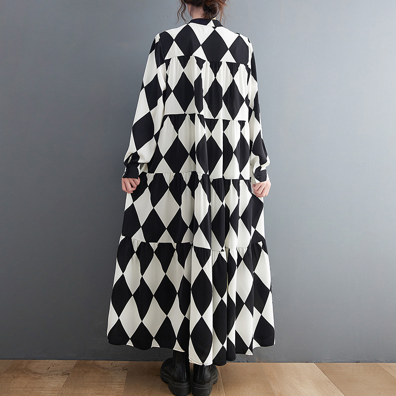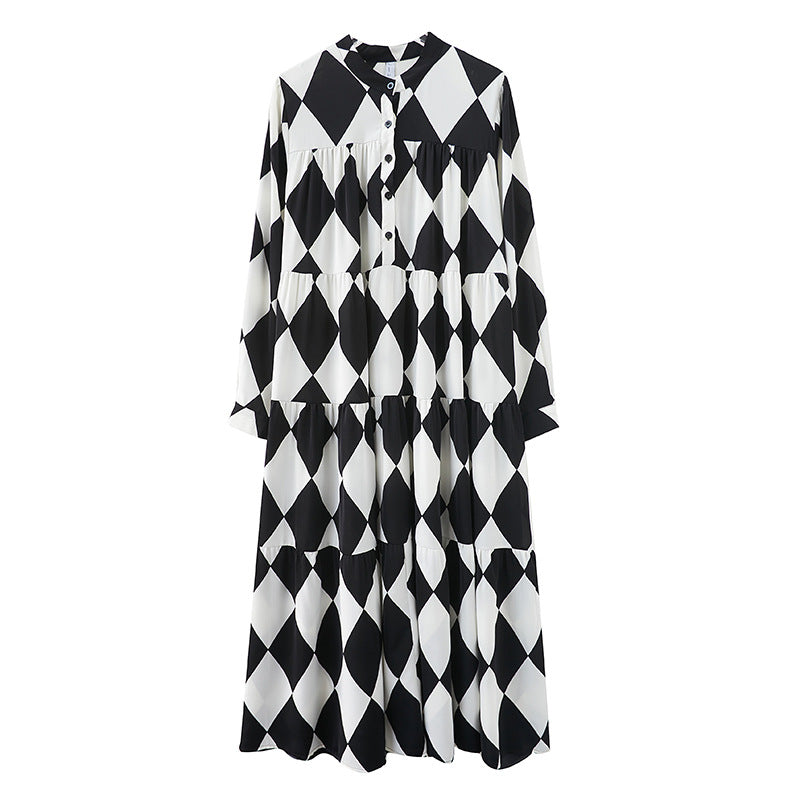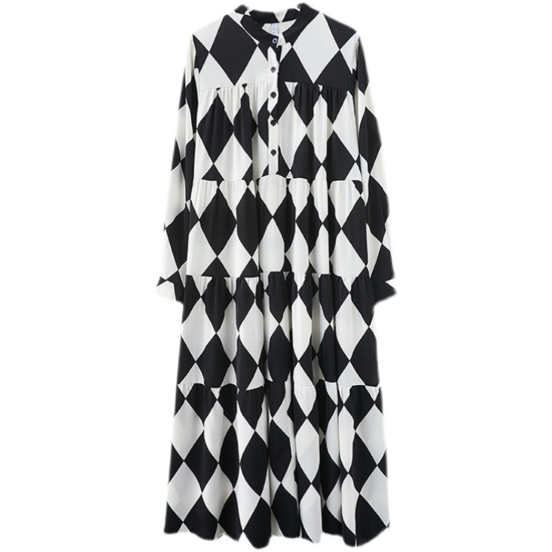 【ワンピース】ブラック&ホワイト ブラック&ホワイト プリント 長袖 ワンピース 【SHシリーズ】