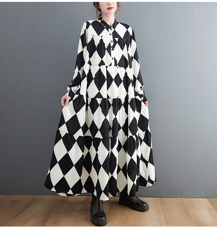 【商品名】【ワンピース】ブラック&ホワイト ブラック&ホワイト プリント 長袖 ワンピース 【SHシリーズ】