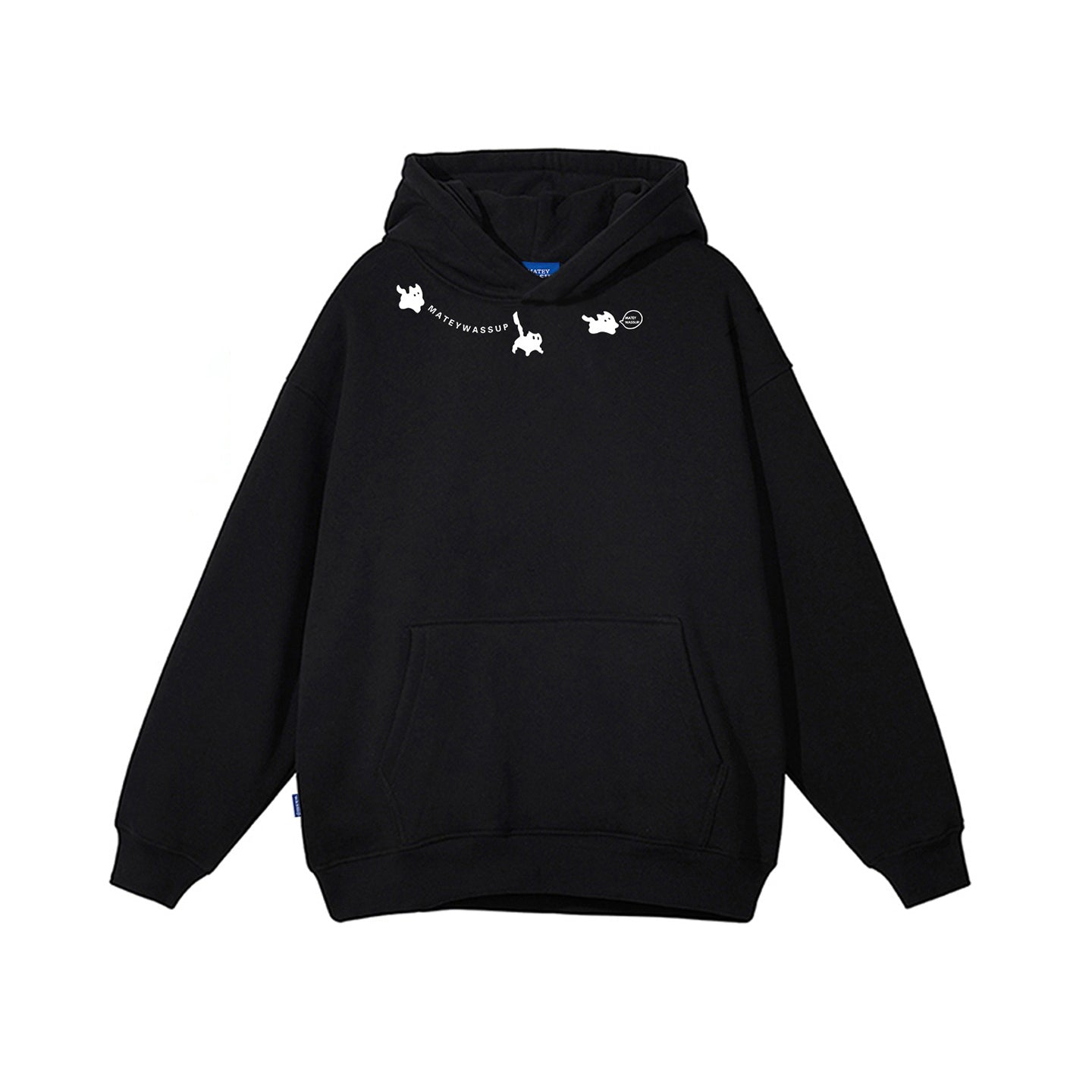 全7色【トップス】🐱猫プリント フード付き スウェット ユニセックス 秋冬 ゆったり かわいい パーカー【FCシリーズ】