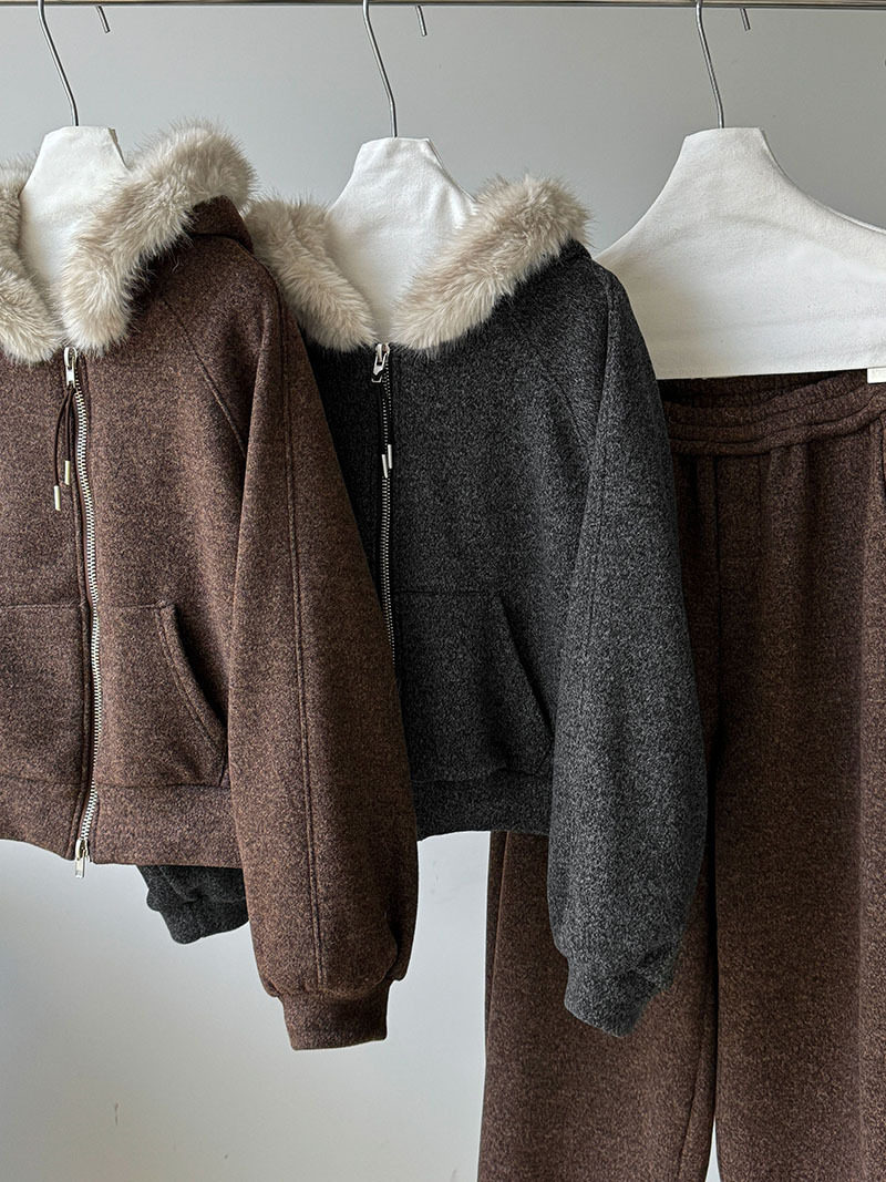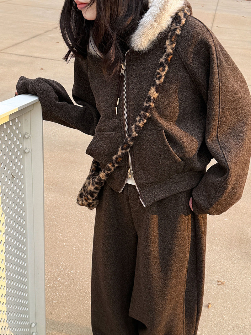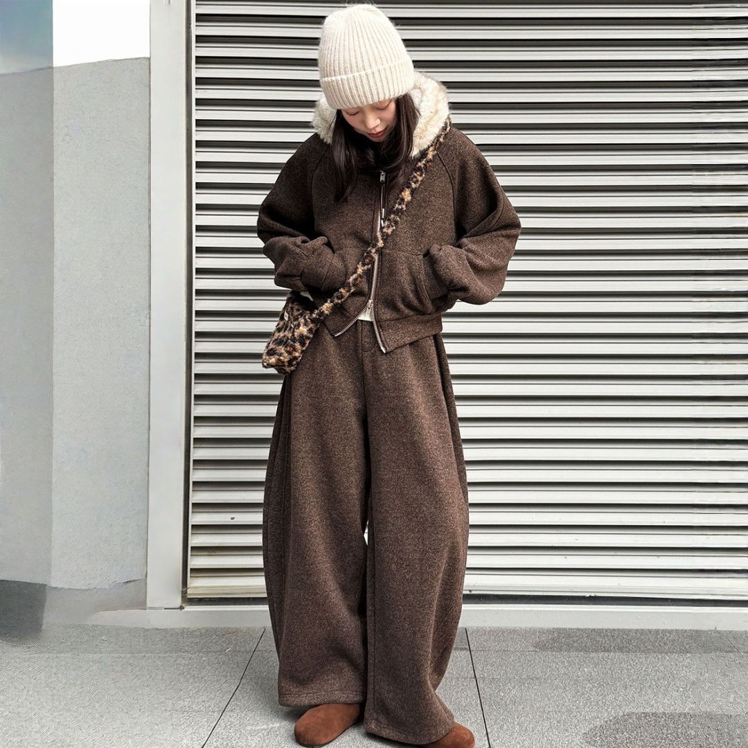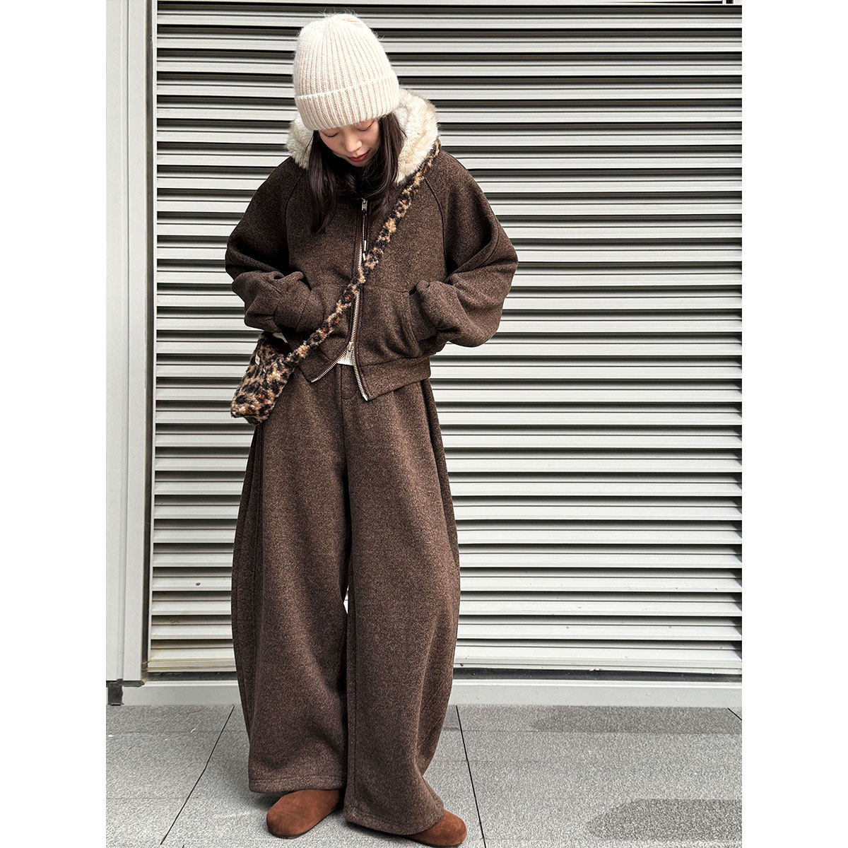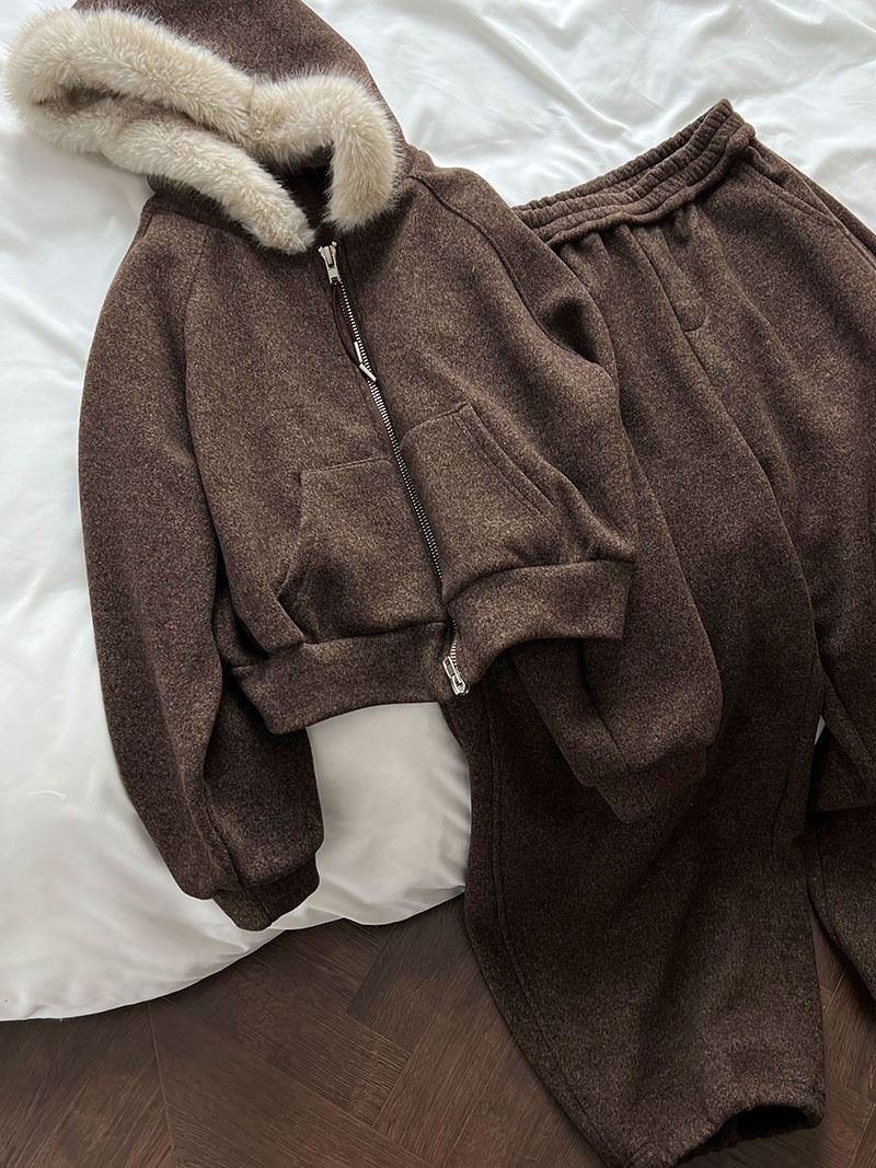 【セットアップ】【単品注文】ファー襟 スウェットアウター + カーブ ワイドパンツ 2点上下セット 【JZシリーズ】