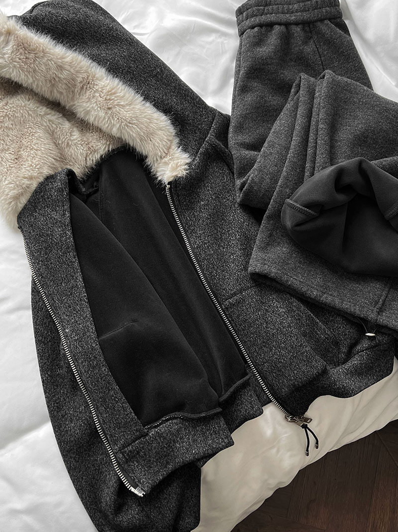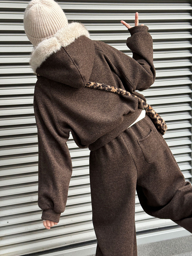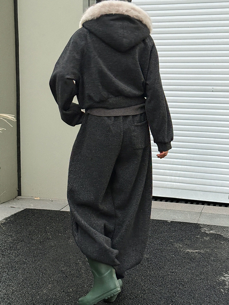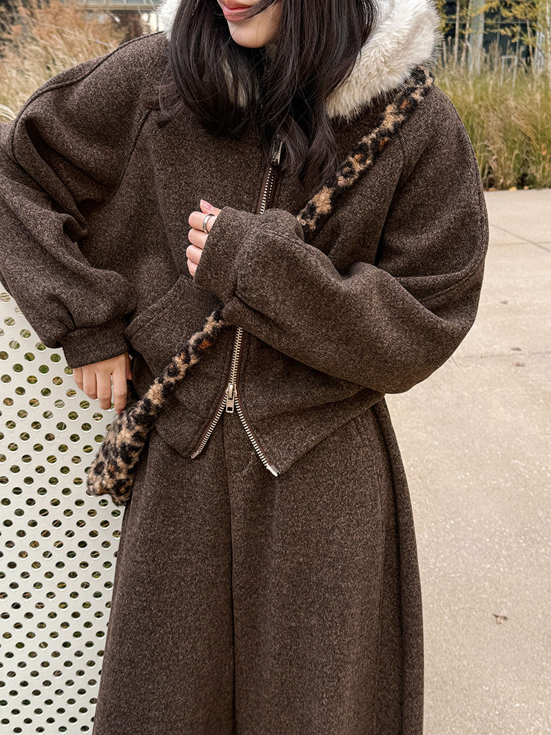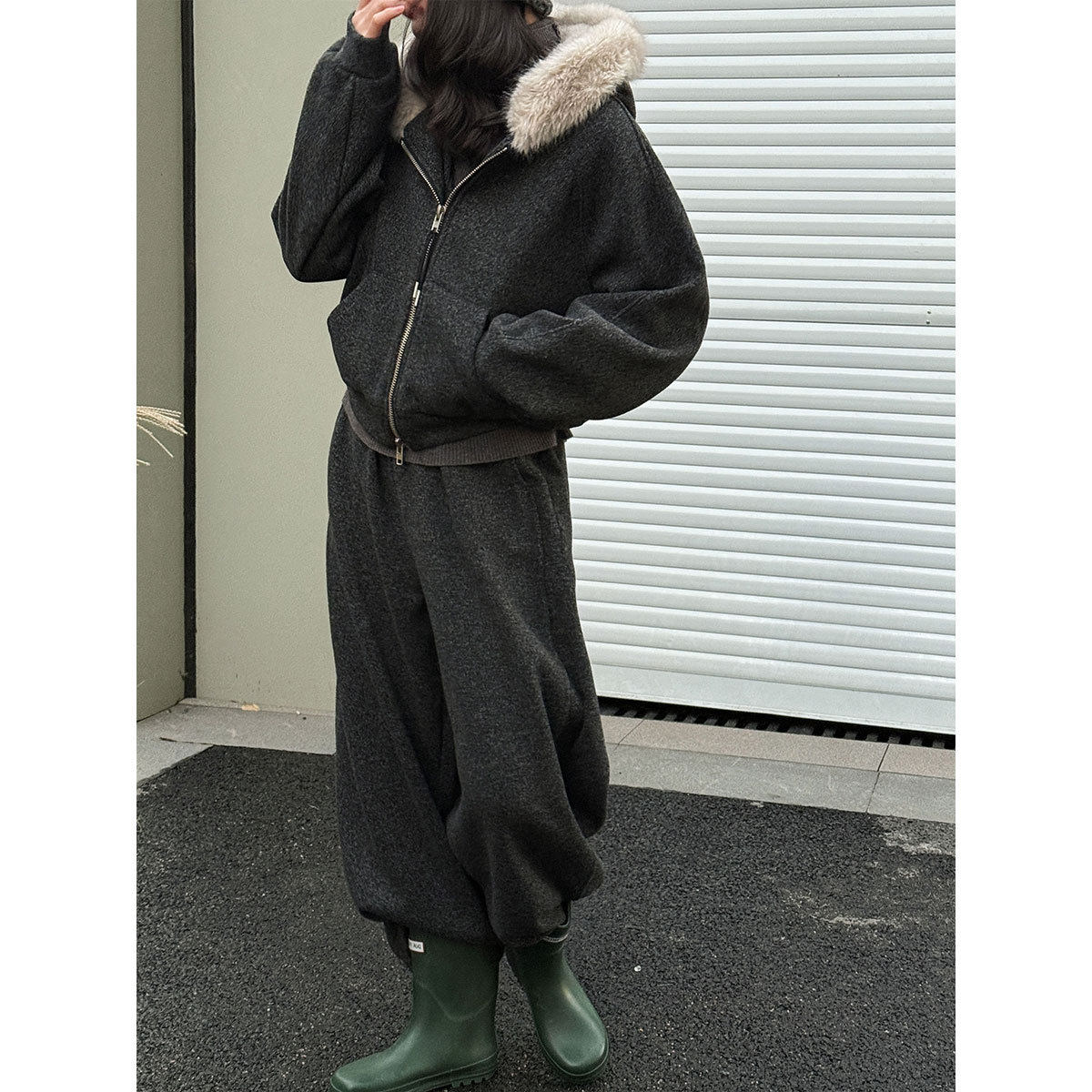 【商品名】【セットアップ】【単品注文】ファー襟 スウェットアウター + カーブ ワイドパンツ 2点上下セット 【JZシリーズ】