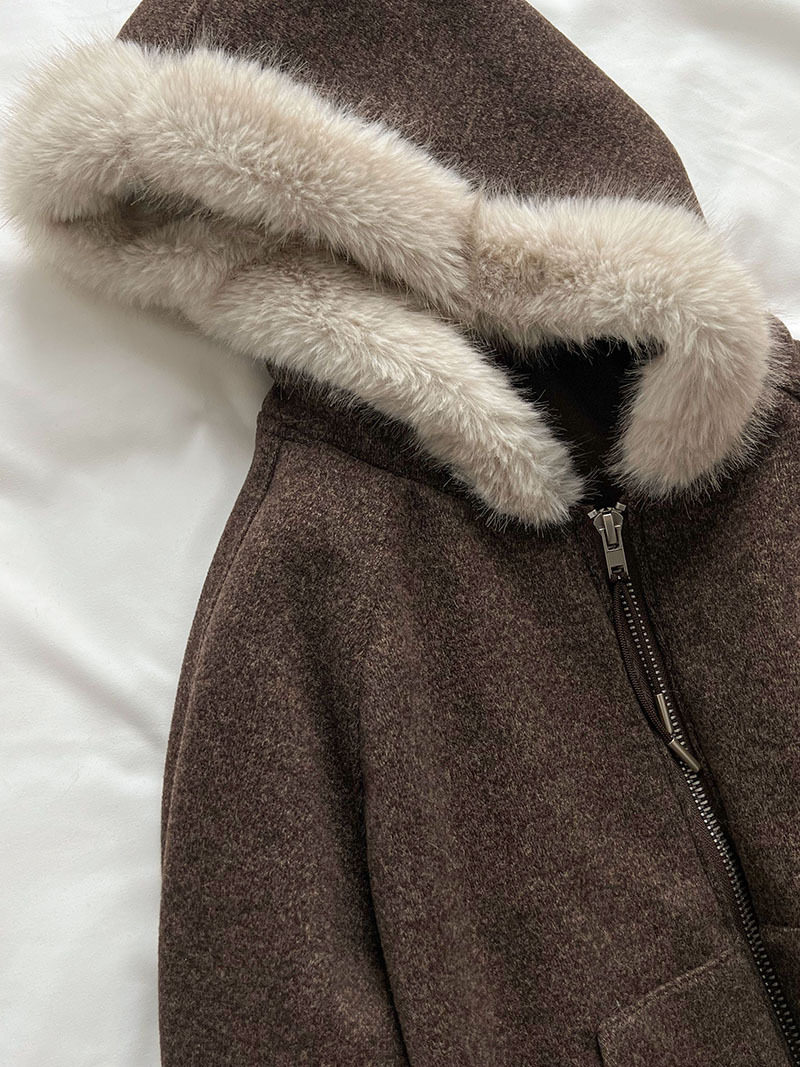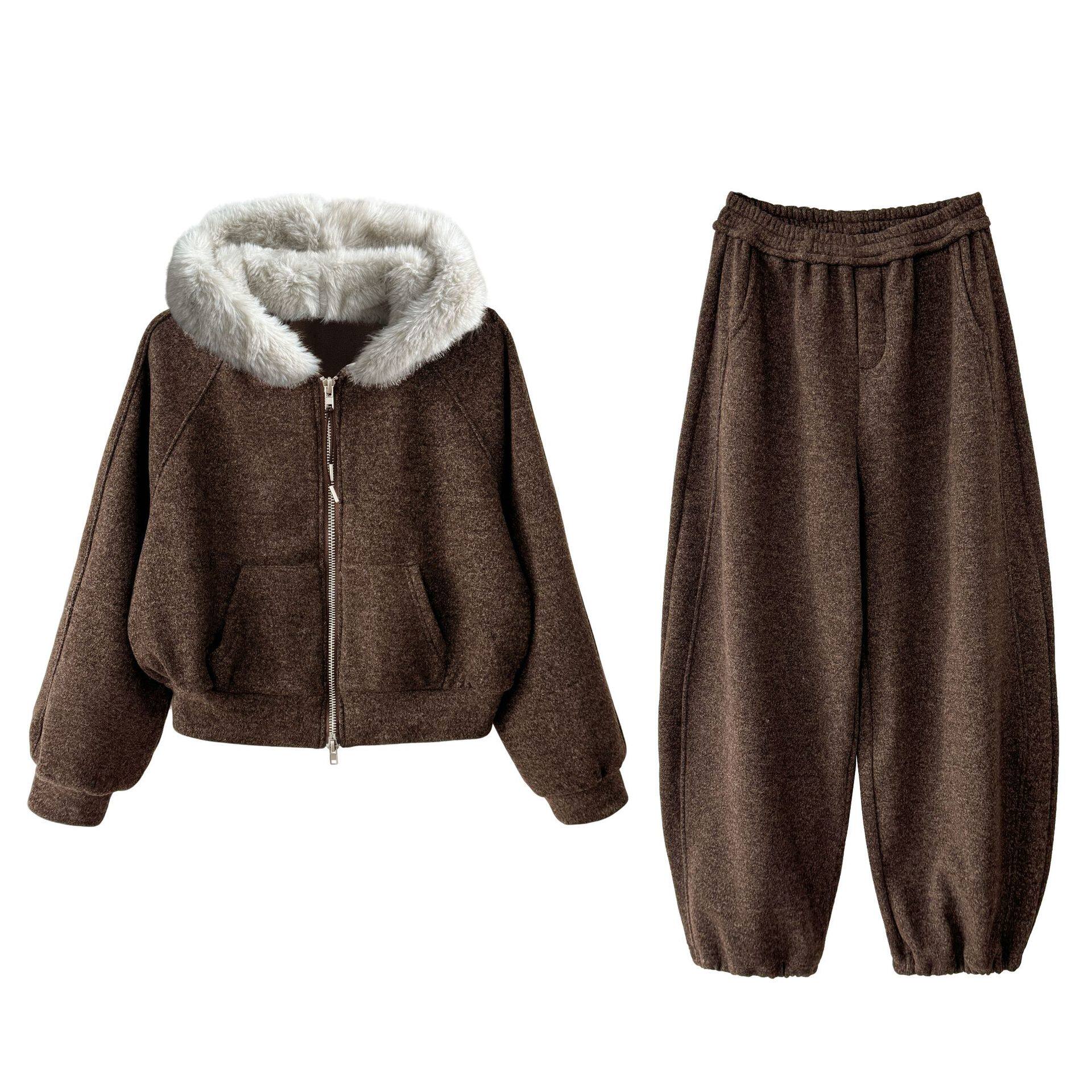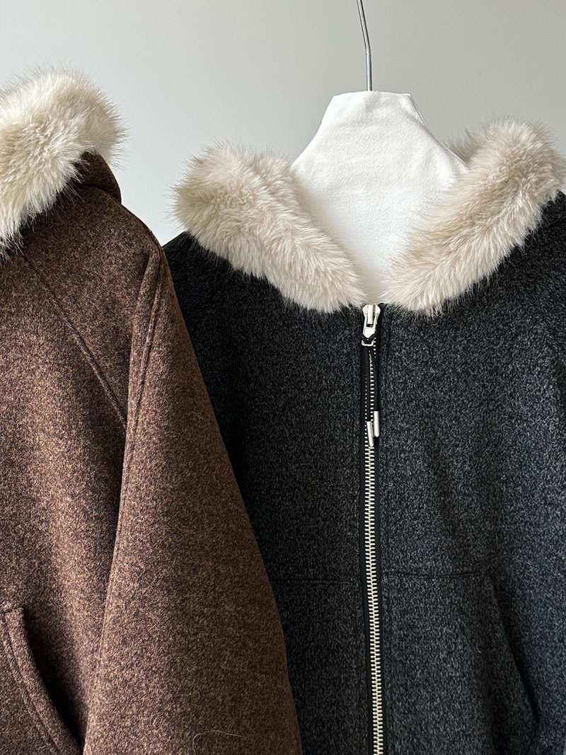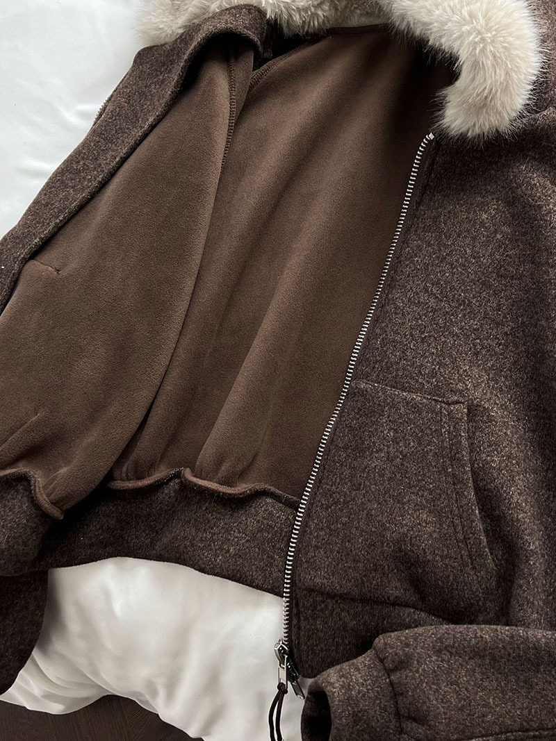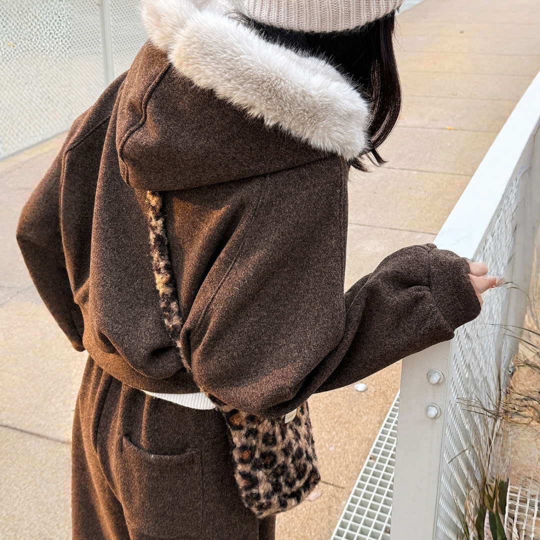 【商品名】【セットアップ】【単品注文】ファー襟 スウェットアウター + カーブ ワイドパンツ 2点上下セット 【JZシリーズ】