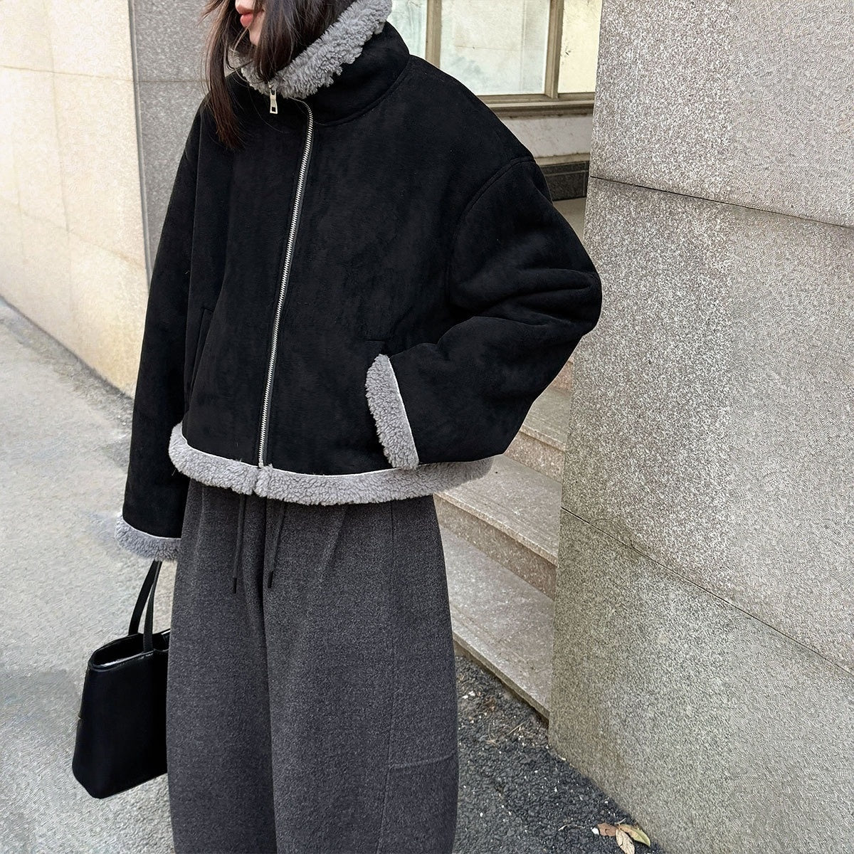 【アウター】防寒 切り替え ボア 春 秋 冬 ショート丈 ジャケット 【JZシリーズ】