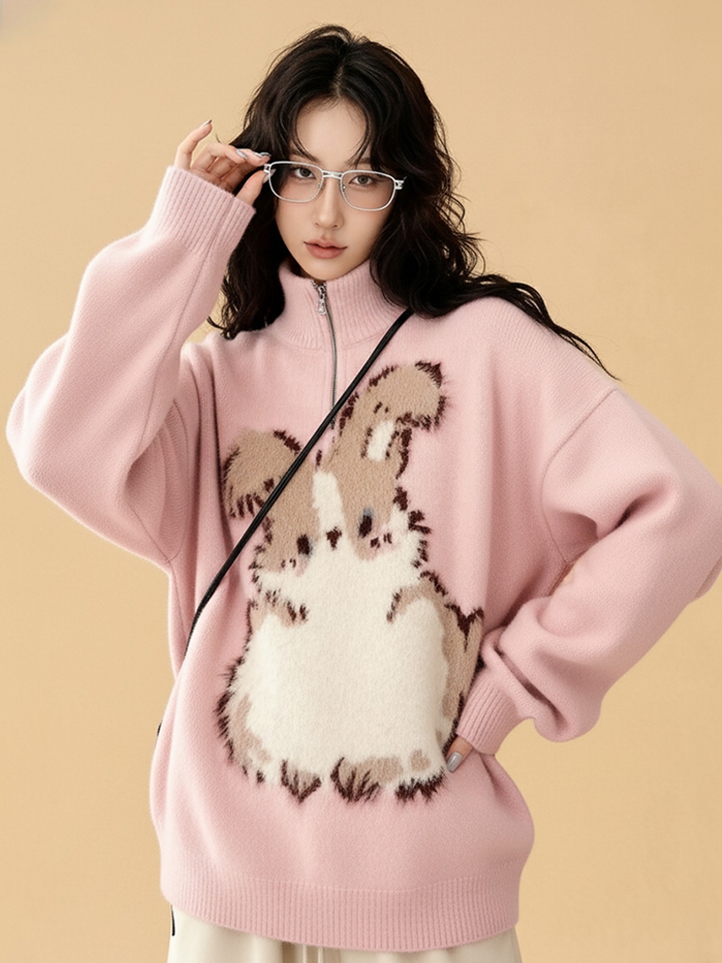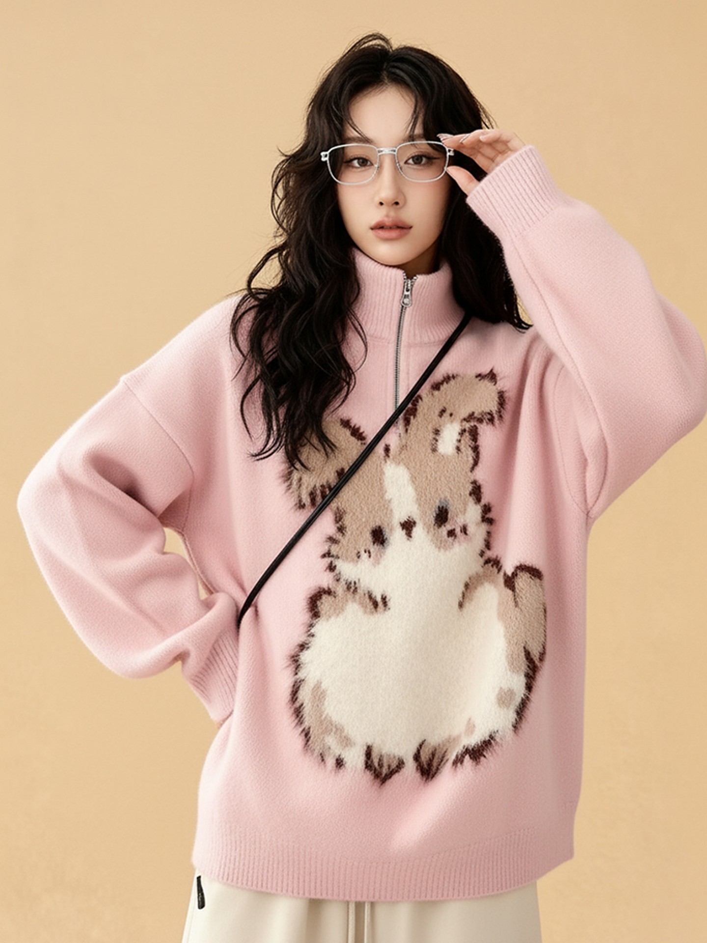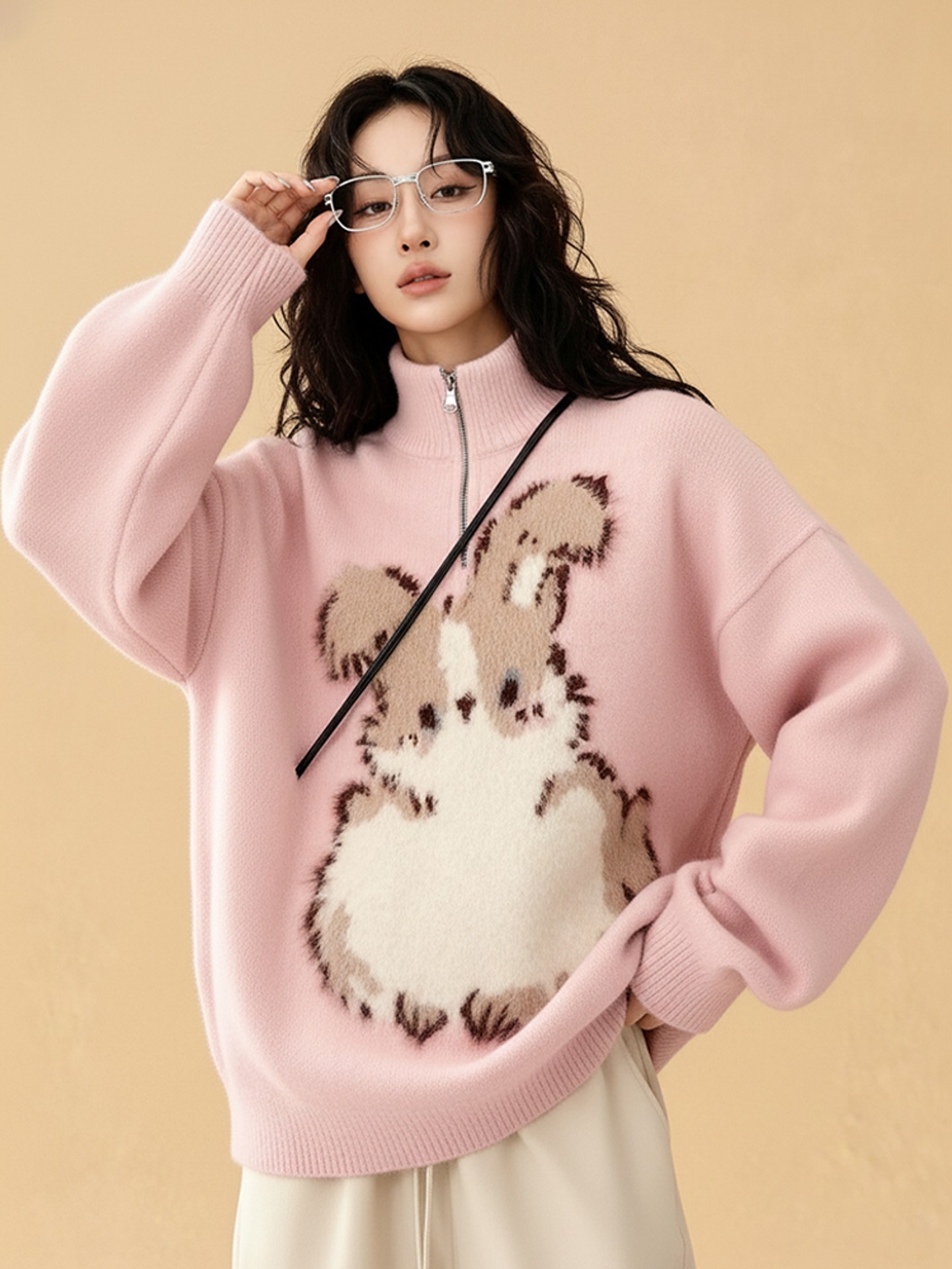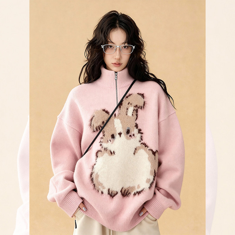【トップス】ファッション 若見え うさぎプリント 着痩せ ニットセーター【FCシリーズ】