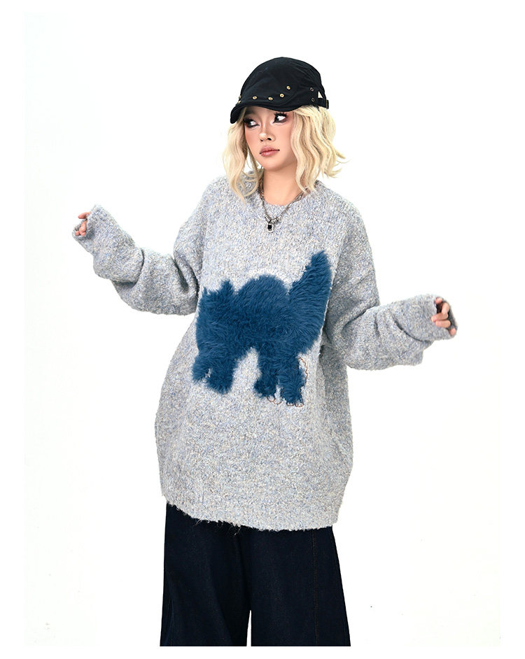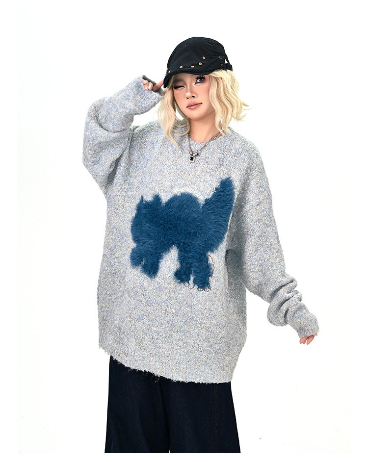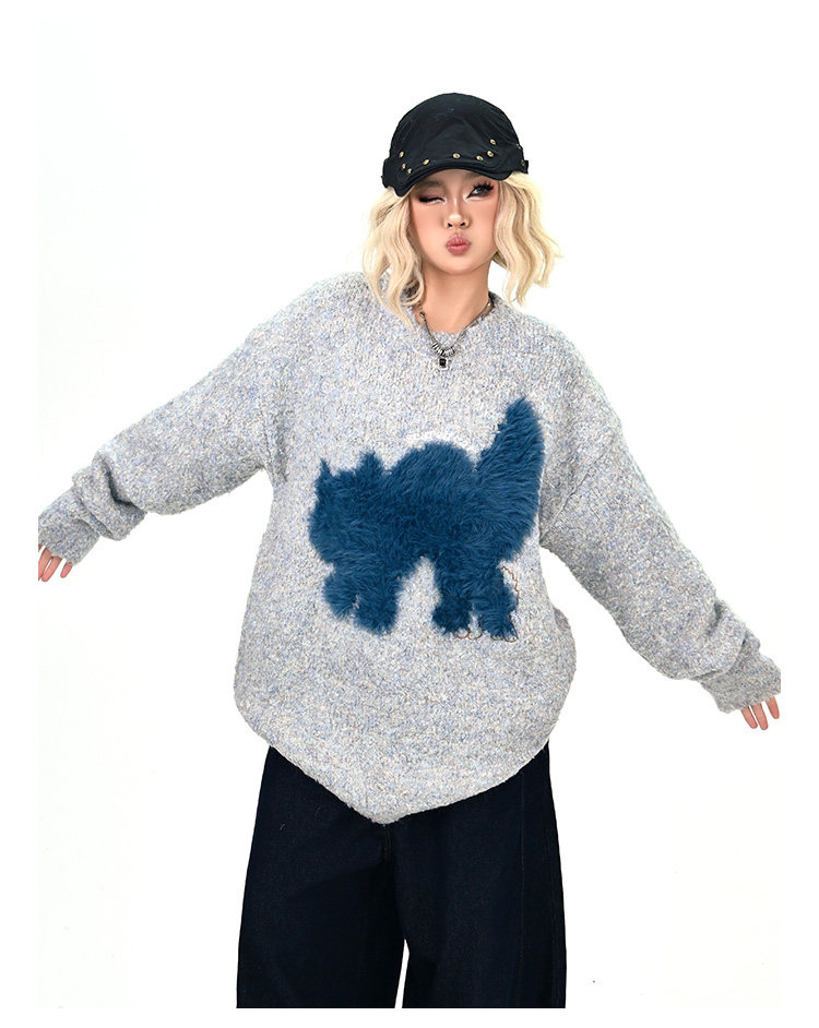 【トップス】レトロ デザイン 小犬柄 クルーネック ニット レディース ゆったり ルーズ 着回し セーター【FCシリーズ】