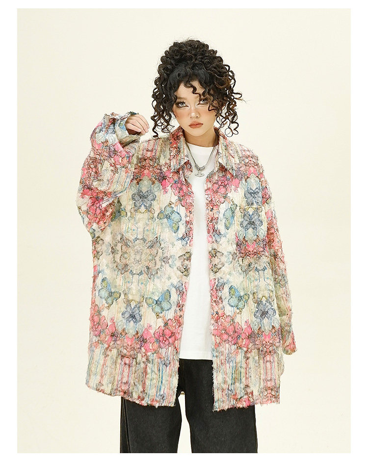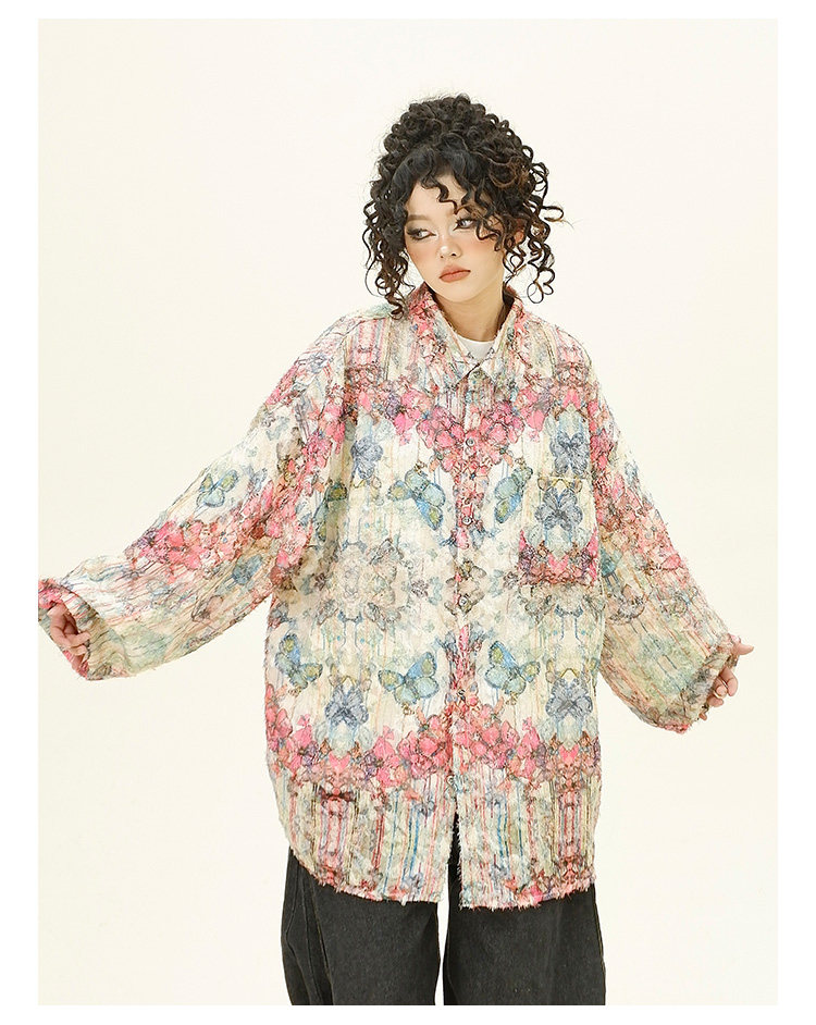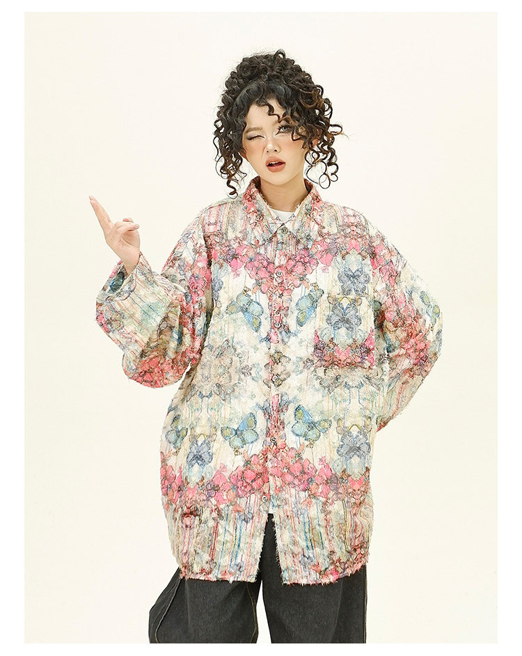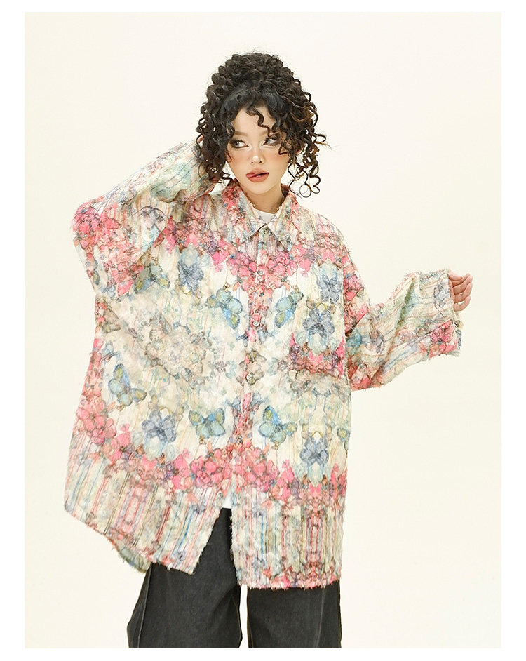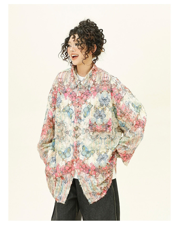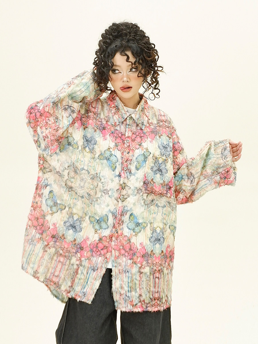 【商品名】【トップス】起毛素材 バタフライ 長袖 シャツ 【FCシリーズ】