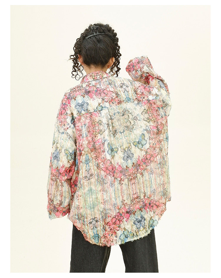 🔥冬の必須アウター🔥【アウター】秋冬 アメリカン カップル服 ルース レトロ 刺繍 フード付き コットン ジャケット【FCシリーズ】