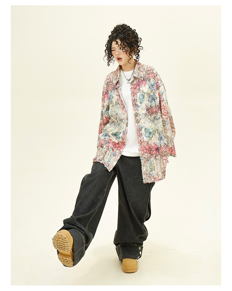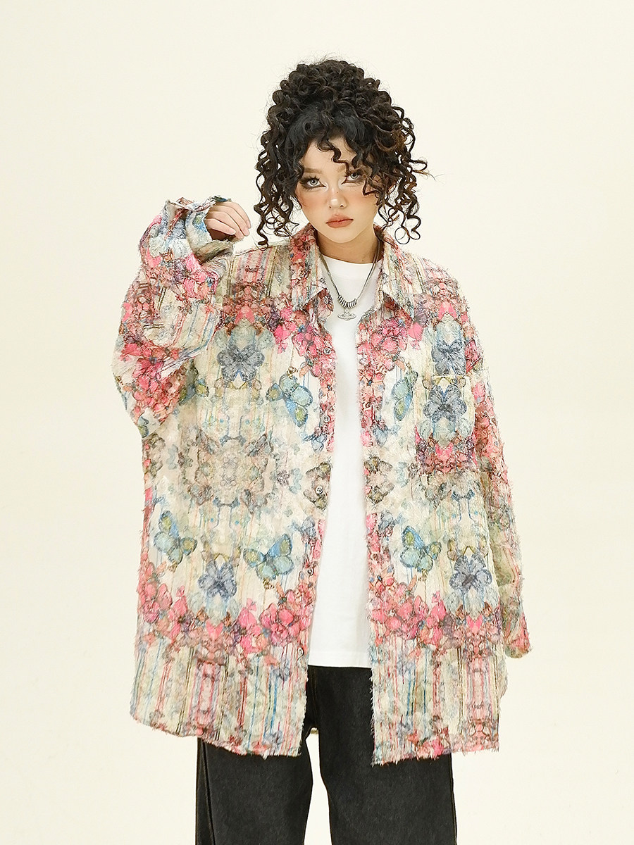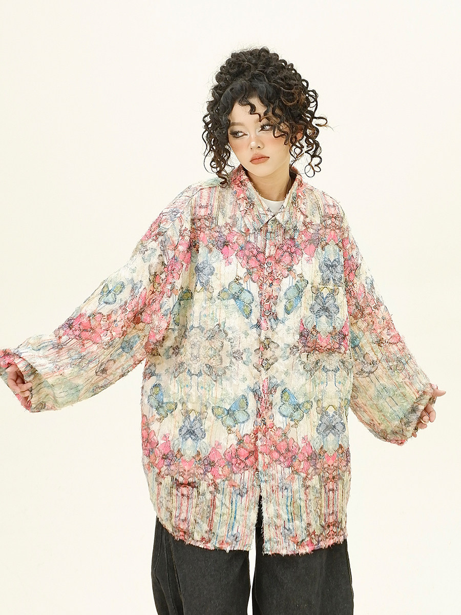 【トップス】起毛素材 バタフライ 長袖 シャツ 【FCシリーズ】