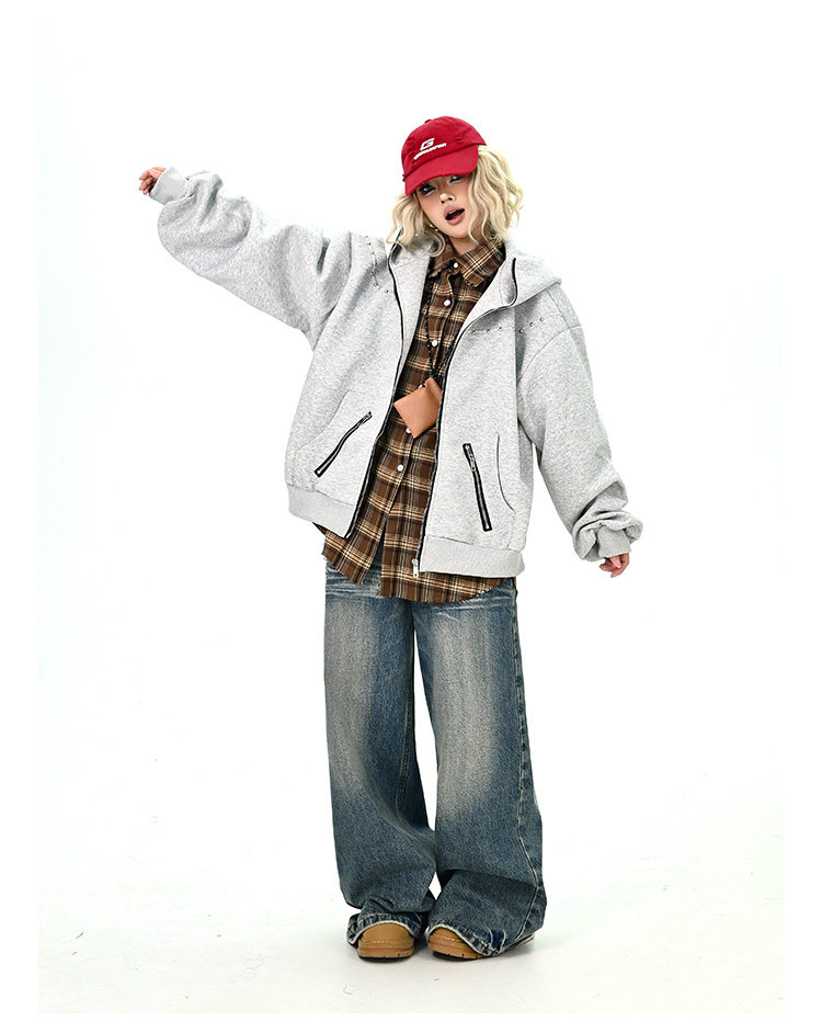 【トップス】春秋冬 Oversize レトロ 刺繍 ゆったり フード付き デニム パーカー【FCシリーズ】【15~20日発送】