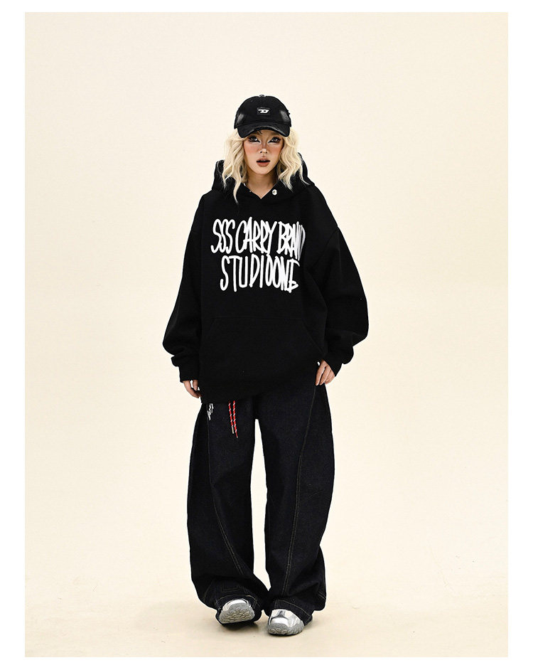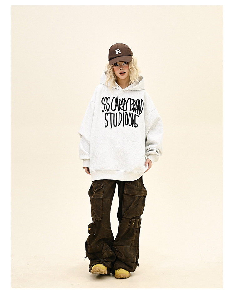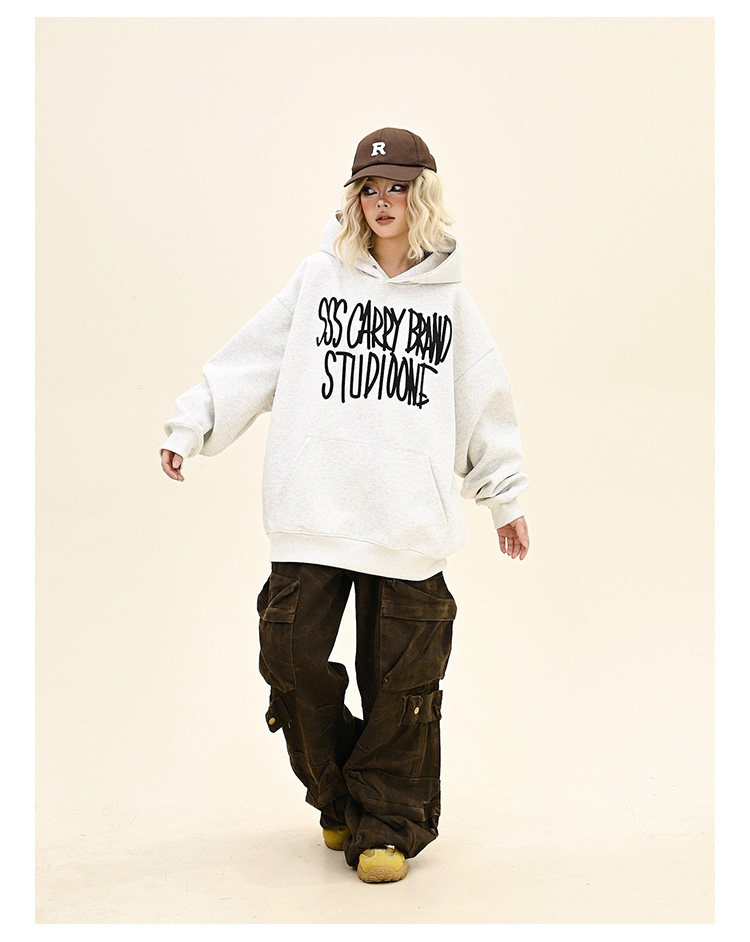 【トップス】秋冬 oversize ゆったり 厚い保温 フード付き パーカー【FCシリーズ】【15~20日発送】