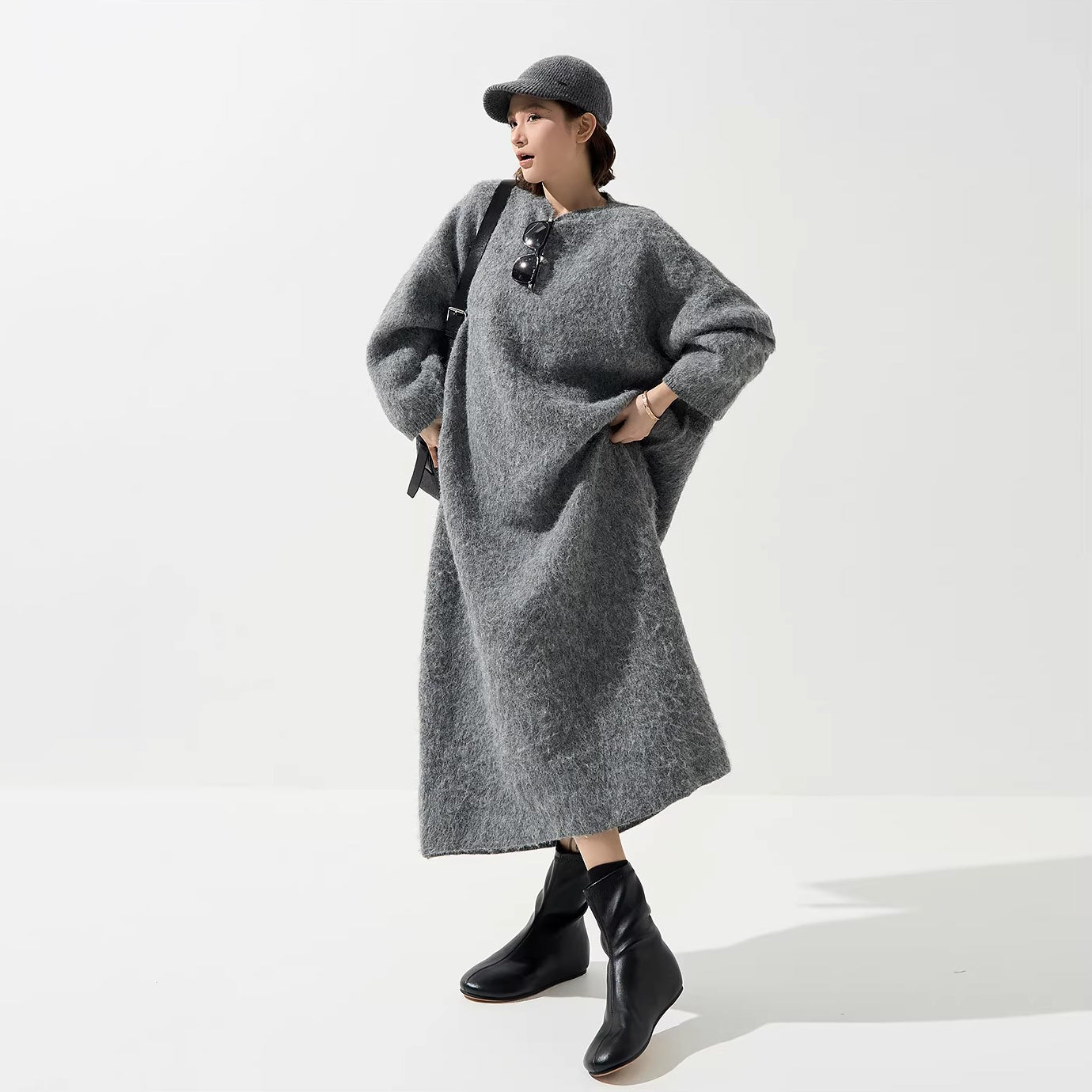1/30~2/1⭐️期間限定60%OFF !【ワンピース】ウール クルーネック ニット長袖ワンピース レディース 秋 韓国風 上品 ゆったり ルーズ ロング丈【JZシリーズ】