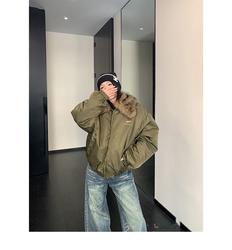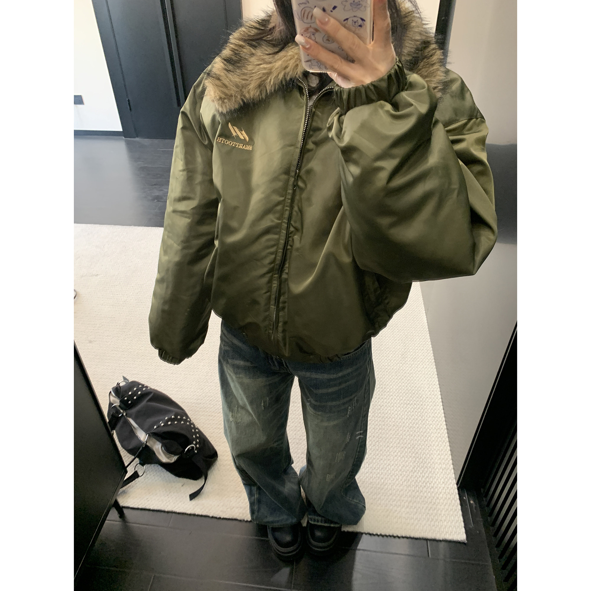 🔥冬の必須アウター🔥【アウター】秋冬 アメリカン カップル服 ルース レトロ 刺繍 フード付き コットン ジャケット【FCシリーズ】