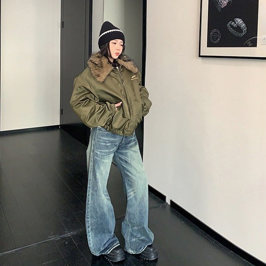 【アウター】ファー襟 厚手ショート丈 中綿ジャケット 【FCシリーズ】