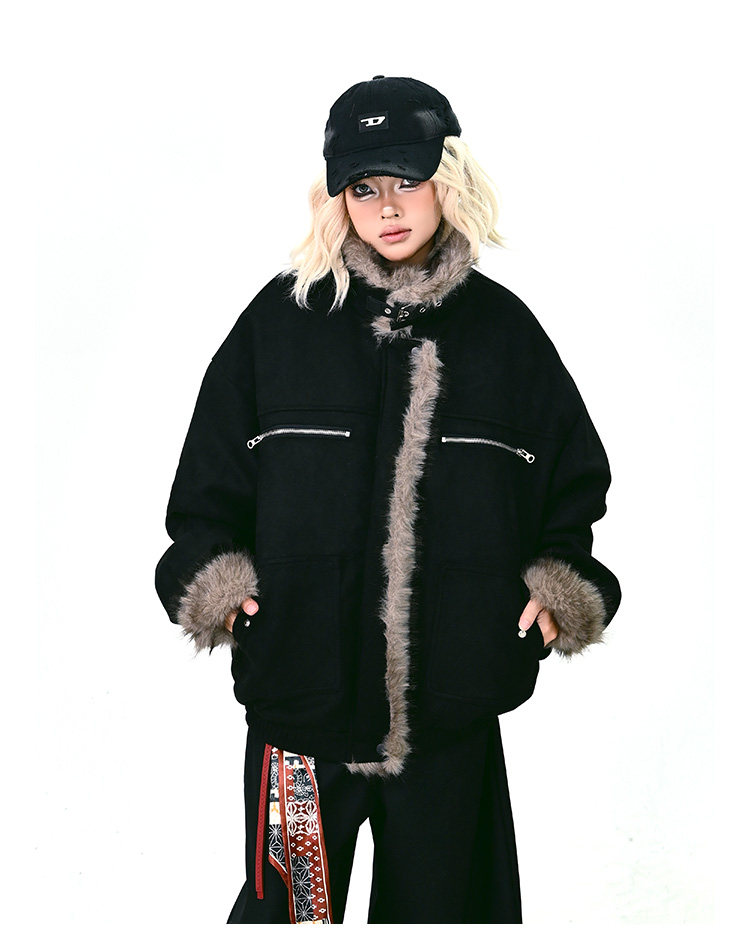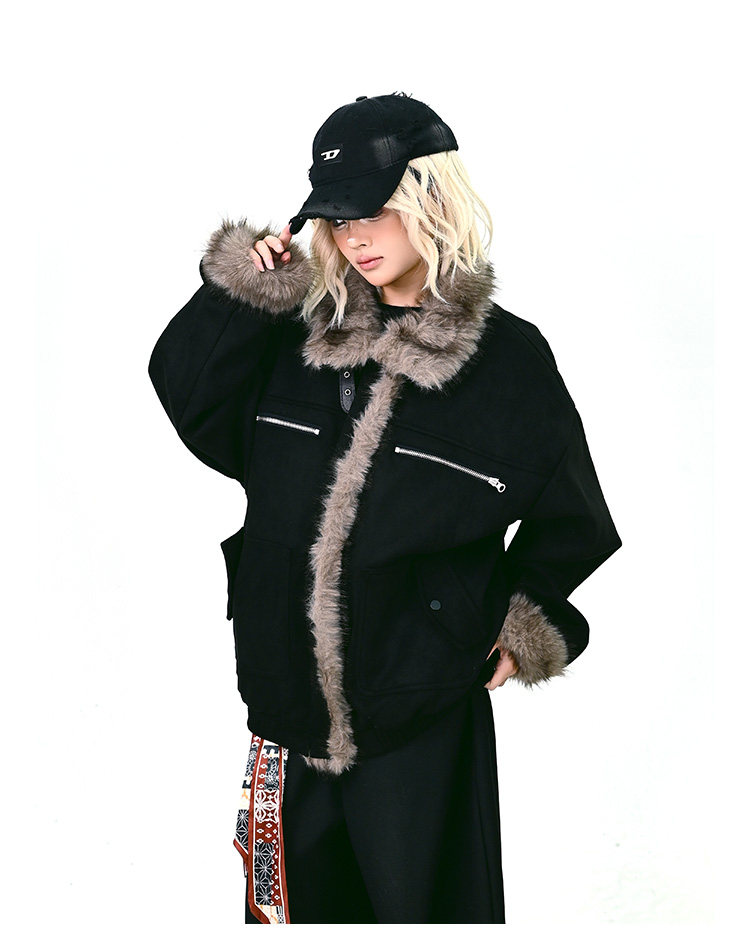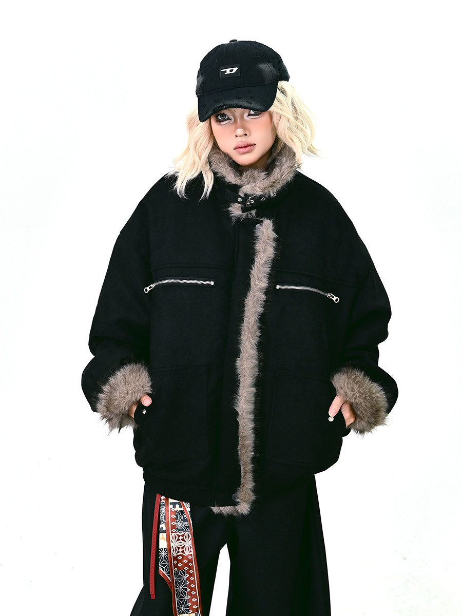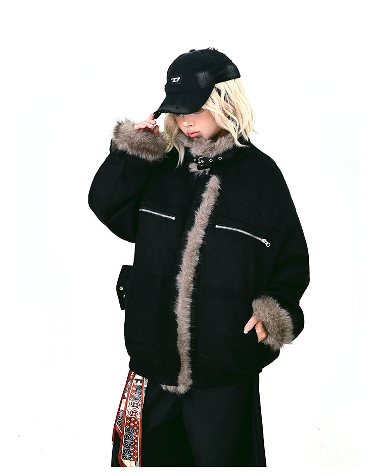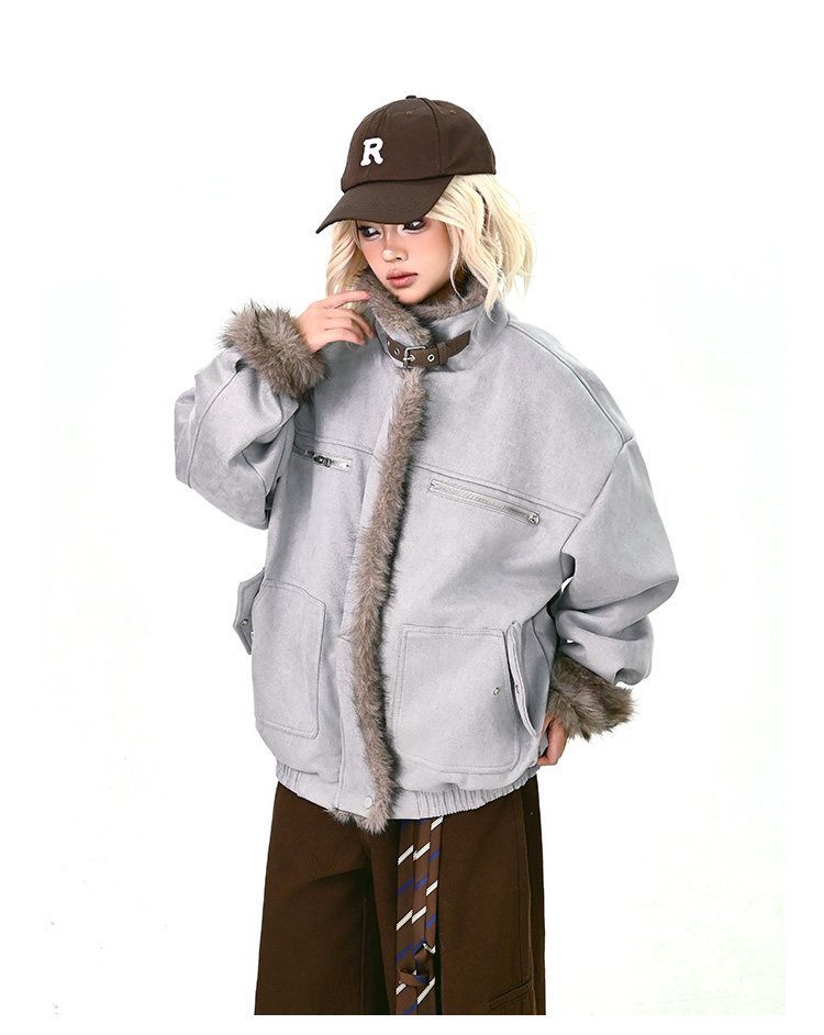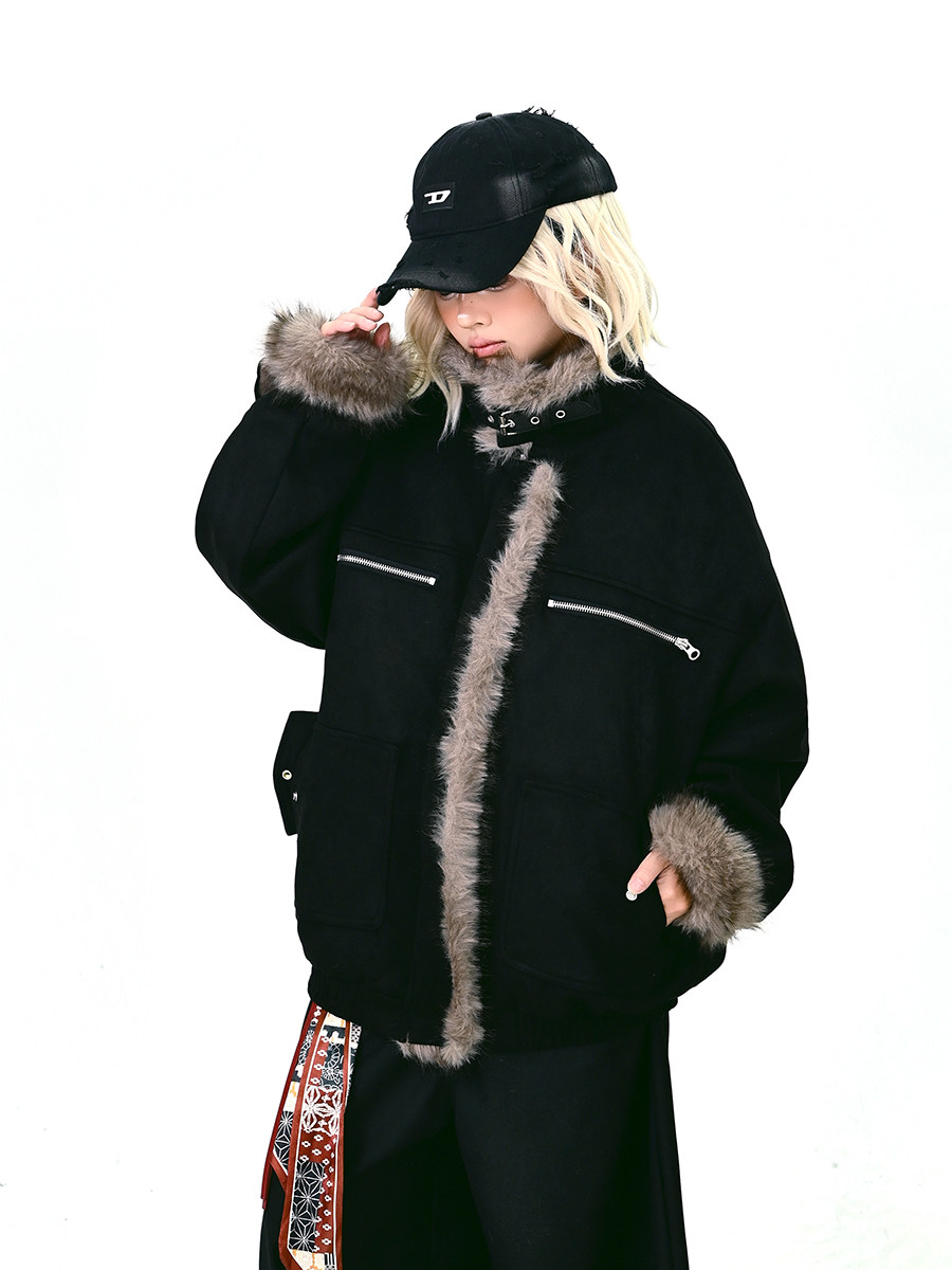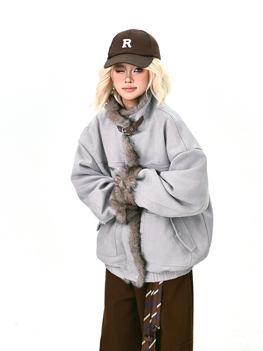 【アウター】ボア レザーバックル アメリカン レトロ 中綿ジャケット 【FCシリーズ】