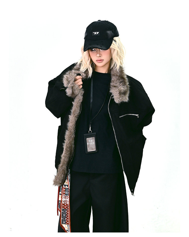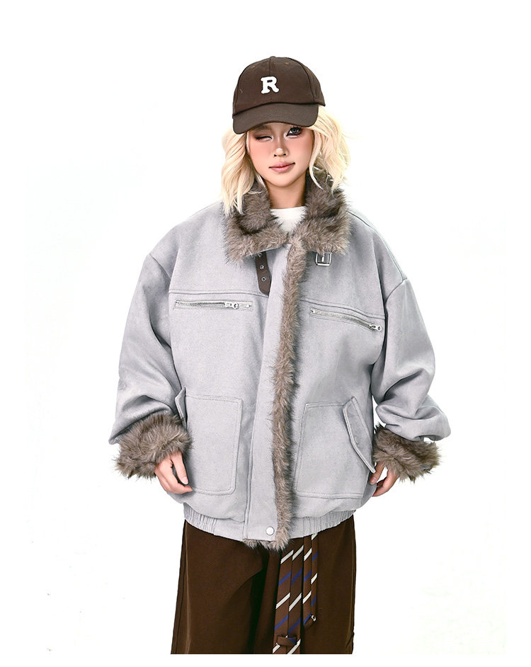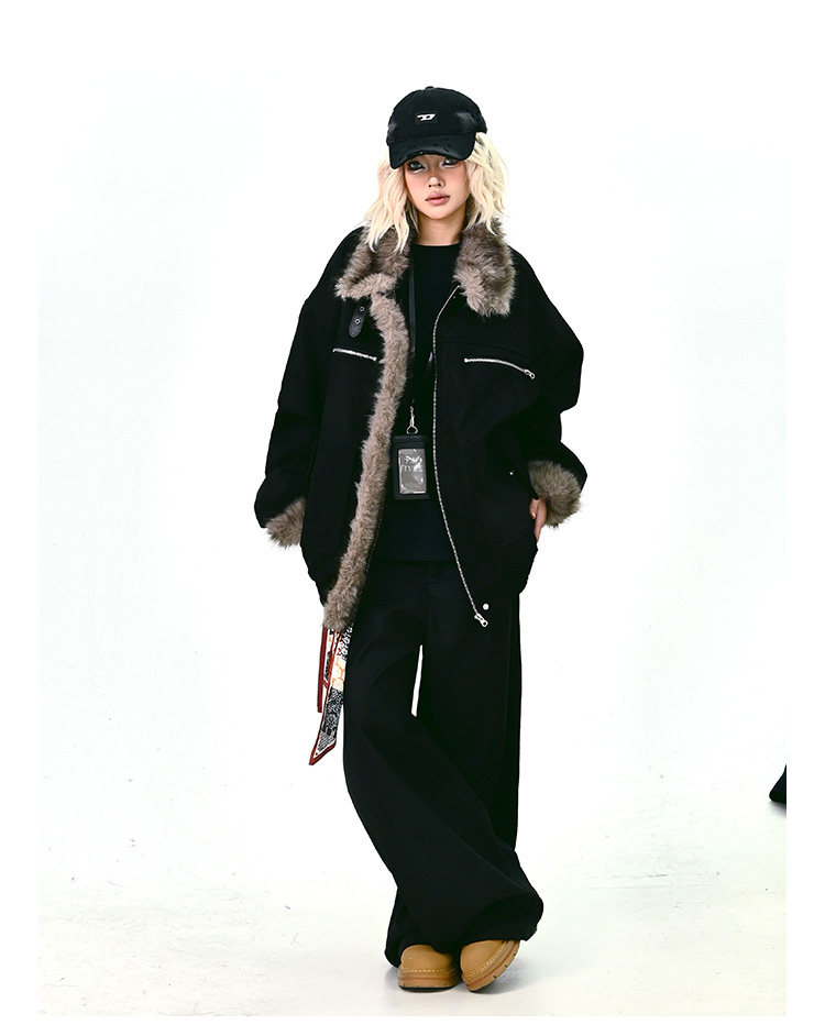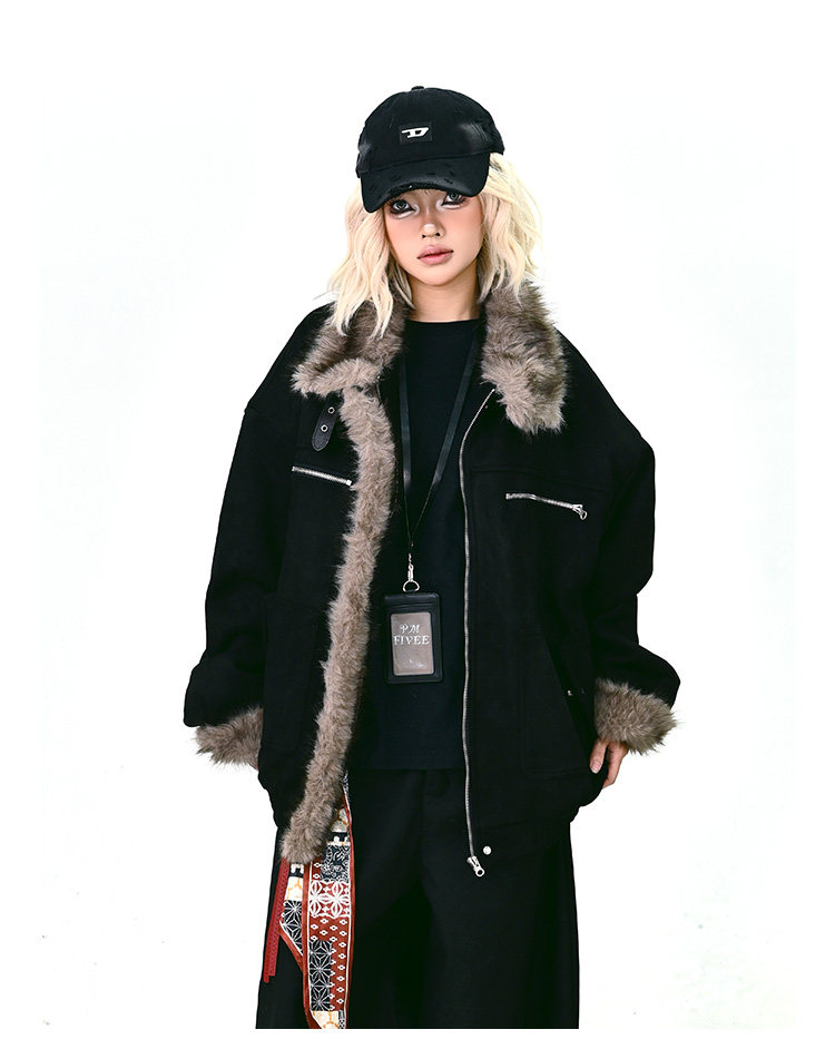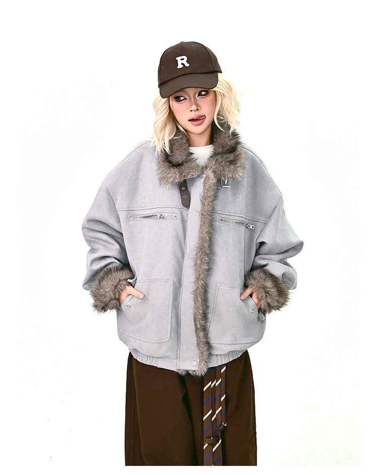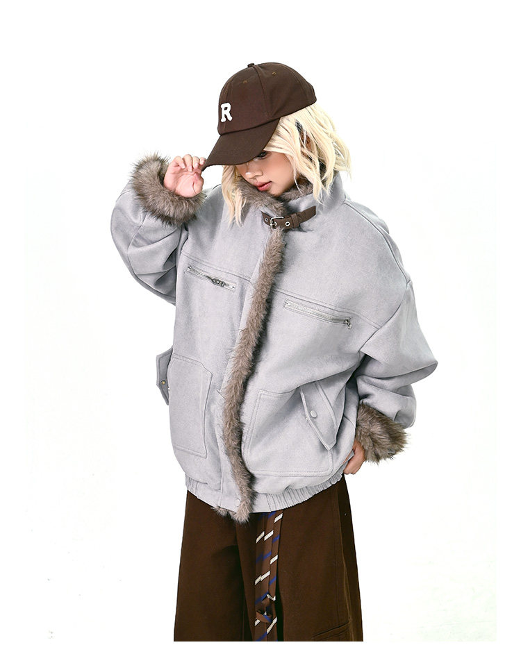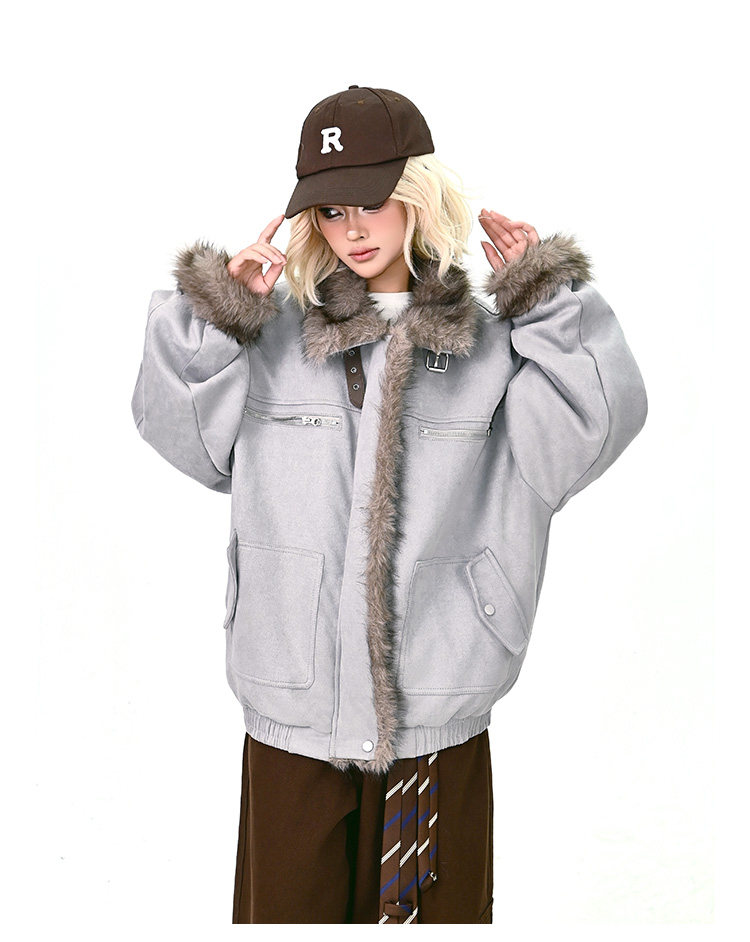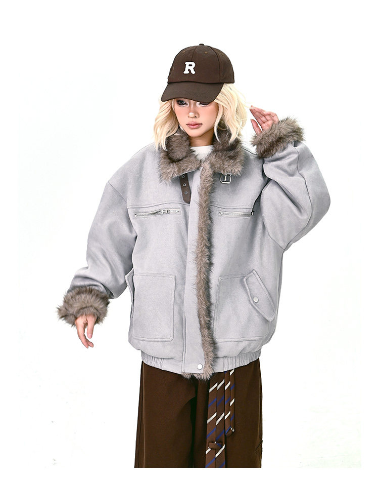 【商品名】【アウター】ボア レザーバックル アメリカン レトロ 中綿ジャケット 【FCシリーズ】