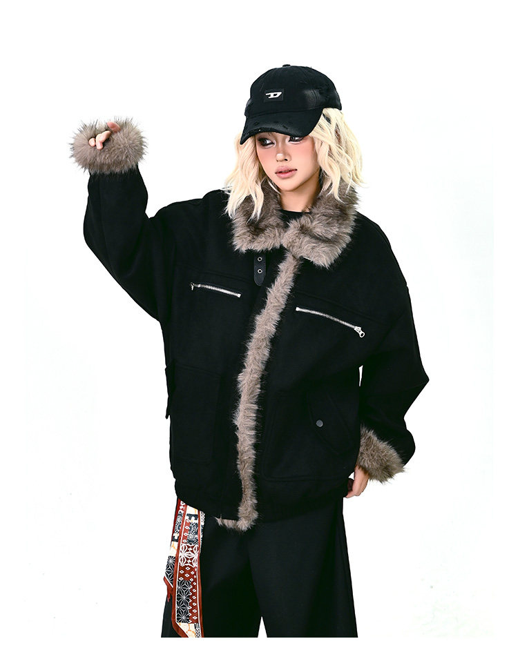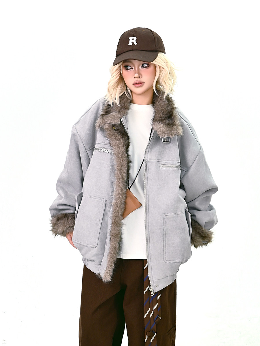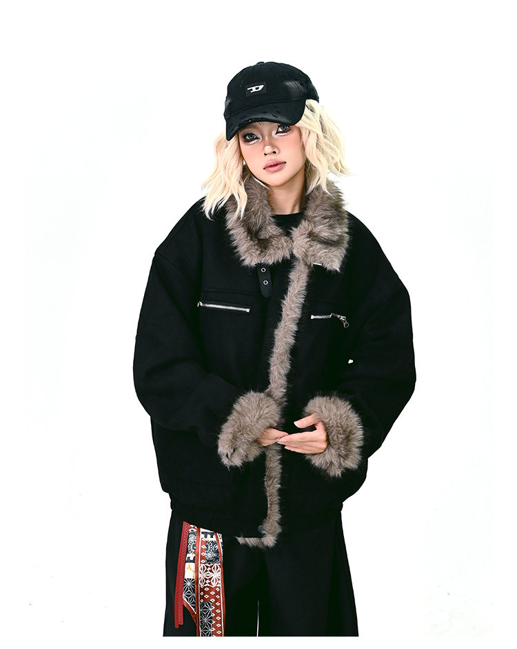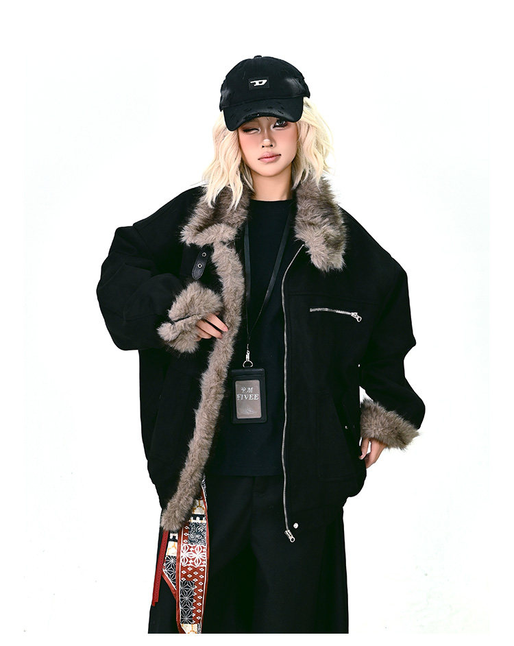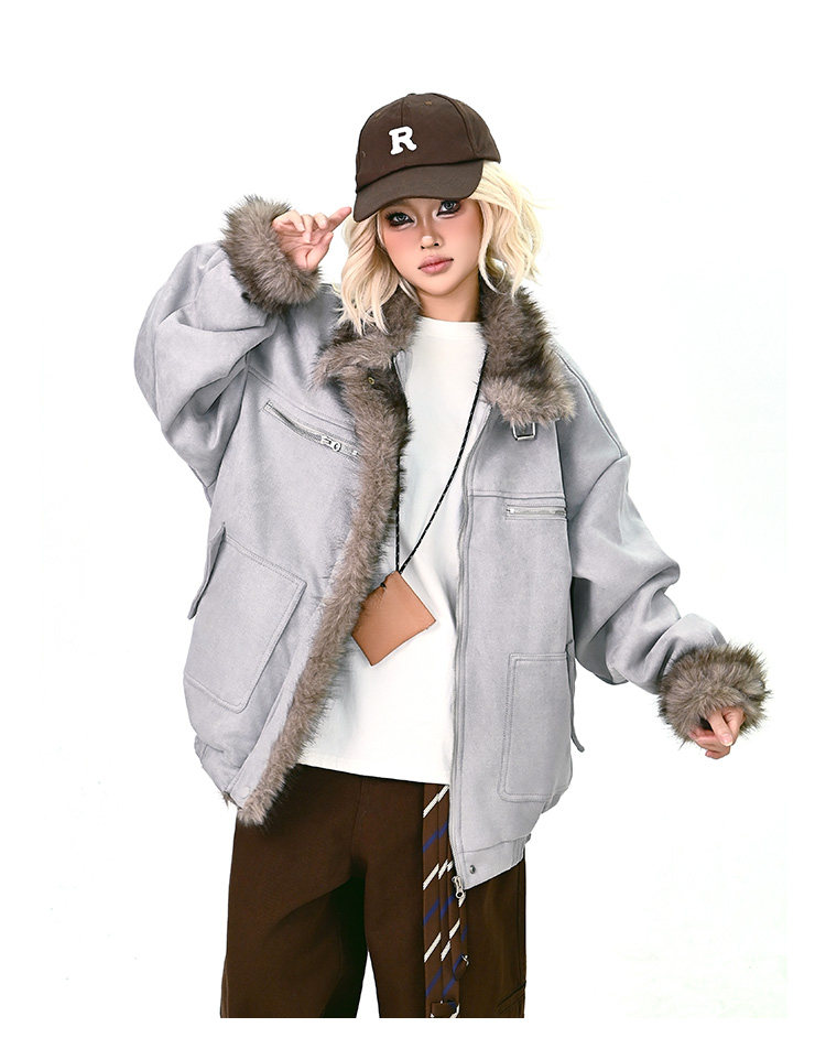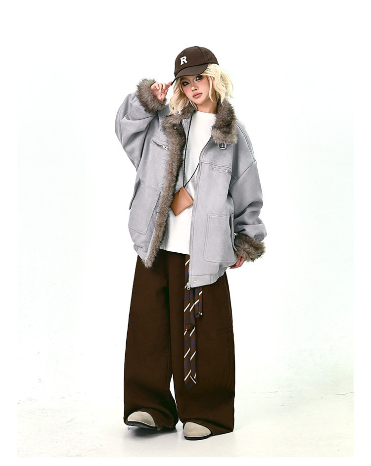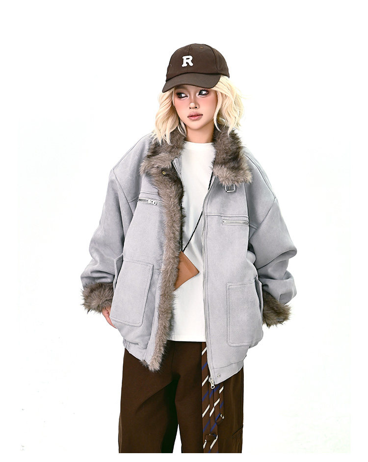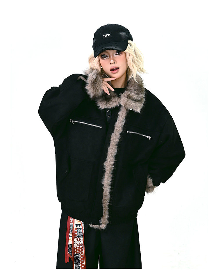 【商品名】【アウター】ボア レザーバックル アメリカン レトロ 中綿ジャケット 【FCシリーズ】