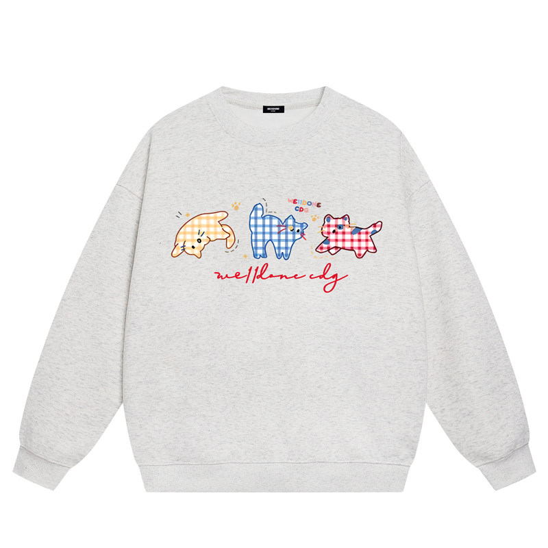 【トップス】ラウンドネック ねこ 裏起毛 プリント パーカー 【FCシリーズ】
