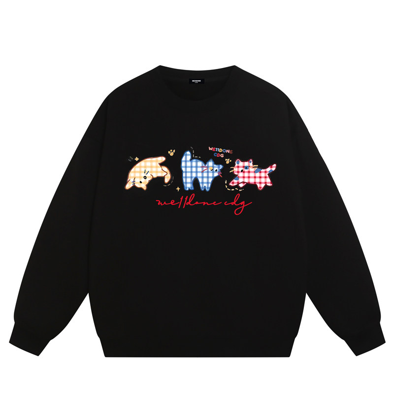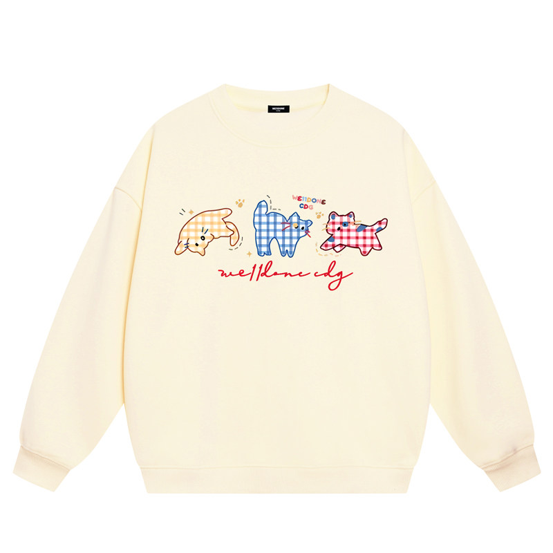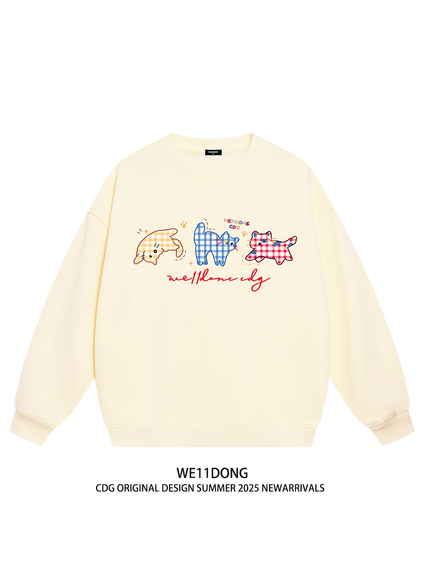 【商品名】【トップス】ラウンドネック ねこ 裏起毛 プリント パーカー 【FCシリーズ】