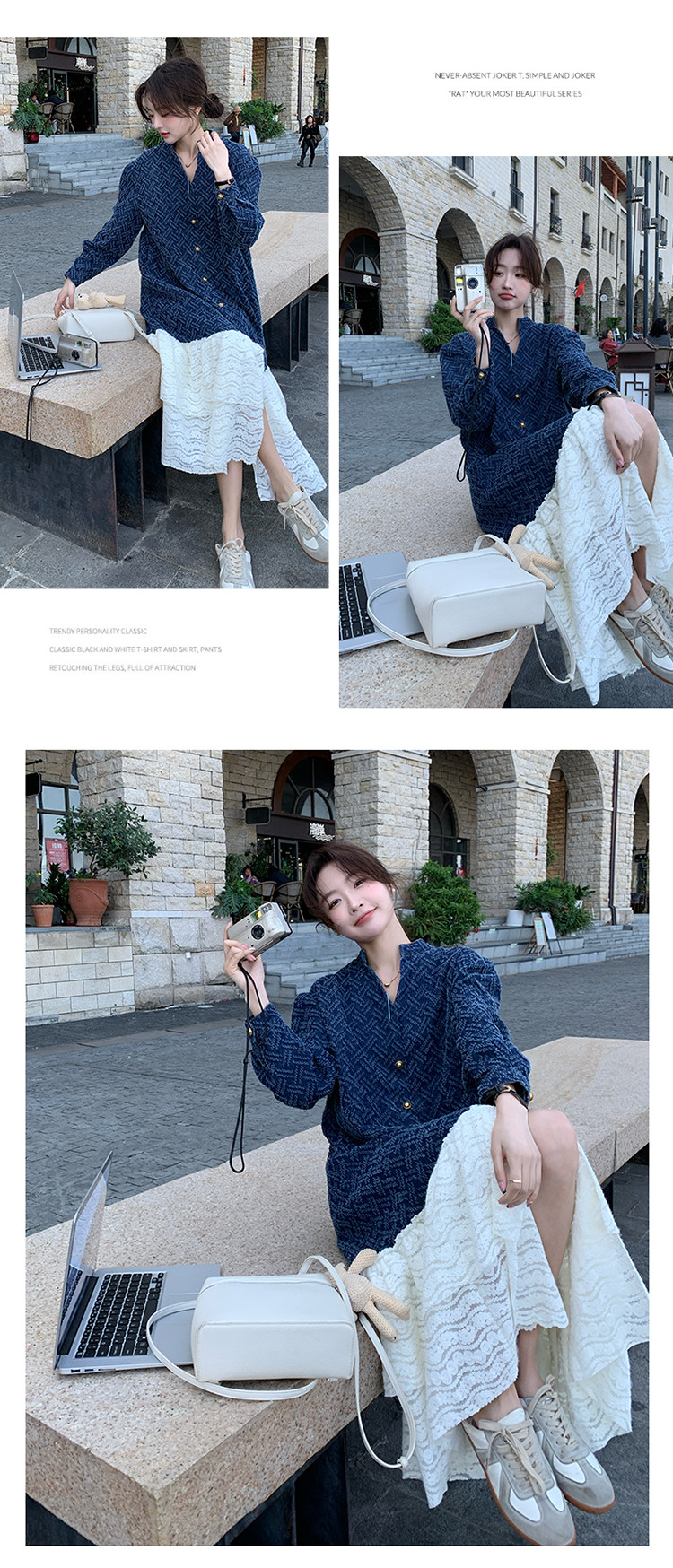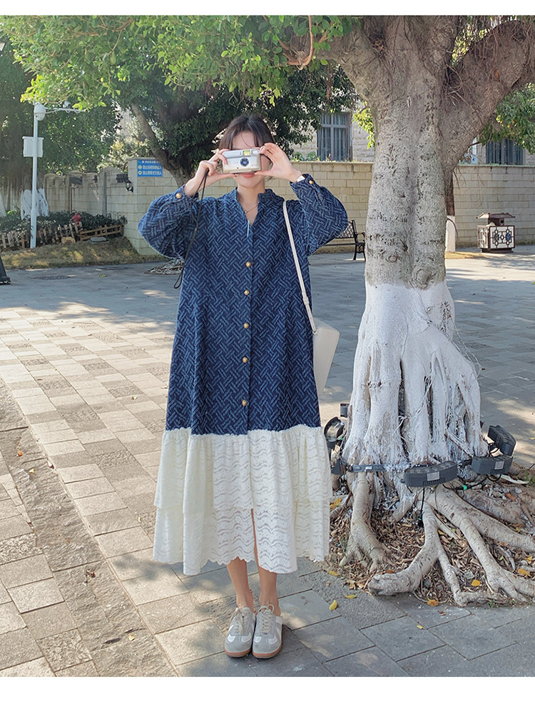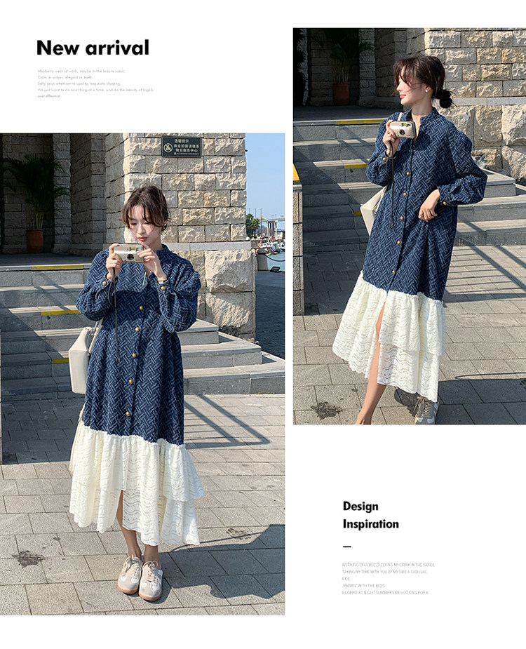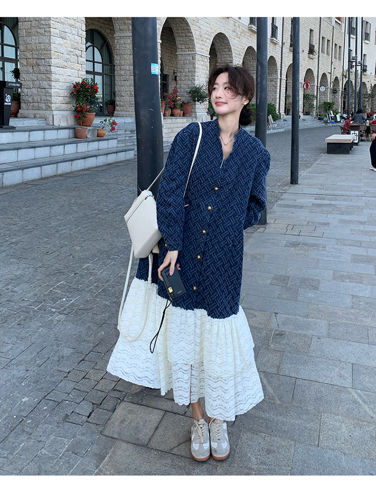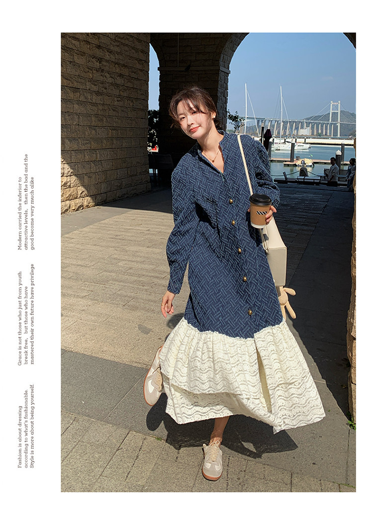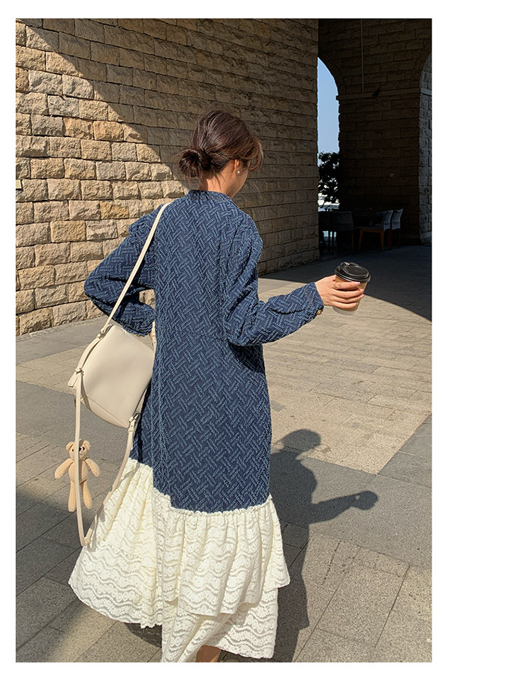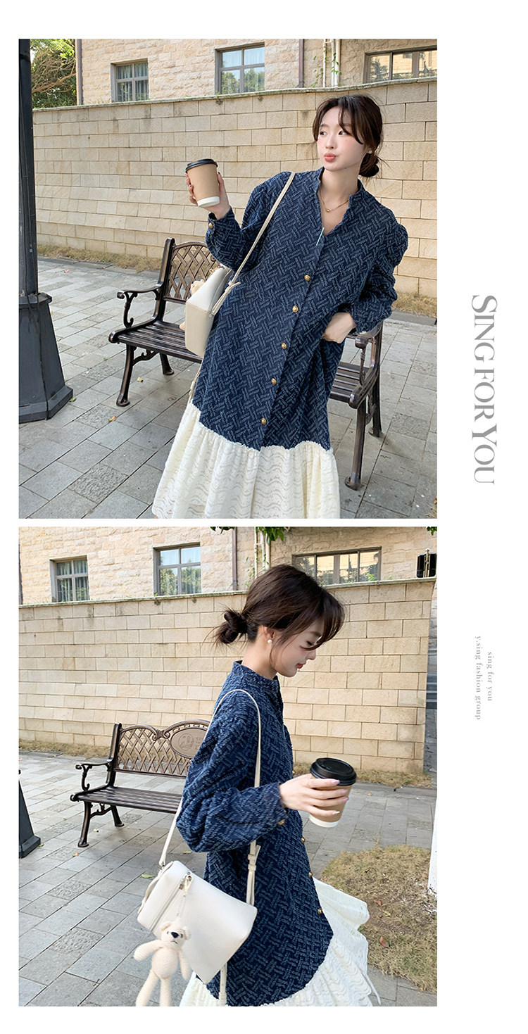【商品名】【ワンピース】シャネル風 切り替えし レース 合わせやすい 長袖ワンピース【JZシリーズ】