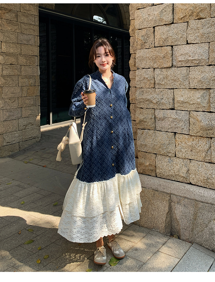 【60%OFF⭐️早い者勝ち】【ワンピース】春秋ラウンドネック 長袖 ニット パッチワーク ロング 長袖ワンピース