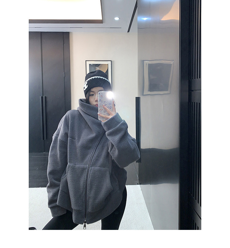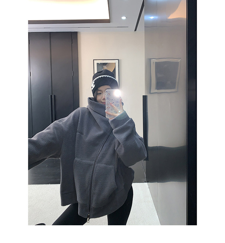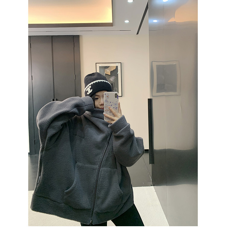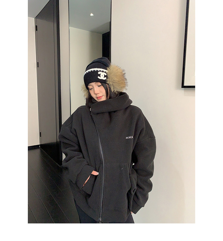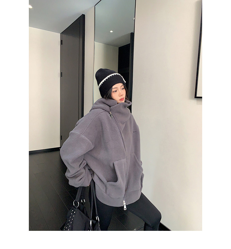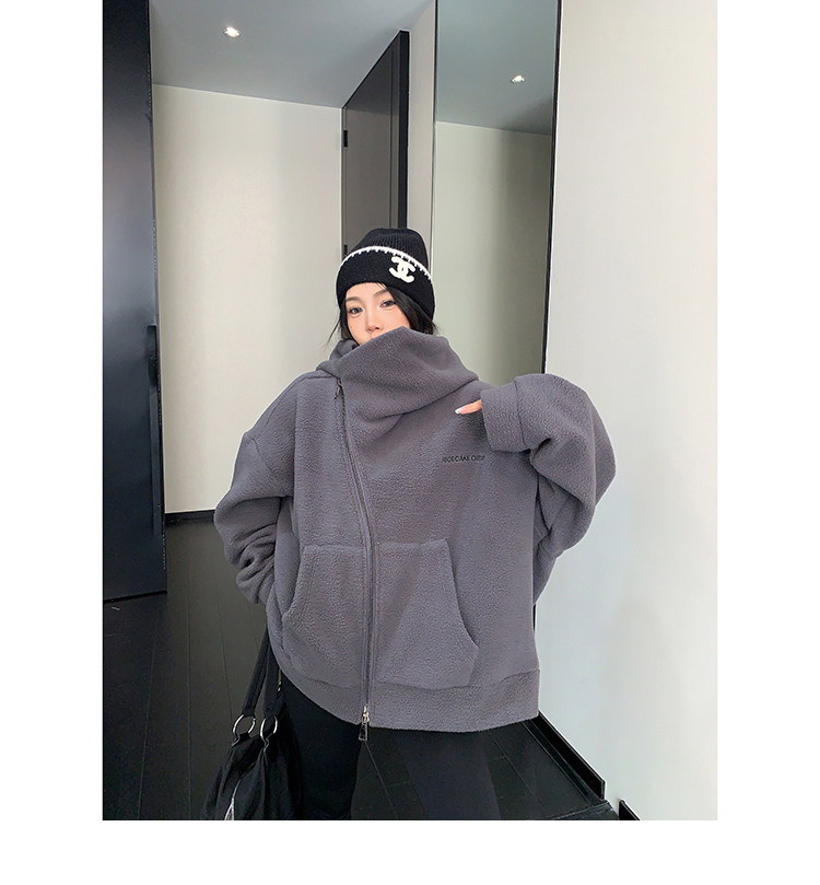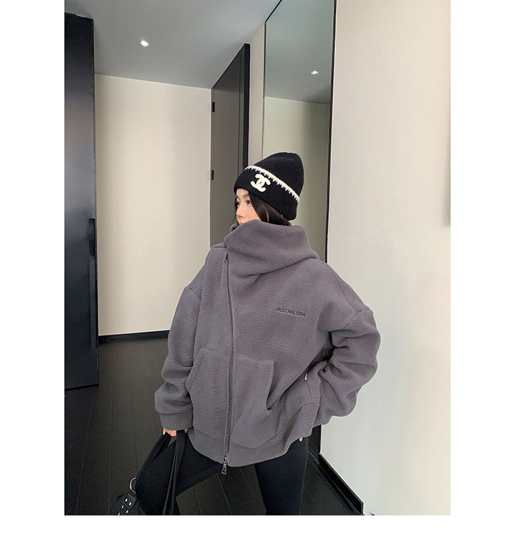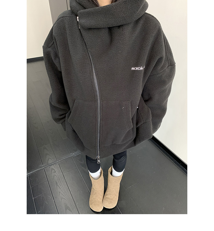 【商品名】【アウター】フリース 斜めファスナー レトロ シルエット フード付き ジャケット 【FCシリーズ】