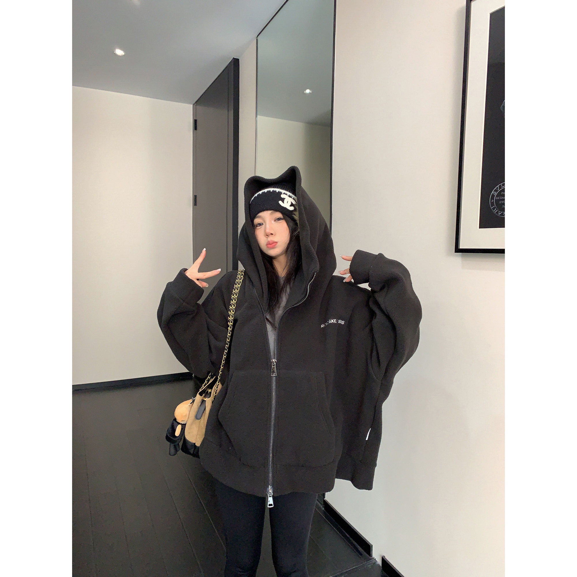【トップス】秋冬 oversize ゆったり 厚い保温 フード付き パーカー【FCシリーズ】【15~20日発送】