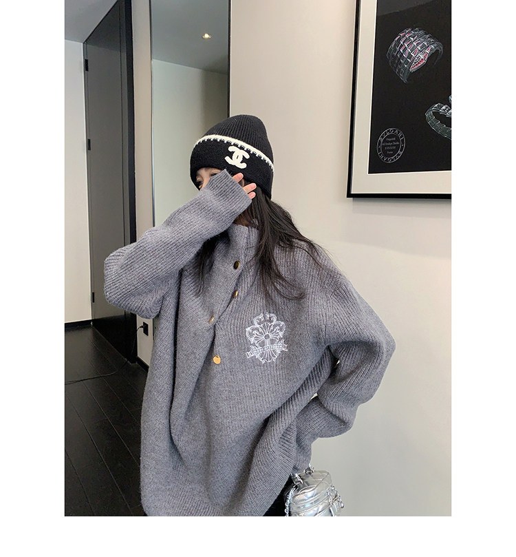 【トップス】レトロ デザイン 小犬柄 クルーネック ニット レディース ゆったり ルーズ 着回し セーター【FCシリーズ】