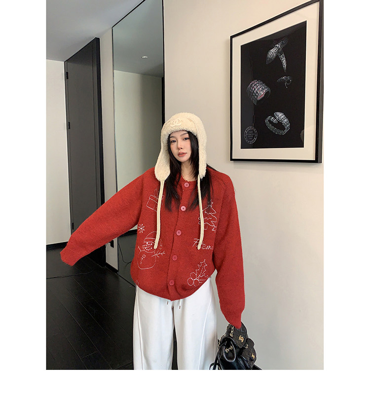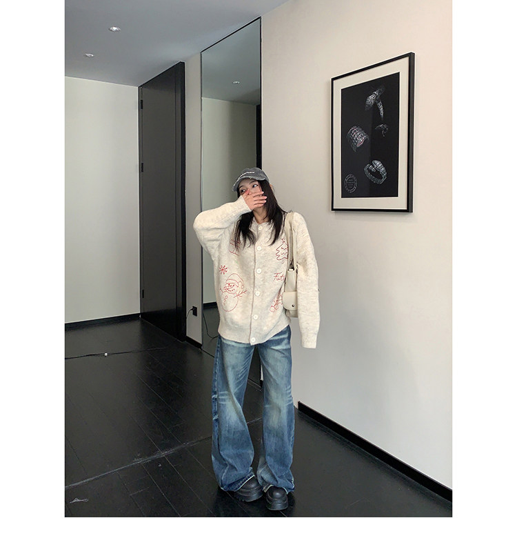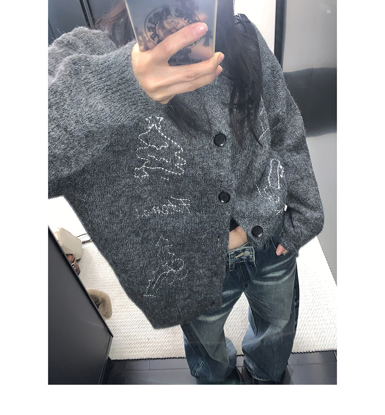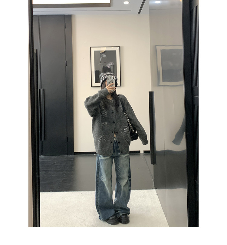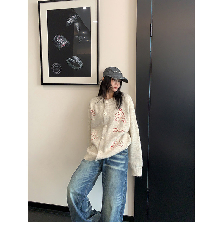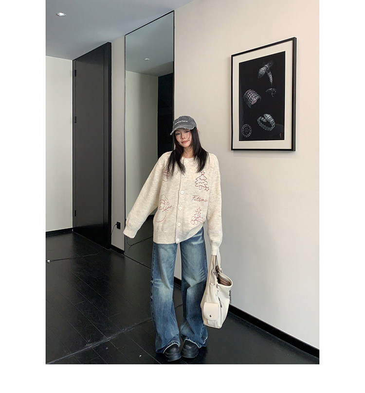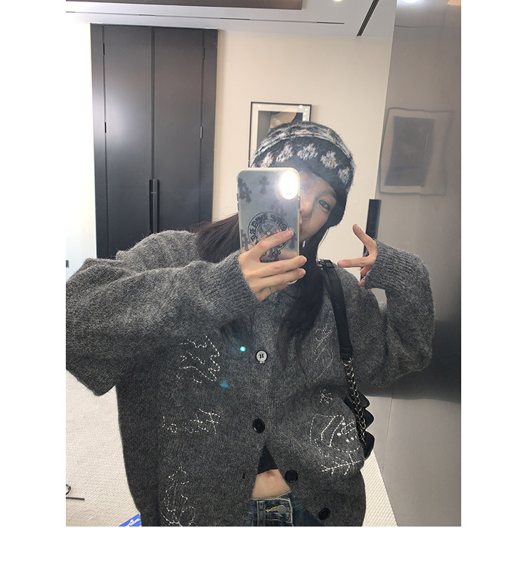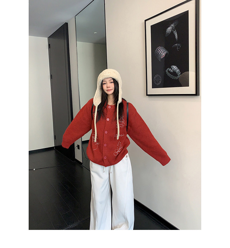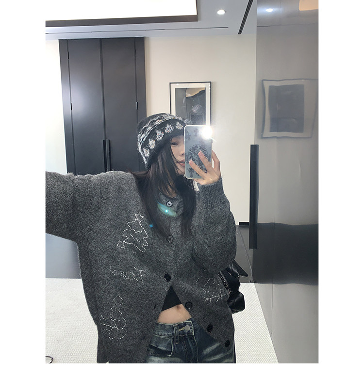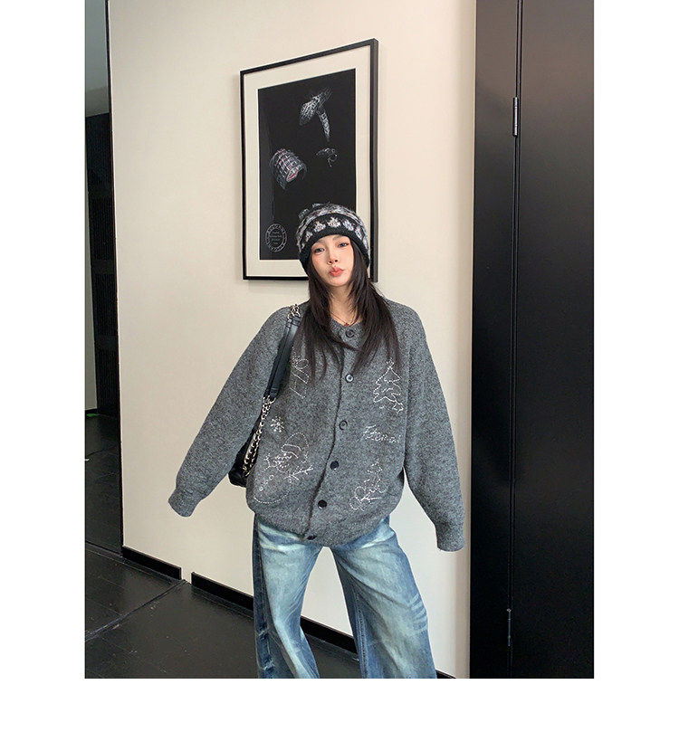 【アウター】レトロ 刺繍 厚手 ラウンドネック カーディガン ニットセーター【FCシリーズ】