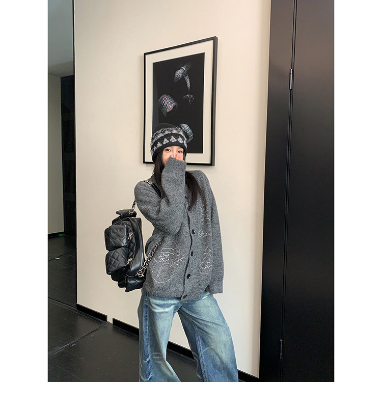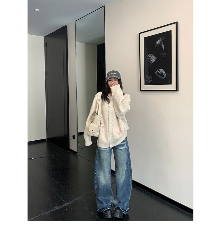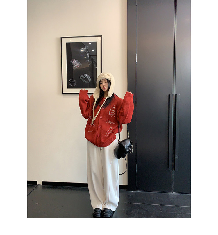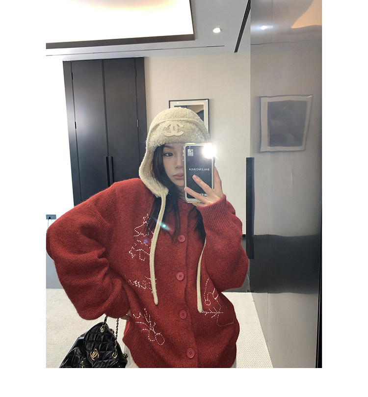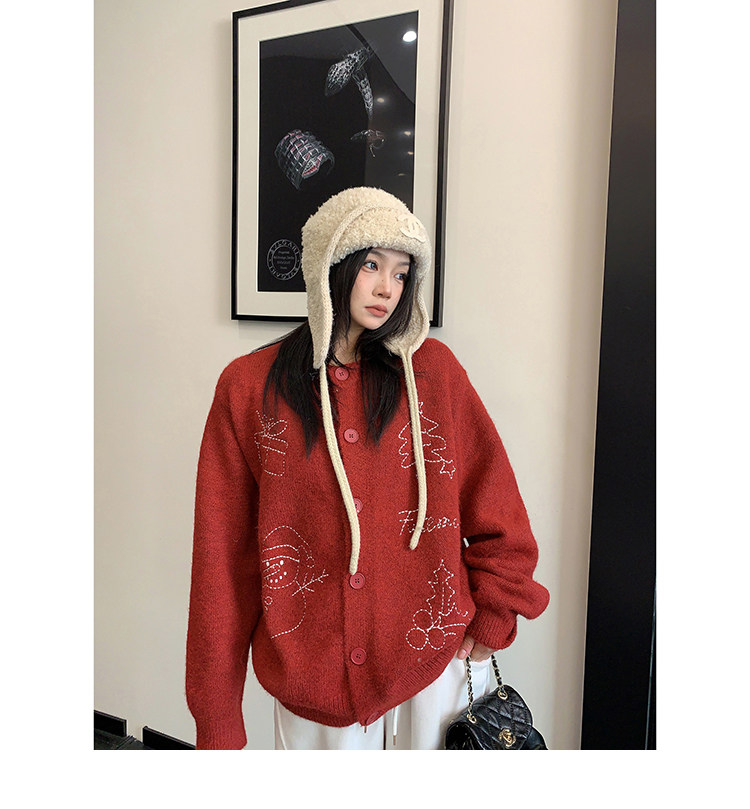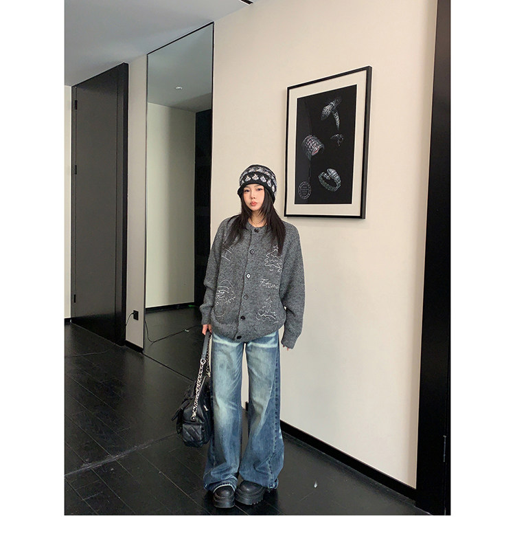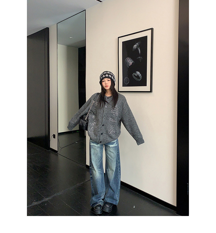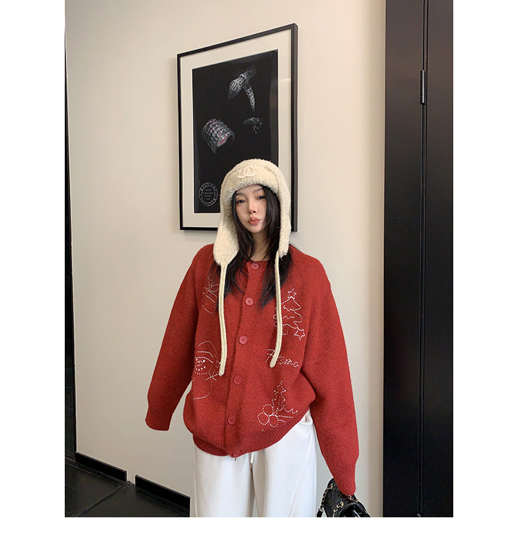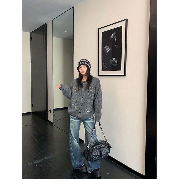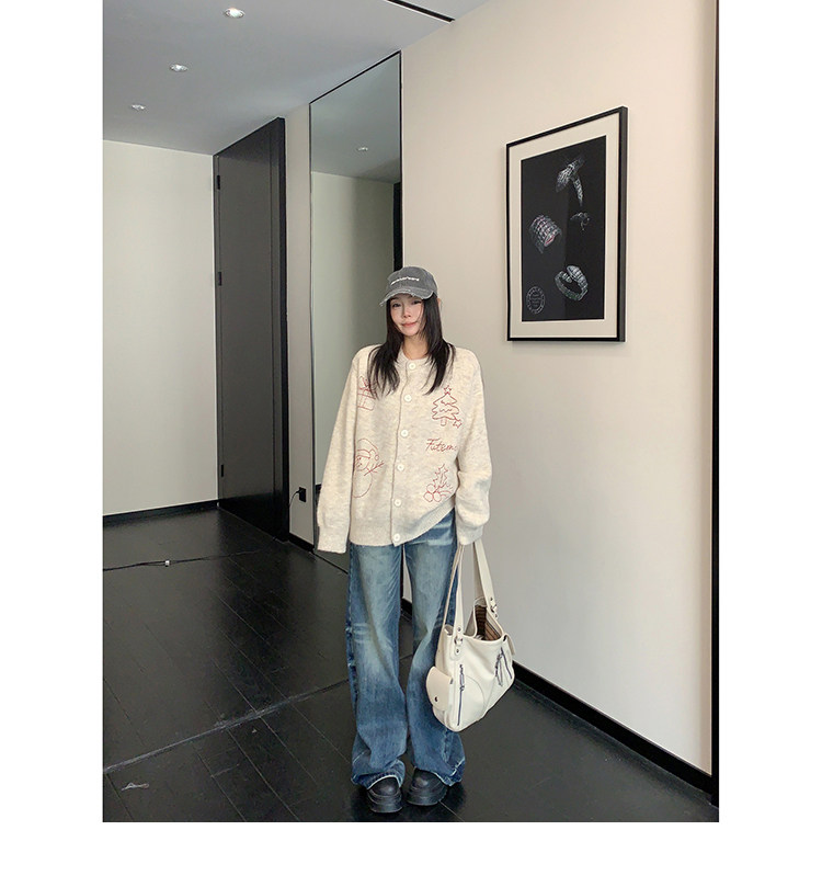 【アウター】レトロ 刺繍 厚手 ラウンドネック カーディガン ニットセーター【FCシリーズ】