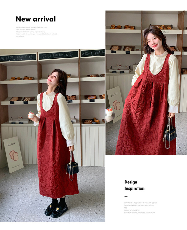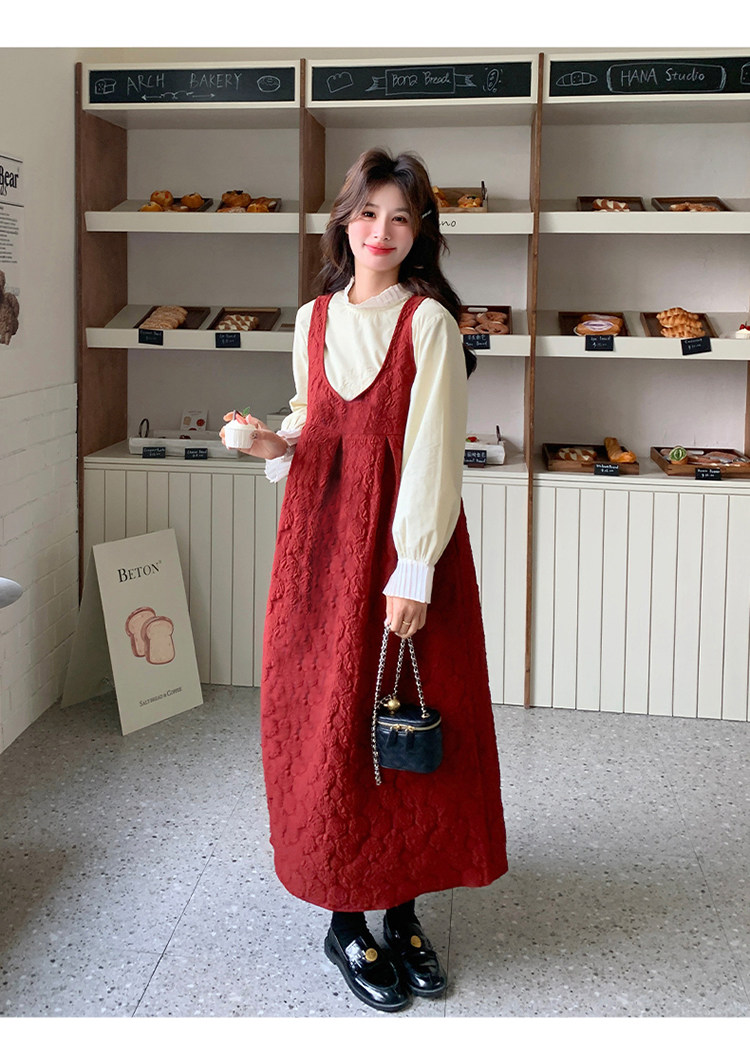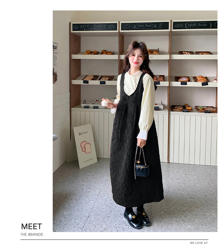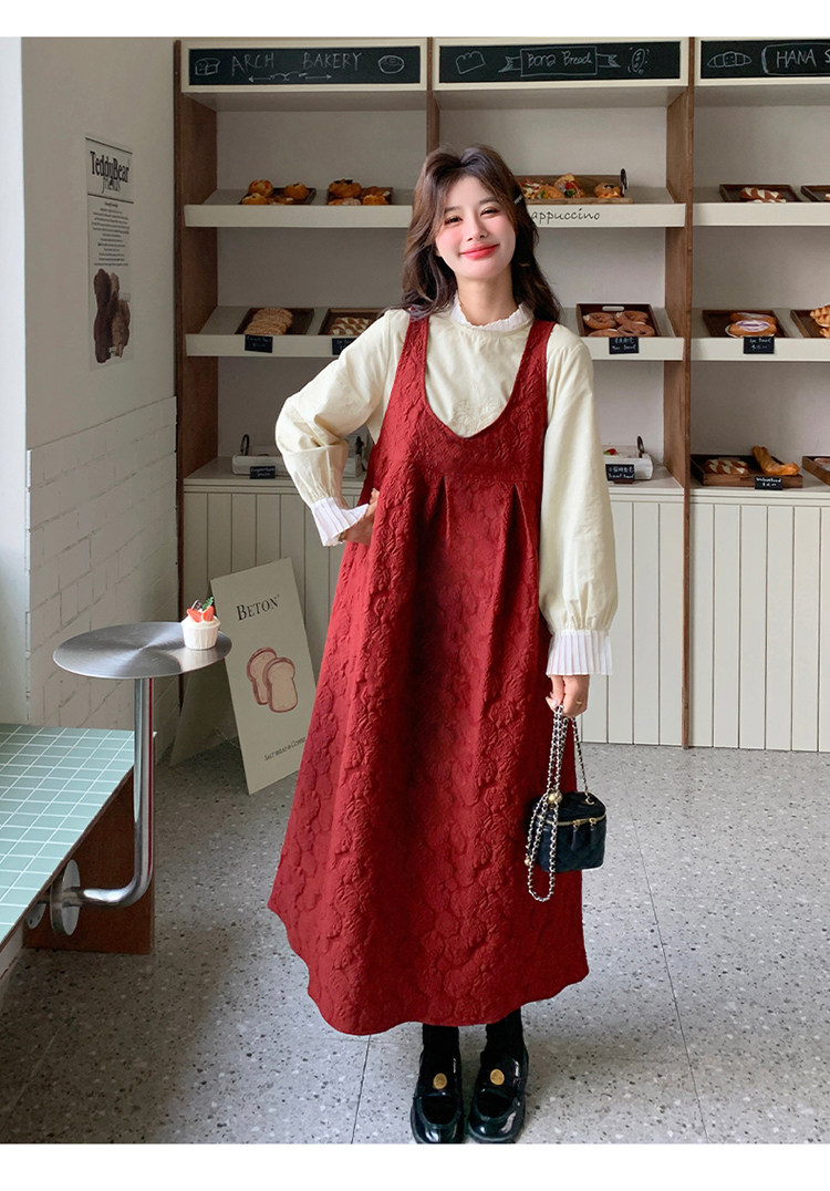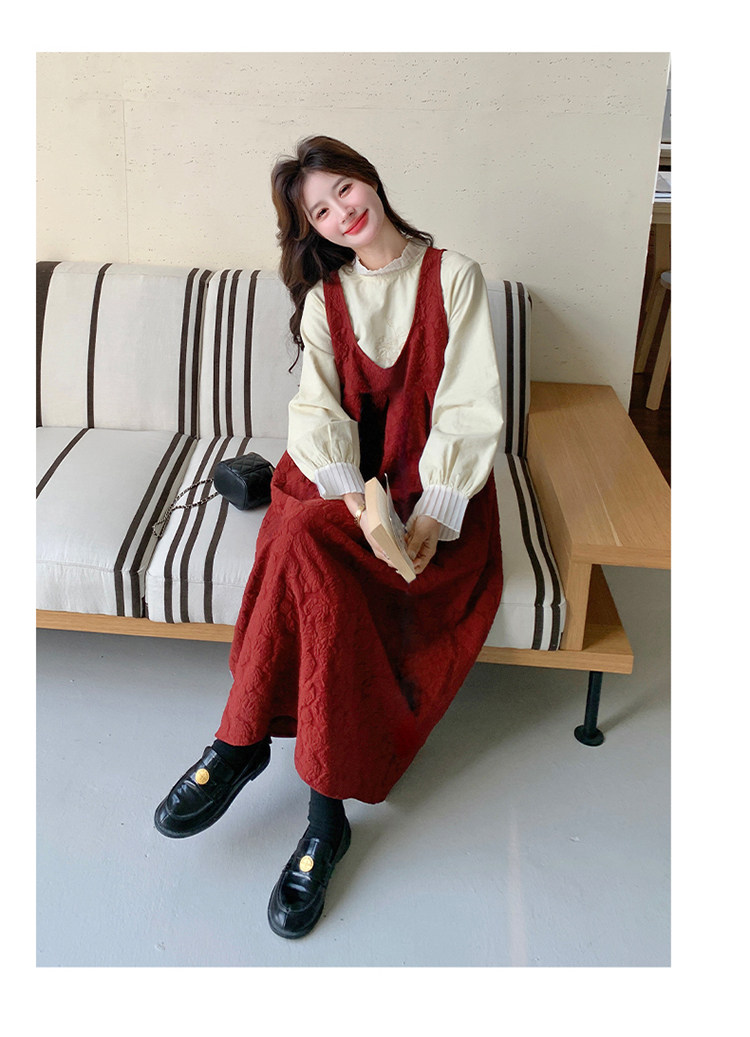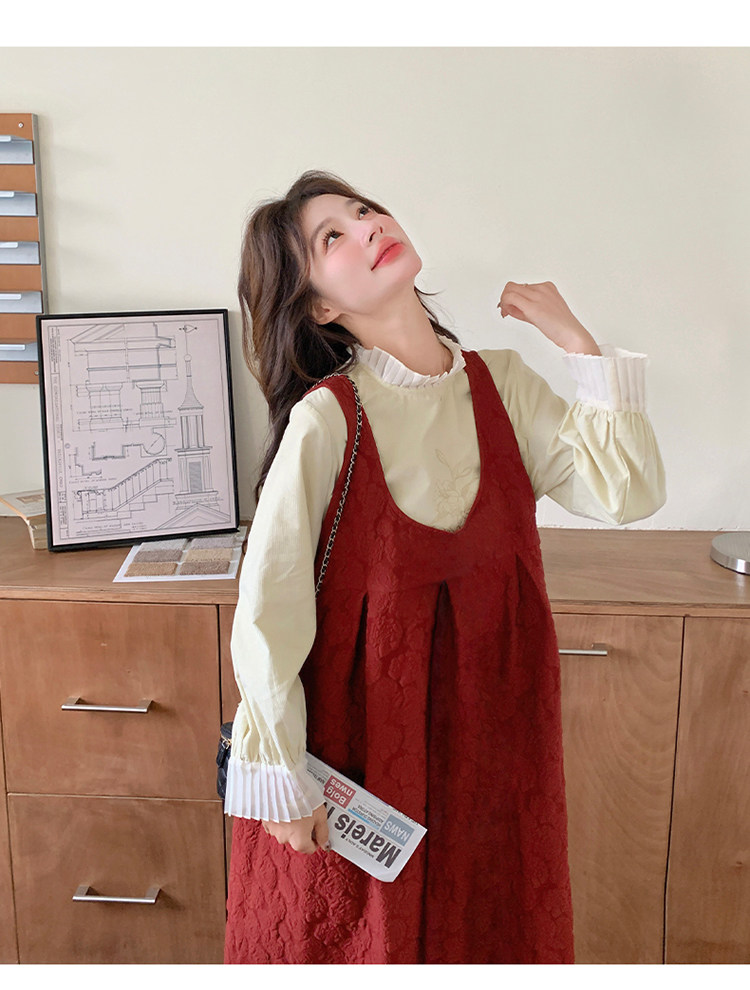 【60%OFF⭐️早い者勝ち】【ワンピース】春秋ラウンドネック 長袖 ニット パッチワーク ロング 長袖ワンピース