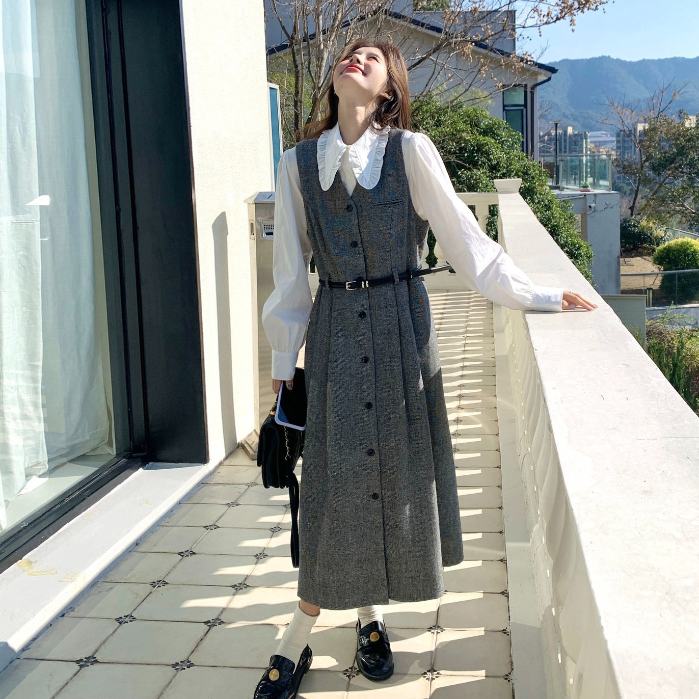 【セットアップ】クールエレガント ノースリーブワンピース × シャツ 2点セット レディース 早春・秋向け やさしく知的な 大人レイヤードコーデ【JZシリーズ】