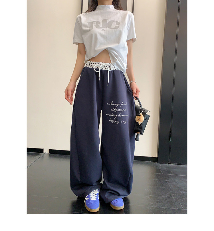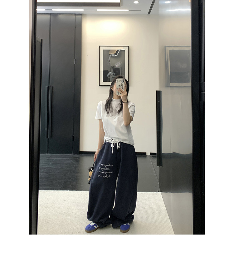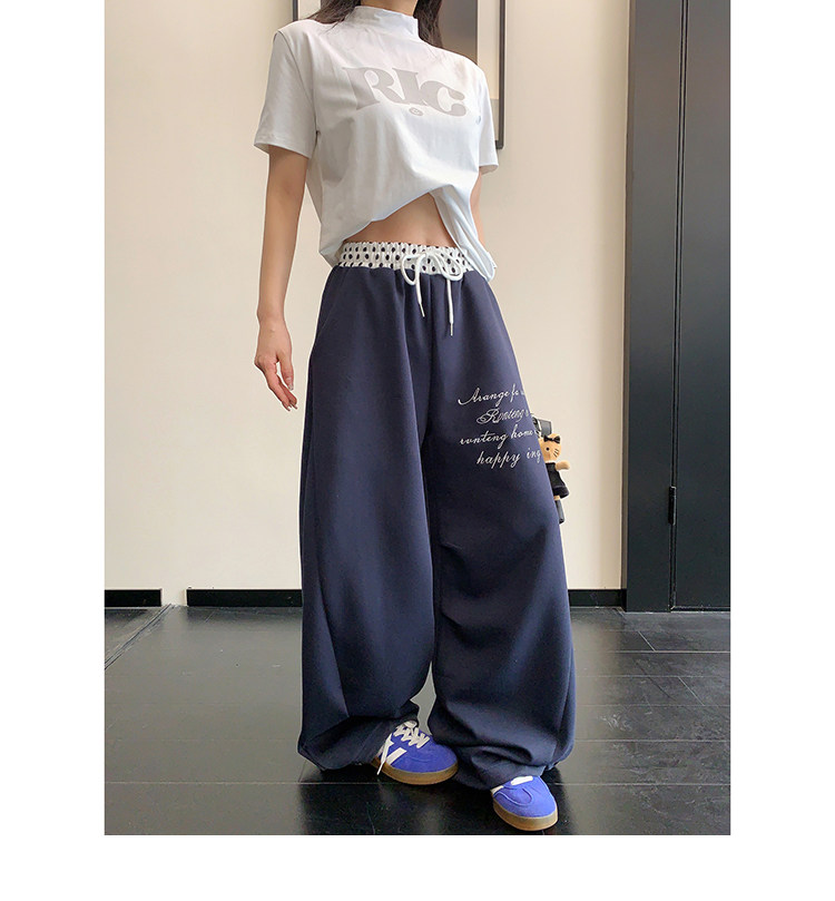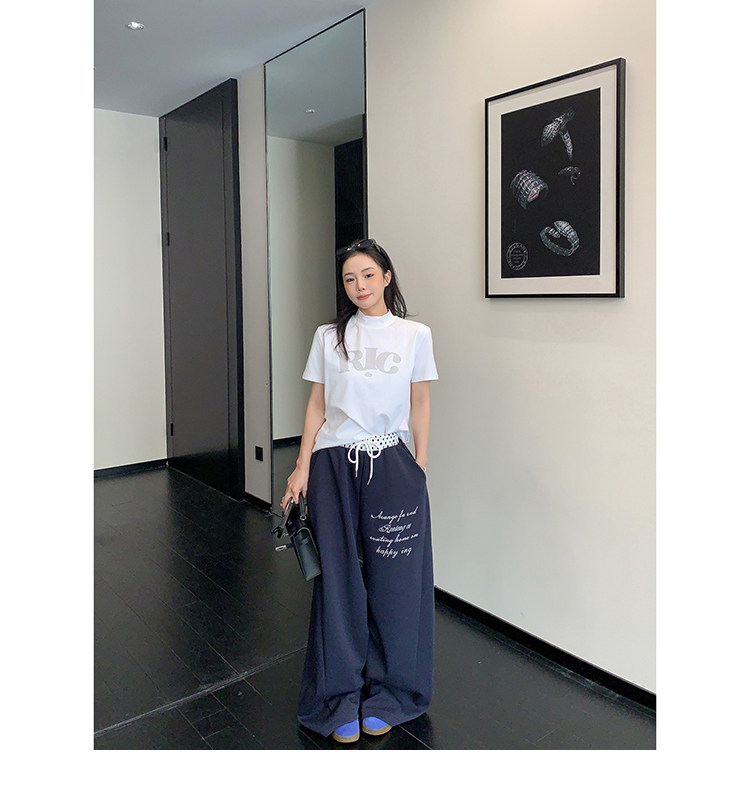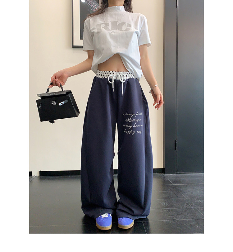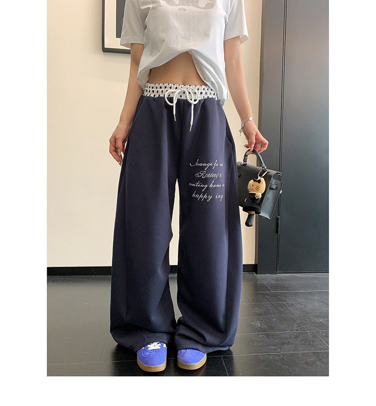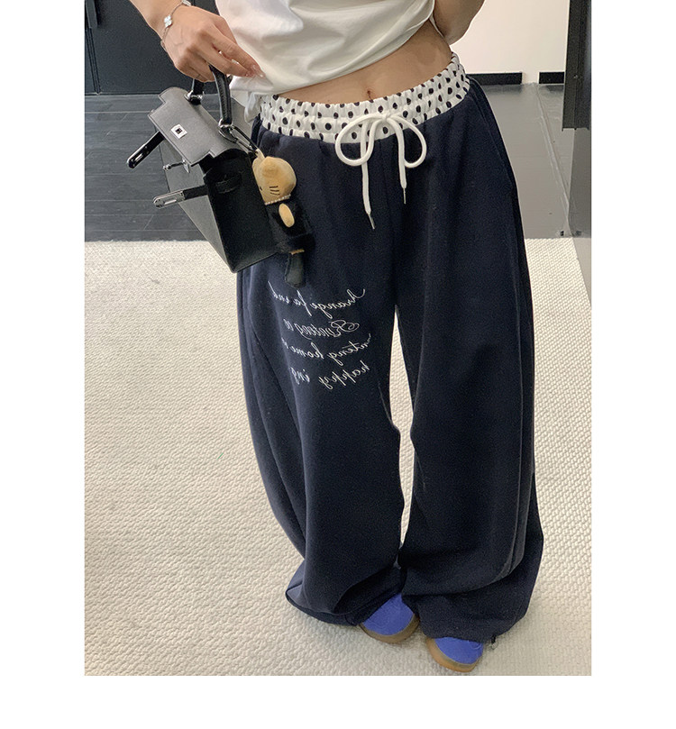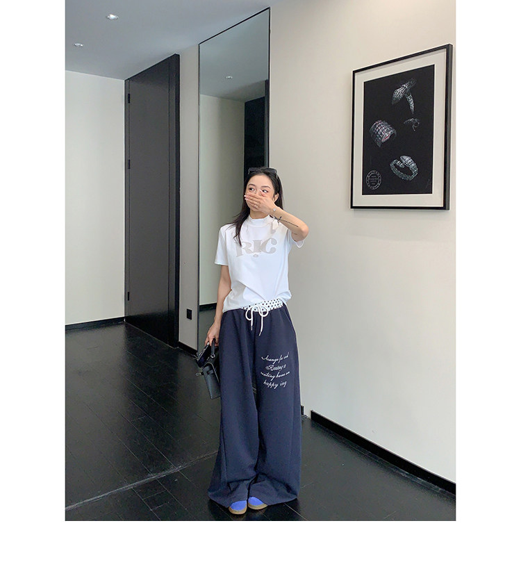 【商品名】【ボトムス】リラックス感 ドレープ刺繍 配色デザイン ストレート スウェットパンツ レディース きれい見え カジュアル【FCシリーズ】