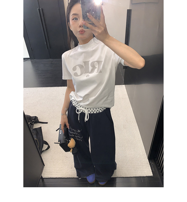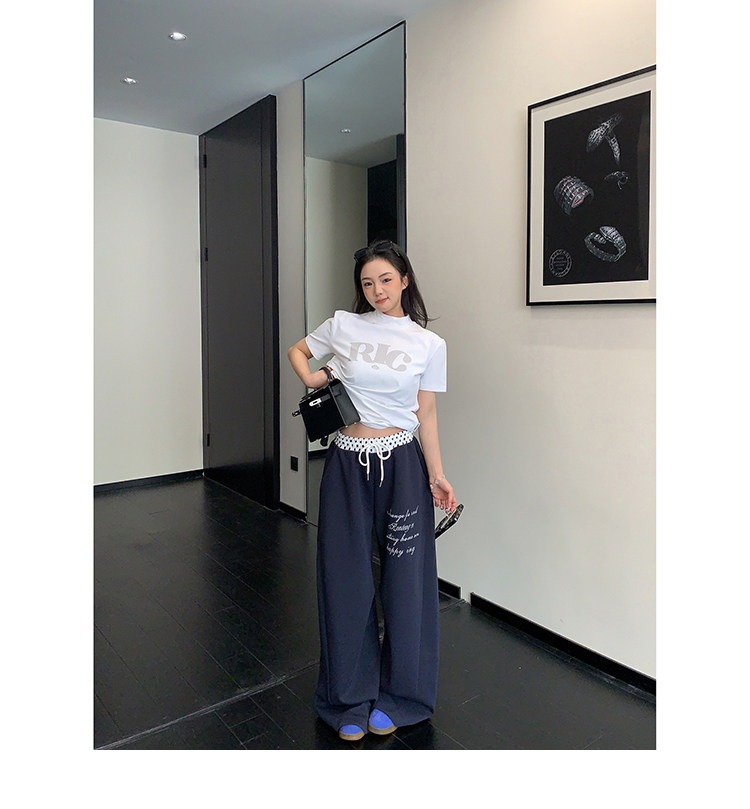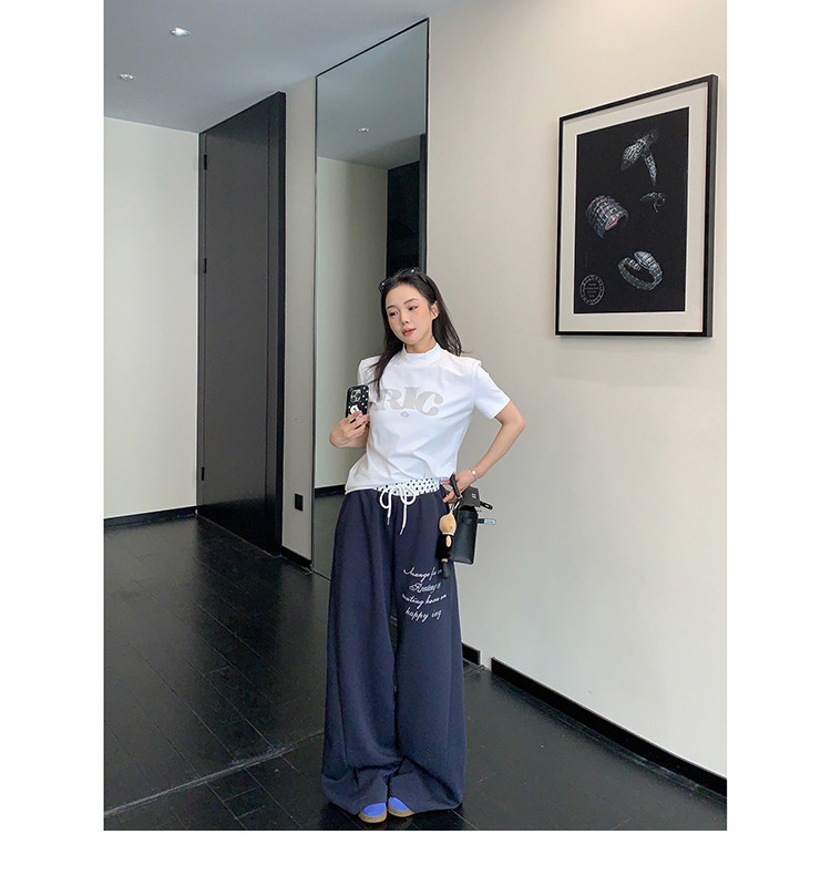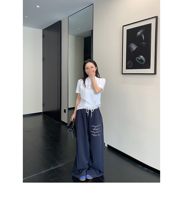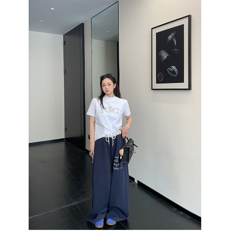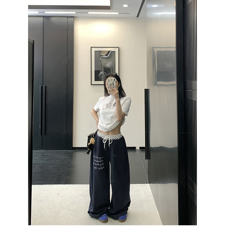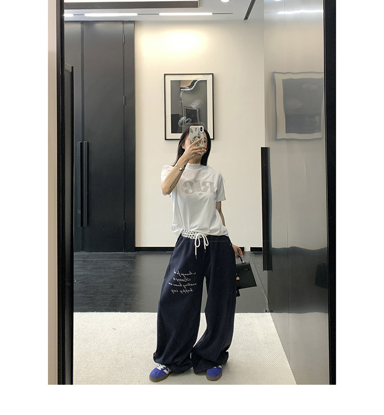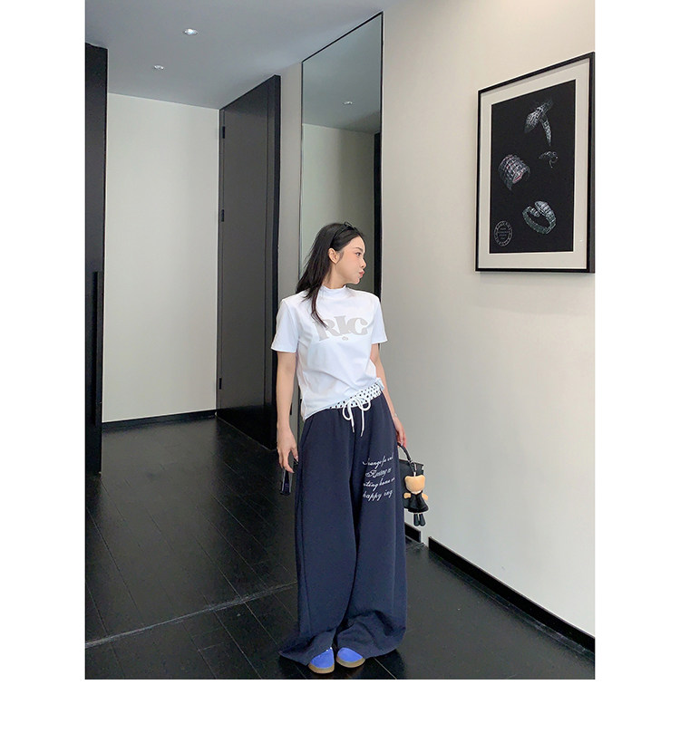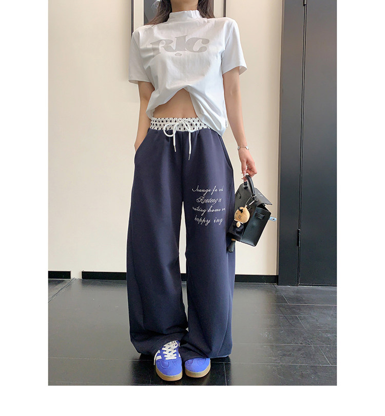 【商品名】【ボトムス】リラックス感 ドレープ刺繍 配色デザイン ストレート スウェットパンツ レディース きれい見え カジュアル【FCシリーズ】