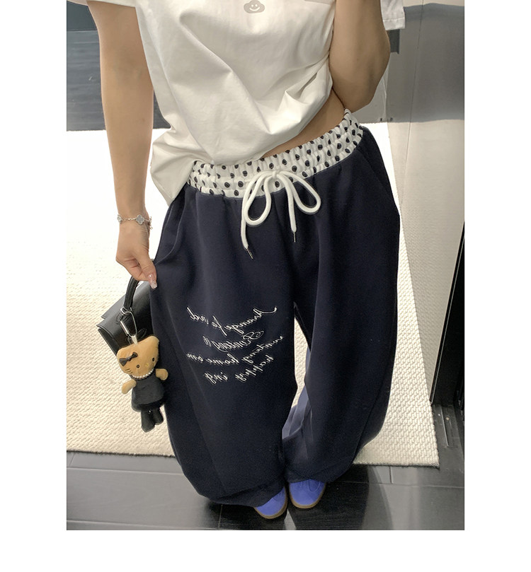 【ボトムス】リラックス感 ドレープ刺繍 配色デザイン ストレート スウェットパンツ レディース きれい見え カジュアル【FCシリーズ】